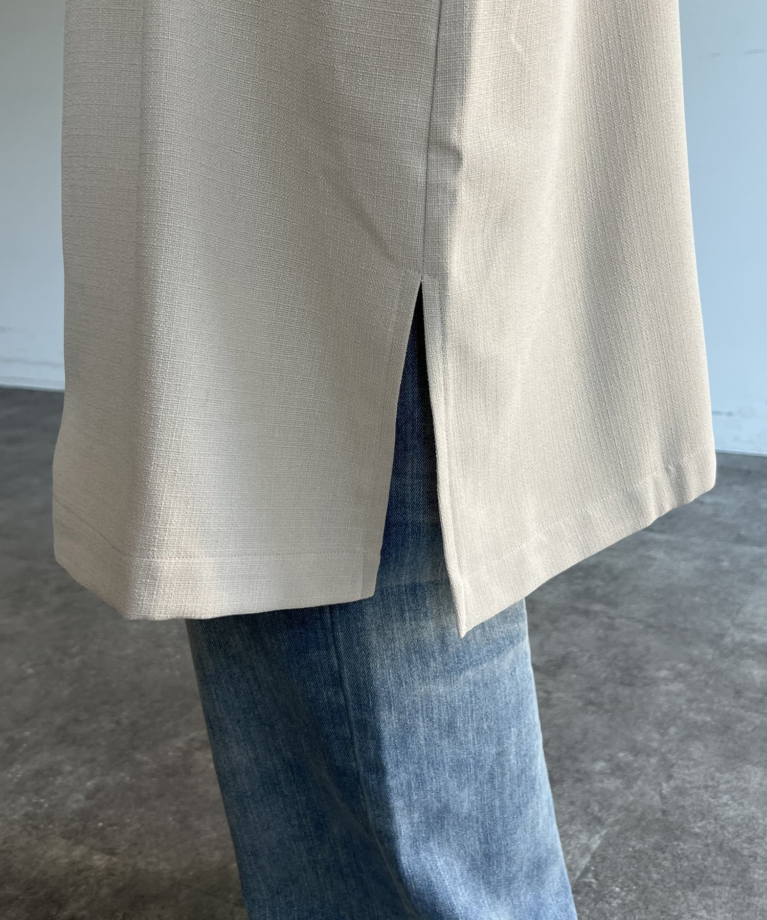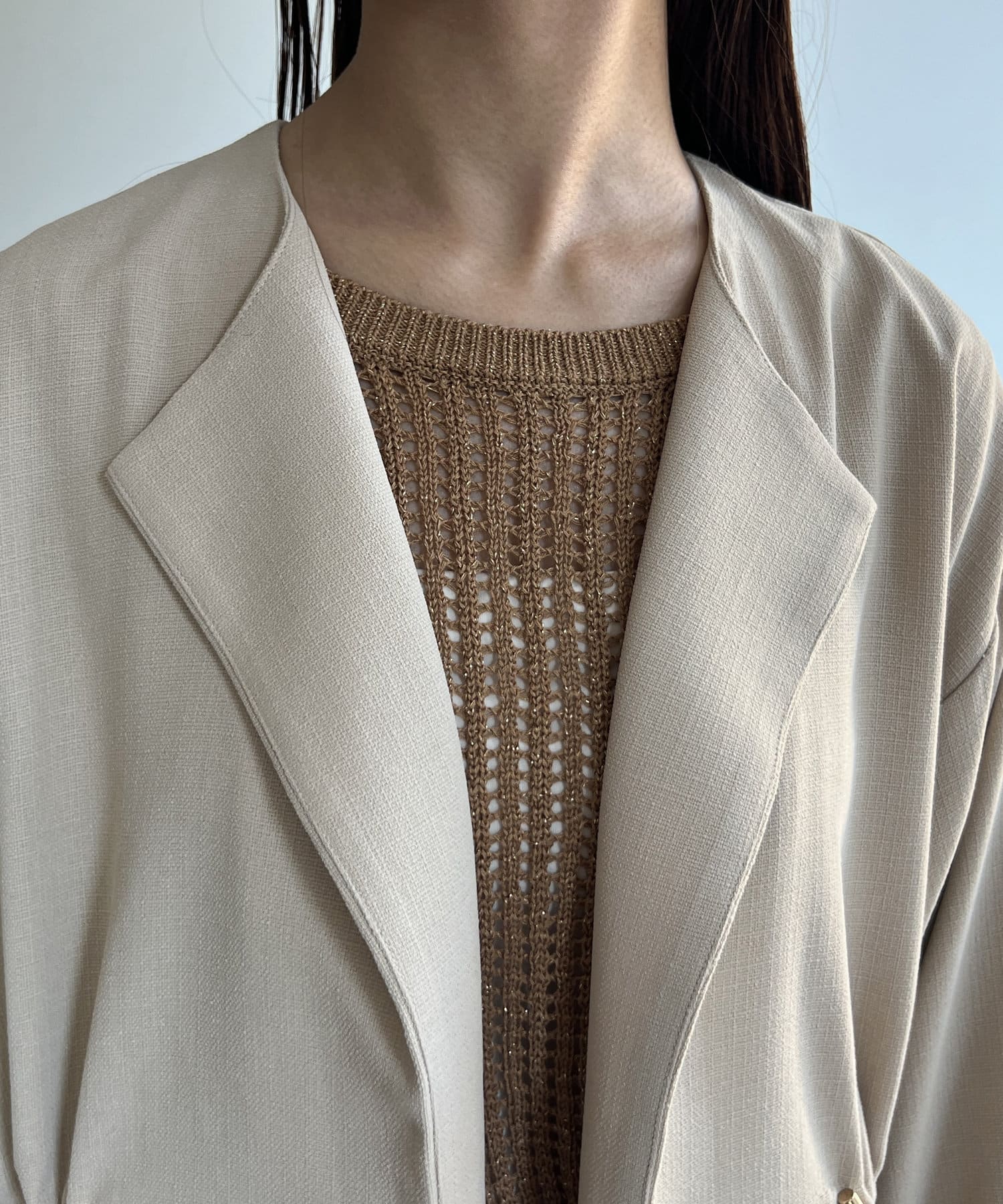 ノーカラーでお顔周りはすっきりとした印象になります。