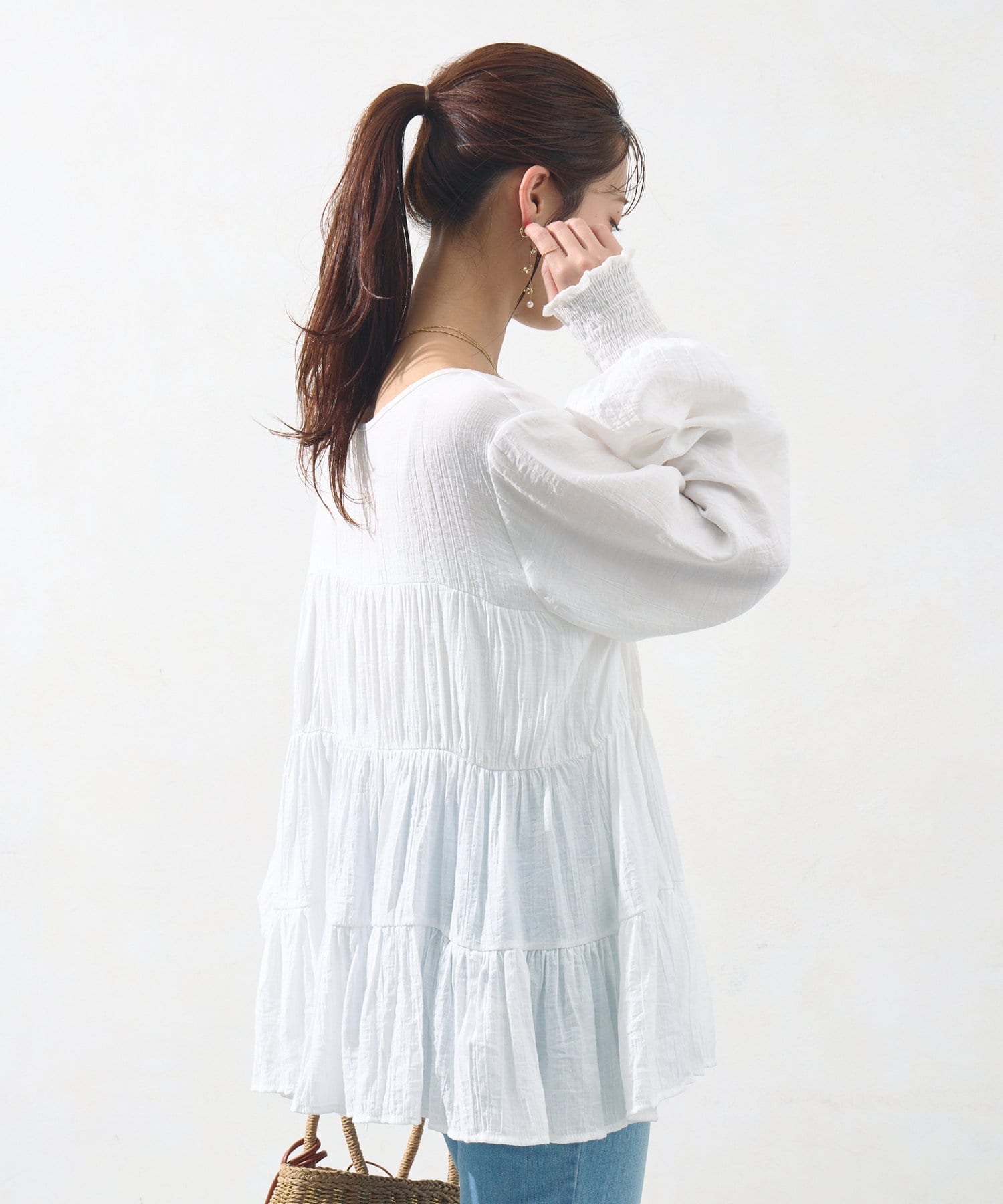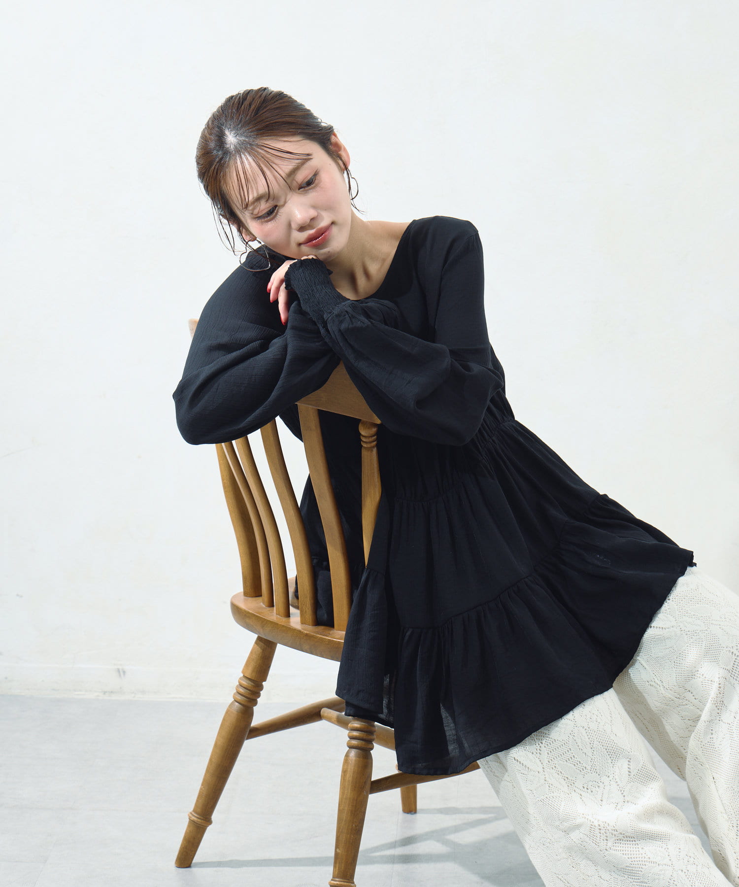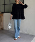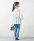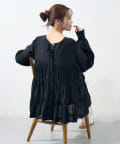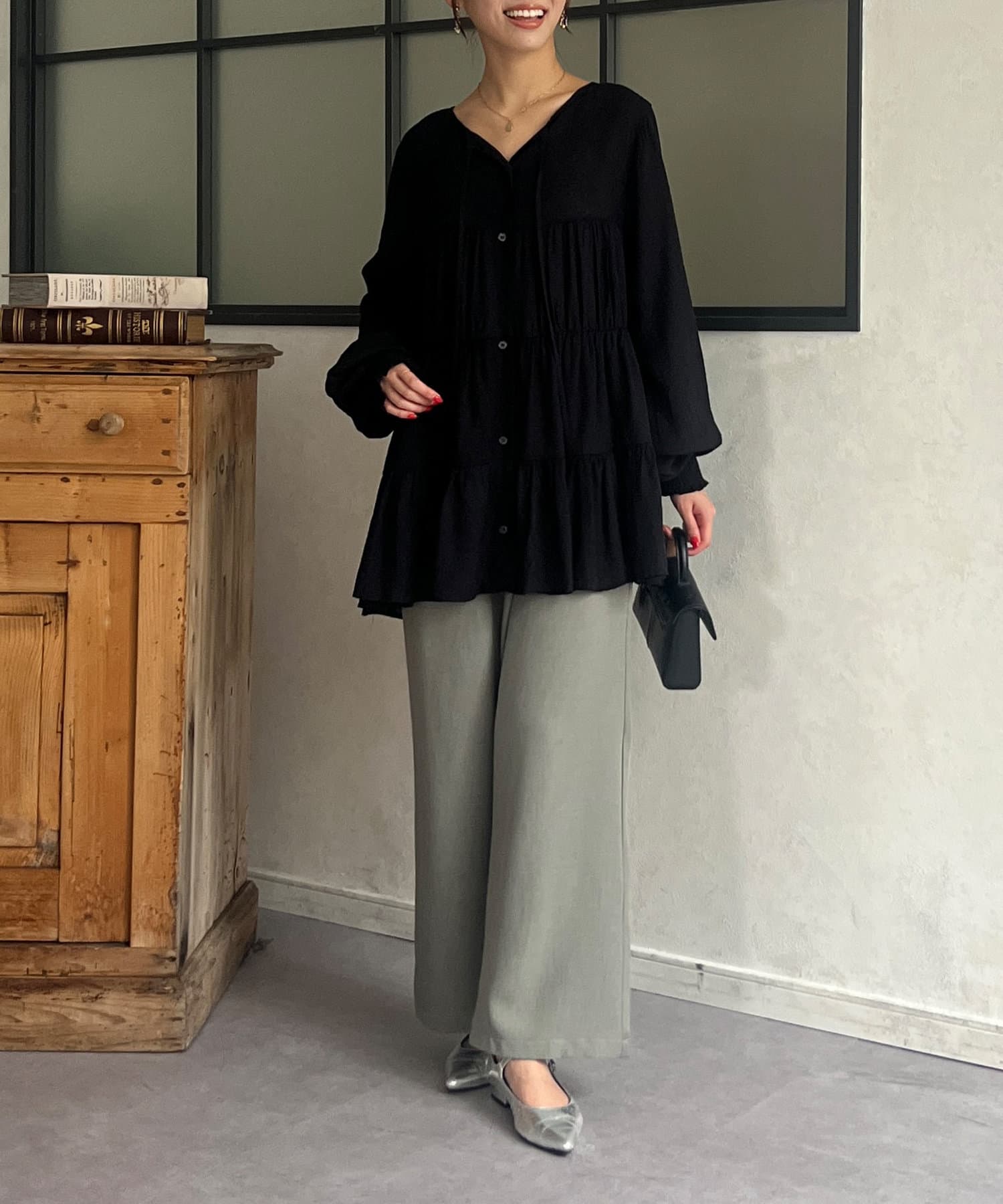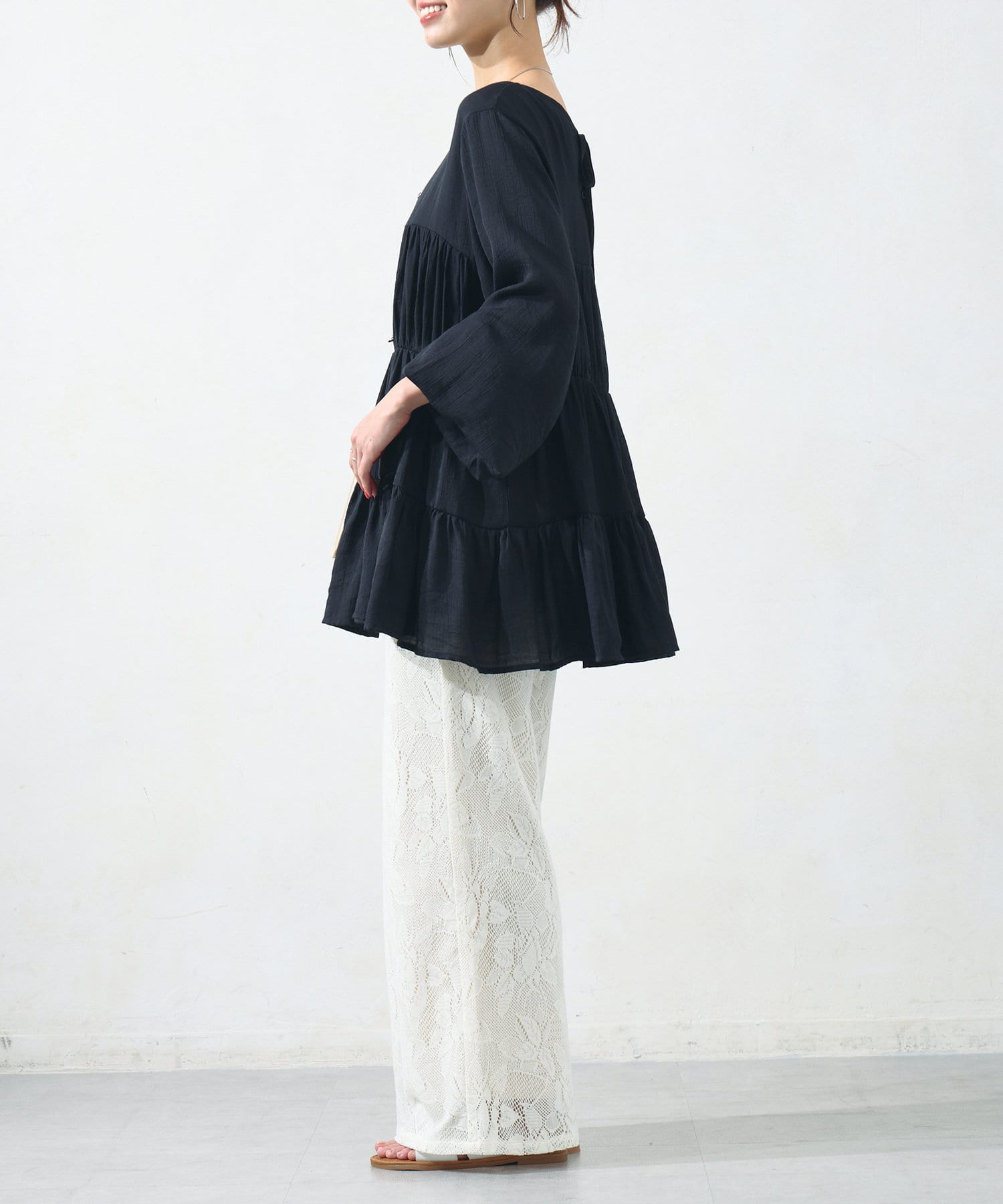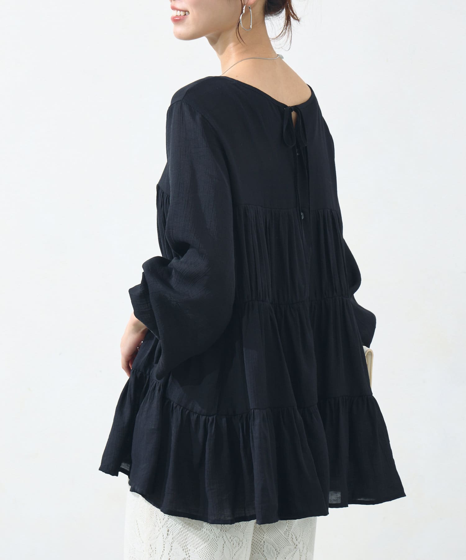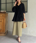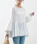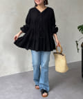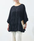 切り替え部分のティアードが女性らしい印象にしてくれるチュニック。
