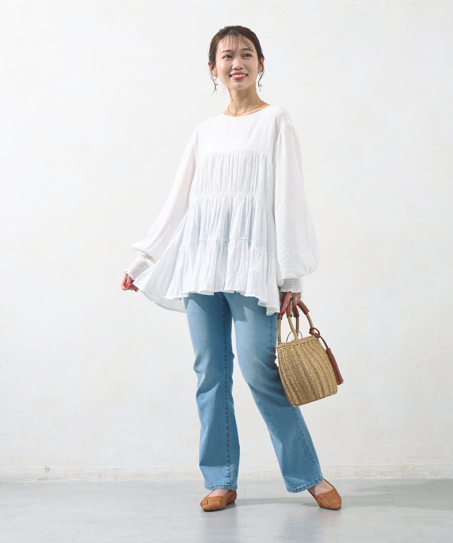 白を購入してアラフォーには甘すぎるかなと思いましたがデニムやスラックスに合わせると甘すぎずカジュアルすぎず大人可愛く着れます!