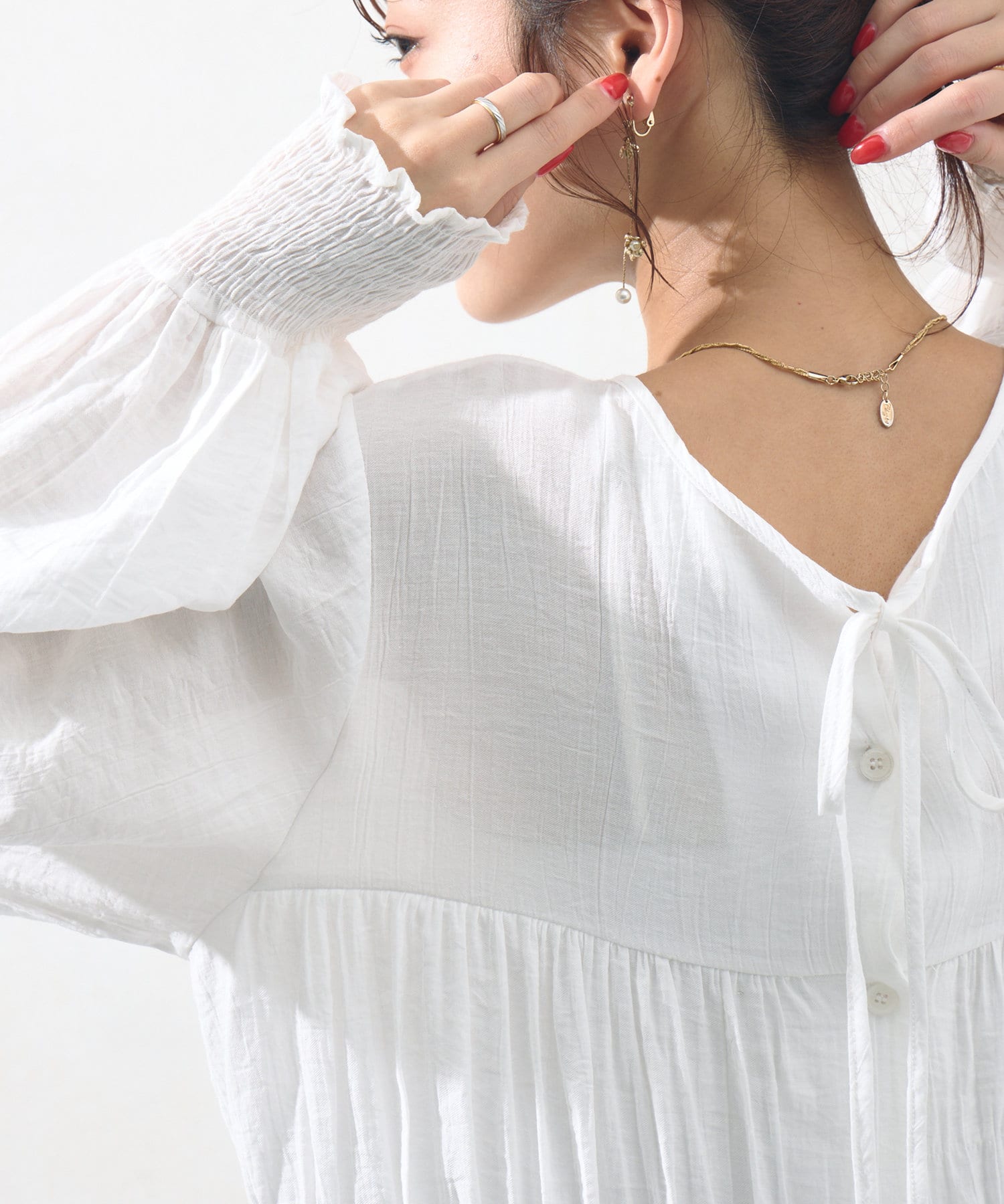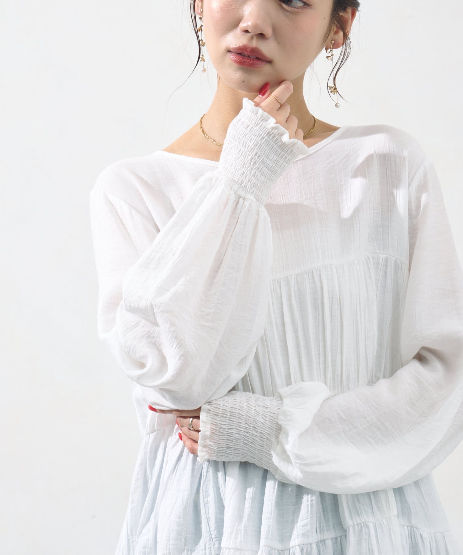 首元は程よく開くのでお顔周りもスッキリとした印象でお使い頂けます。