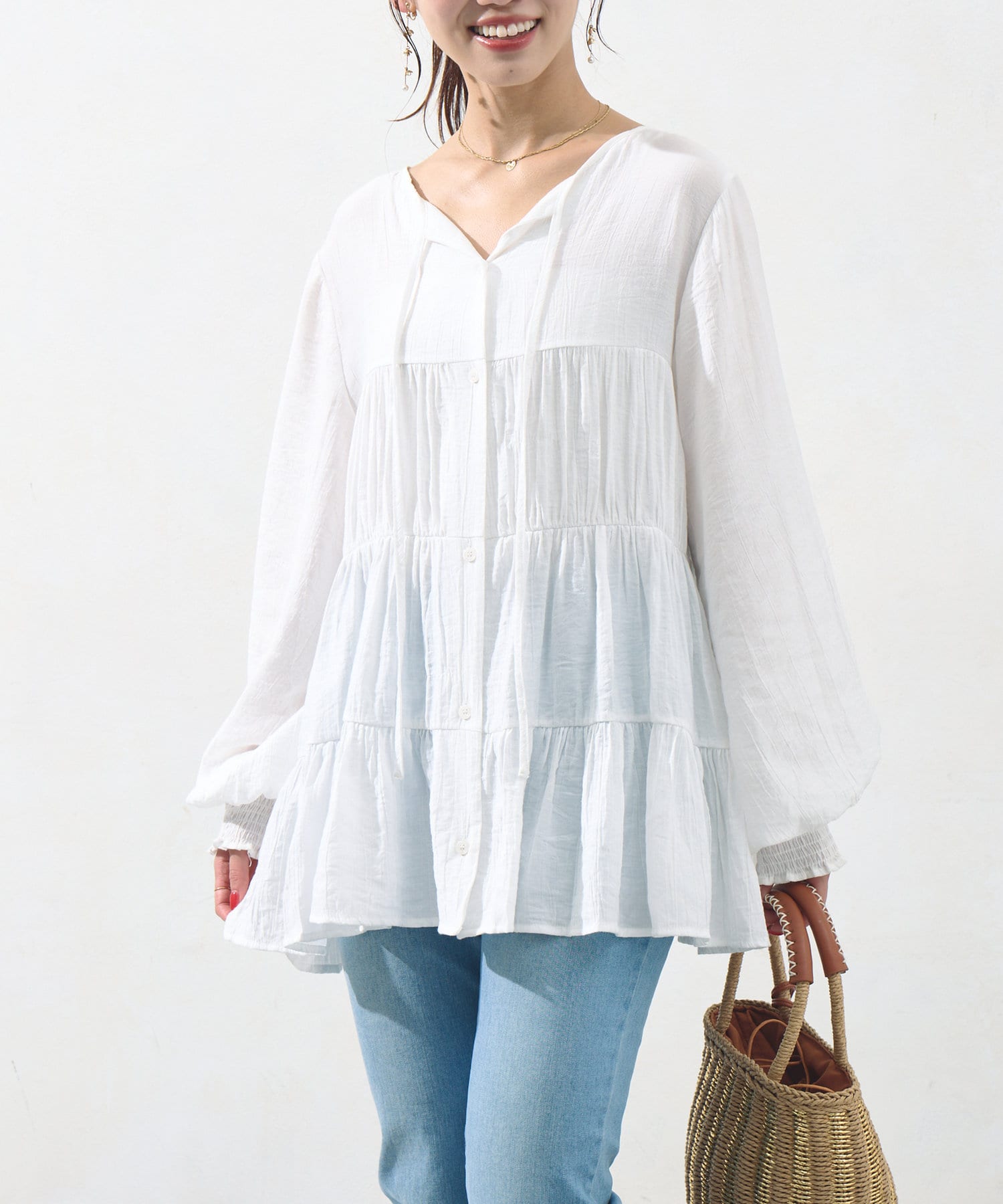 Chez toi(シェトワ) 【ITAMI企画】3WAYティアードチュニックブラウス