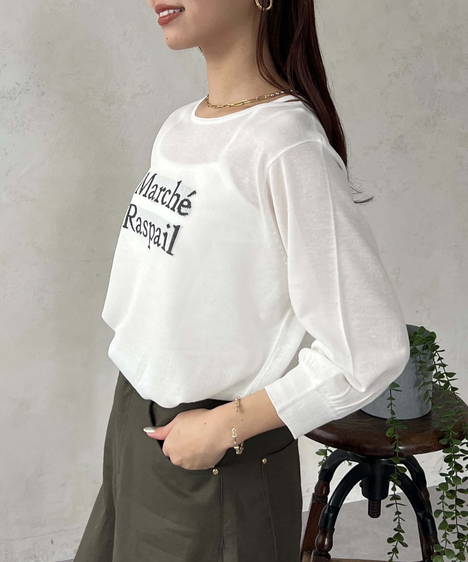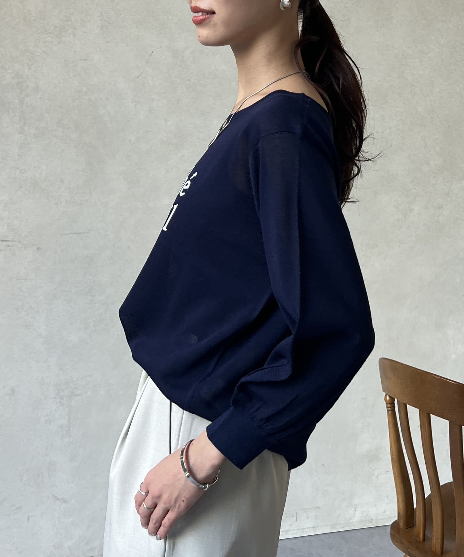 ほんのりとシアー感のある素材と、さり気ない配色で拘ったロゴがポイントの一枚。