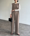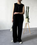 ボトム部分のゆったりのシルエットと、長めの股上でボディラインを拾いにくくし体型カバーも◎