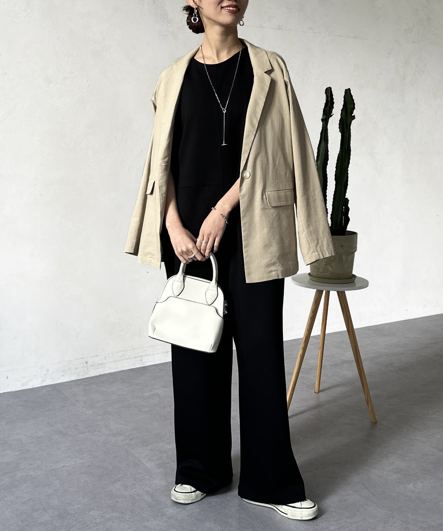 シンプルなのでカジュアルから綺麗めまで幅広く着こなせるアイテムです。