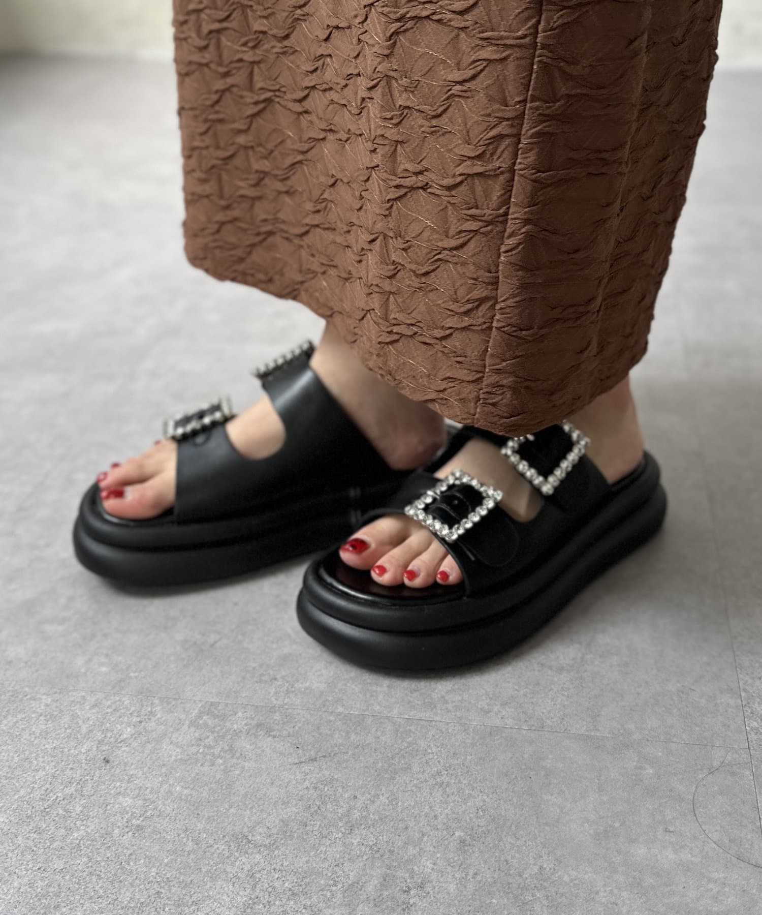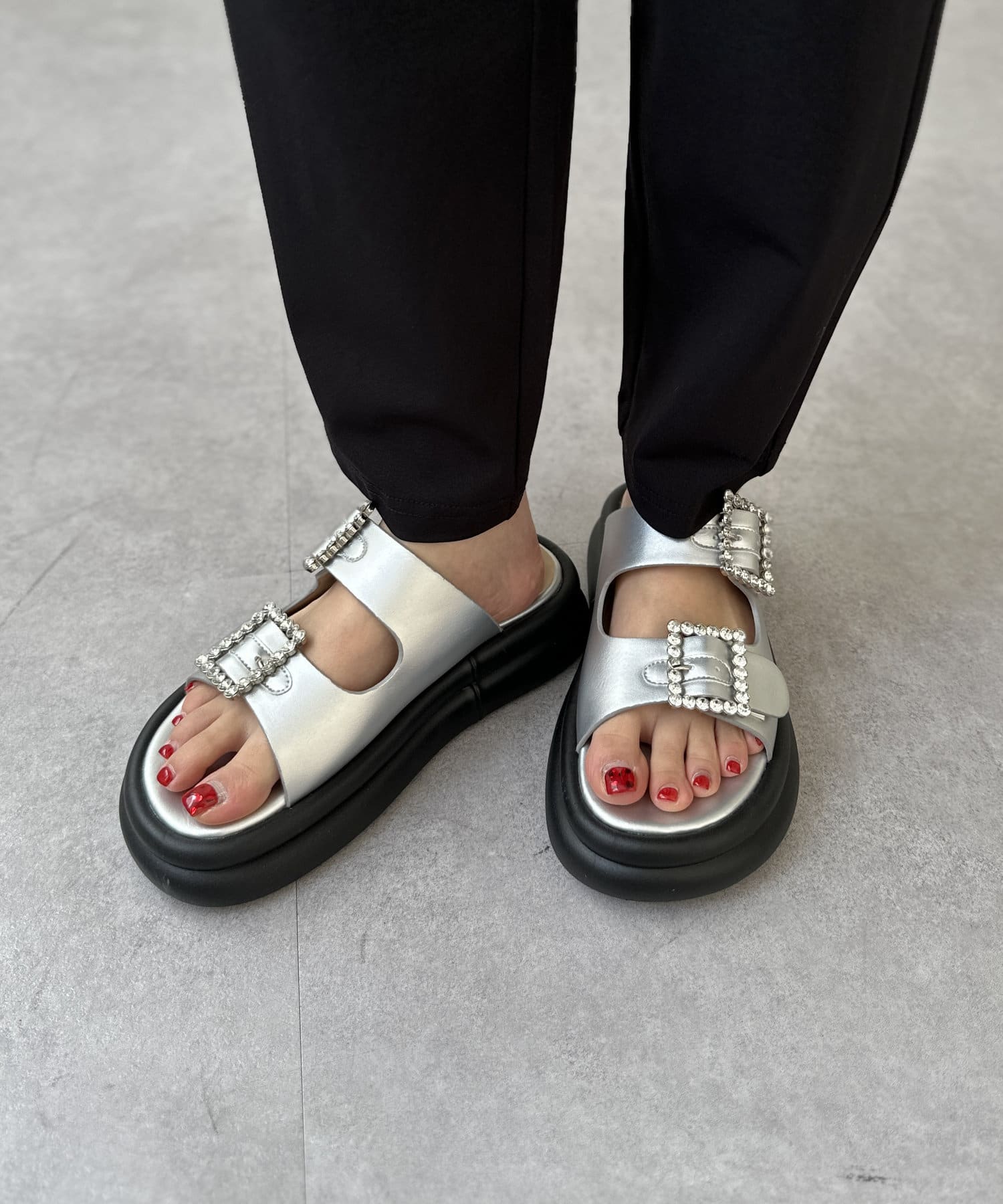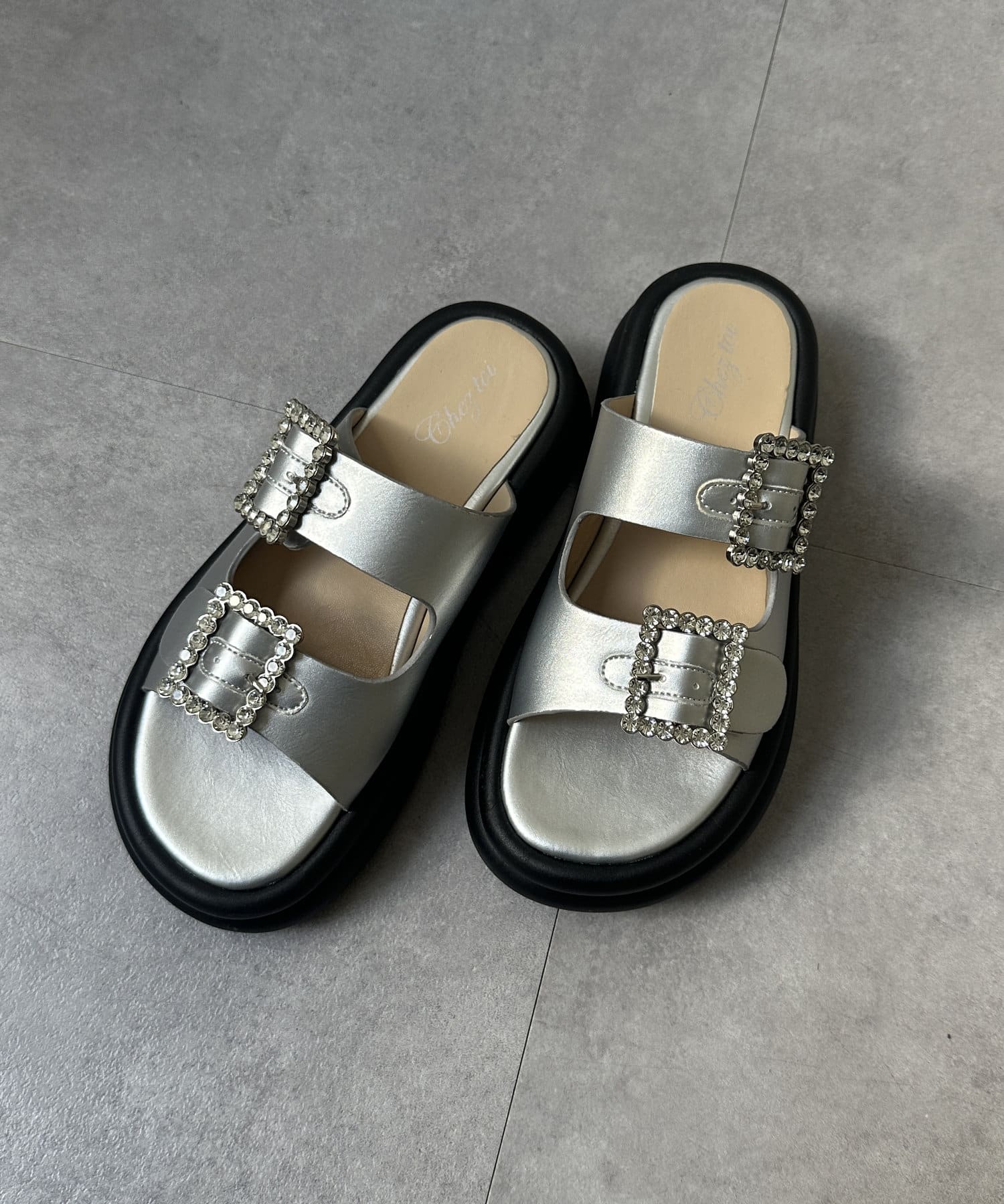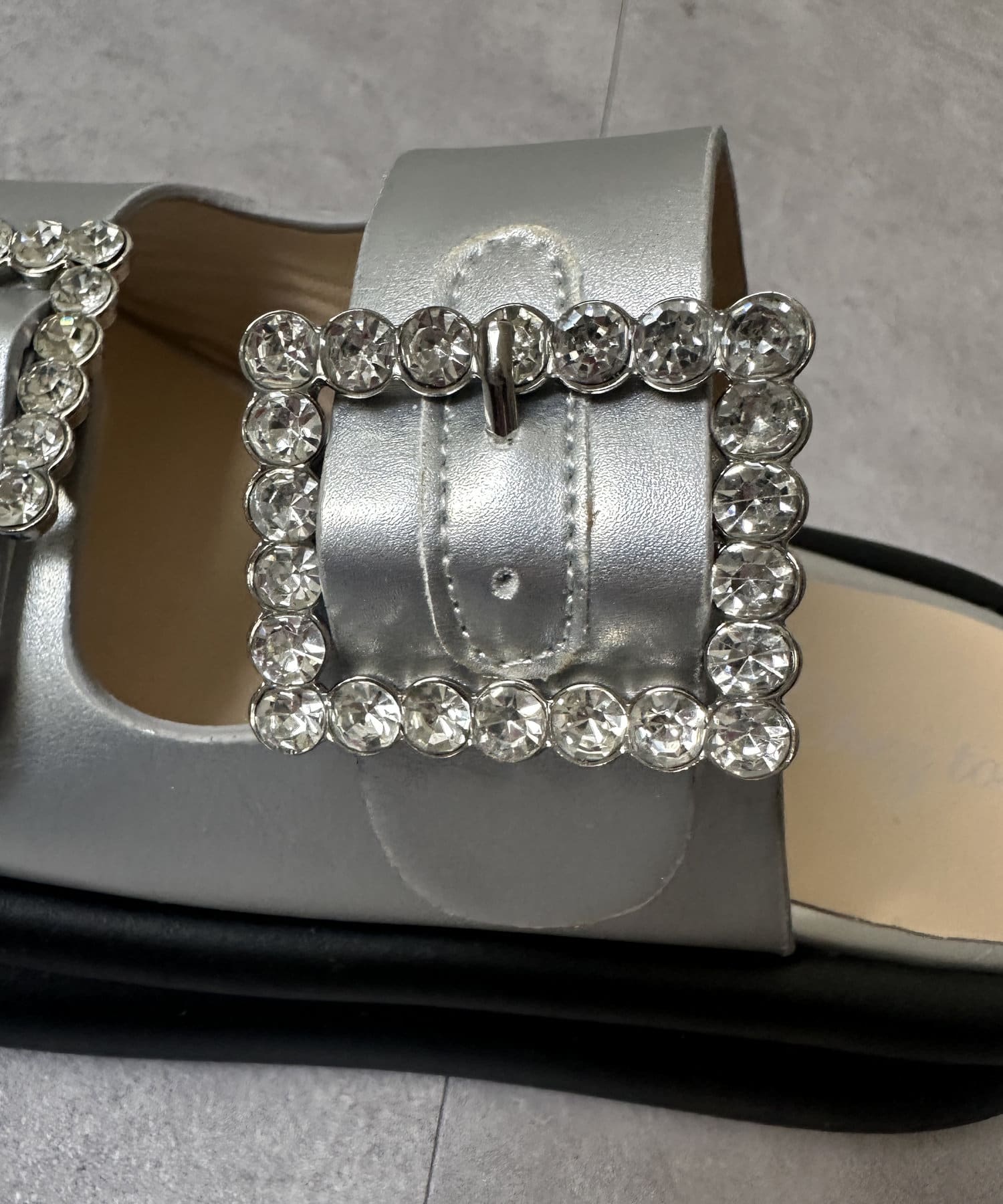シンプルながらもビジューが華やかに見せてくれるサンダル