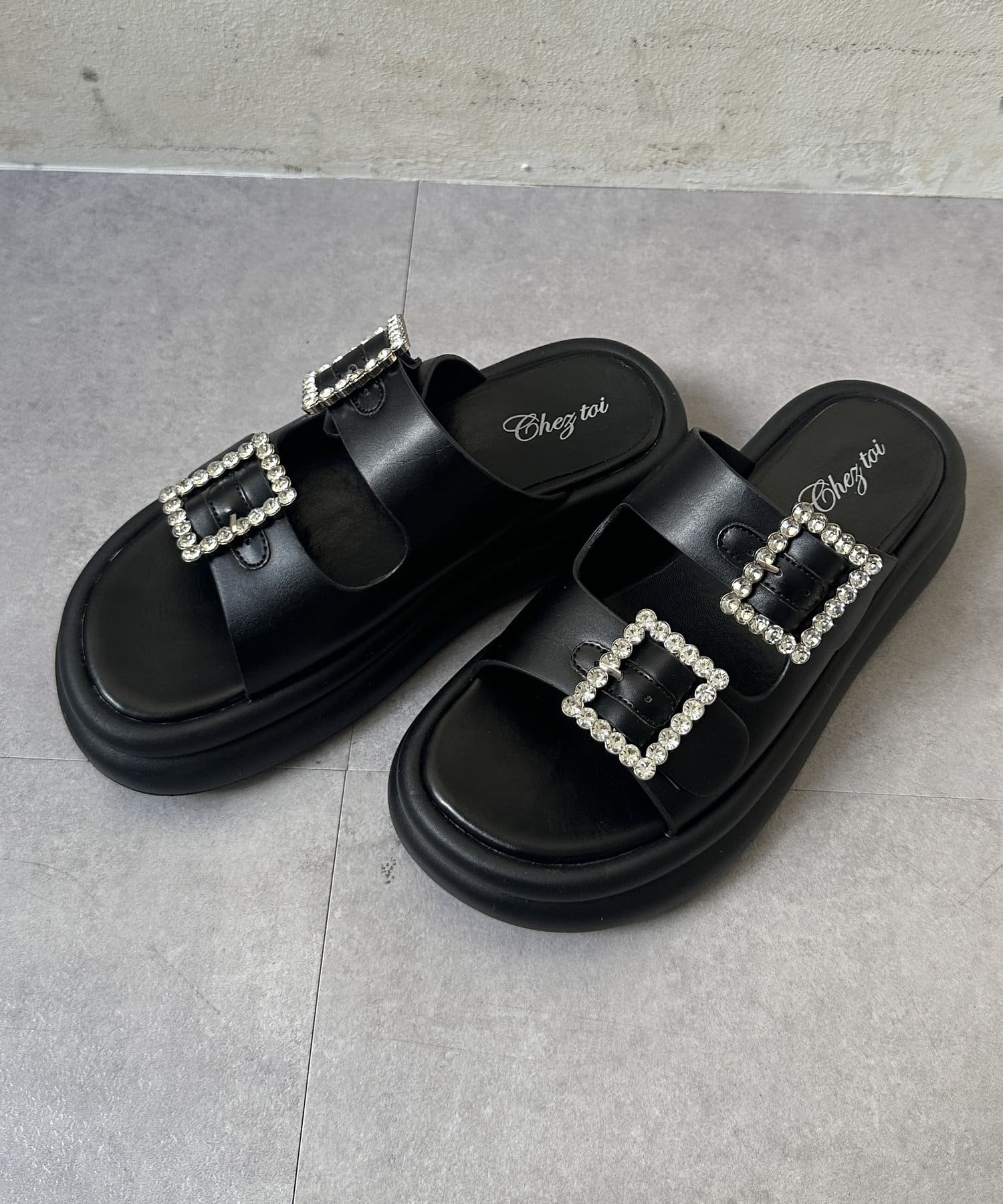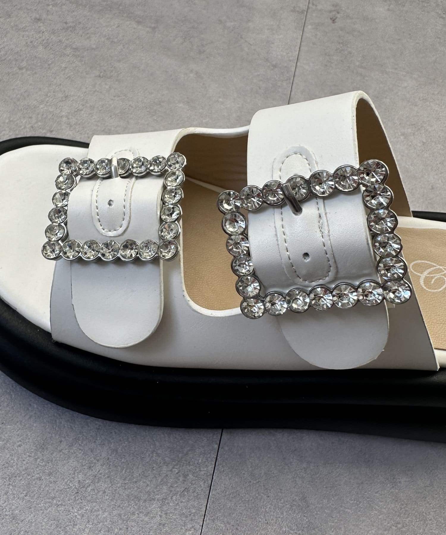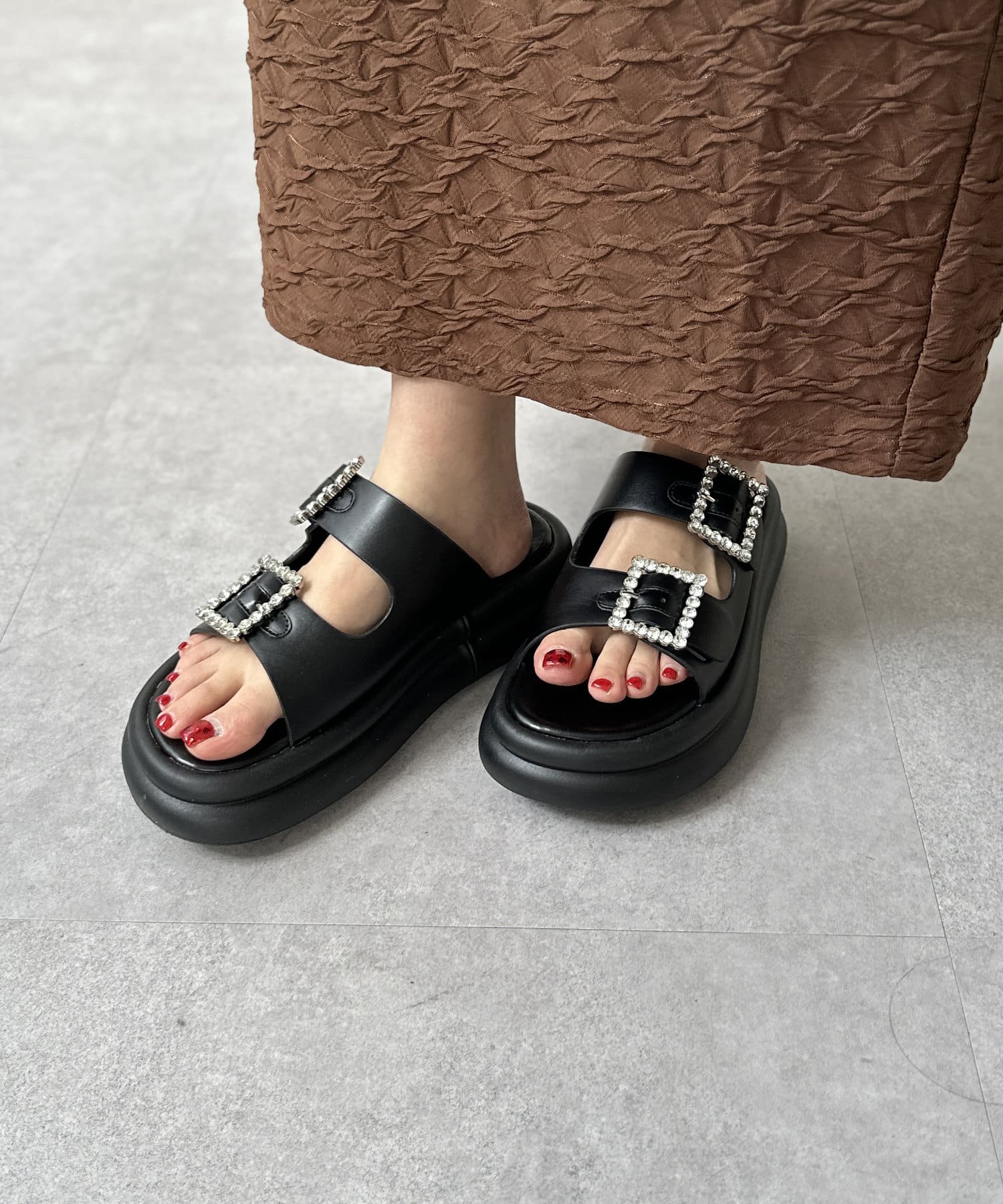 シンプルながらもビジューが華やかに見せてくれるサンダル