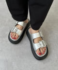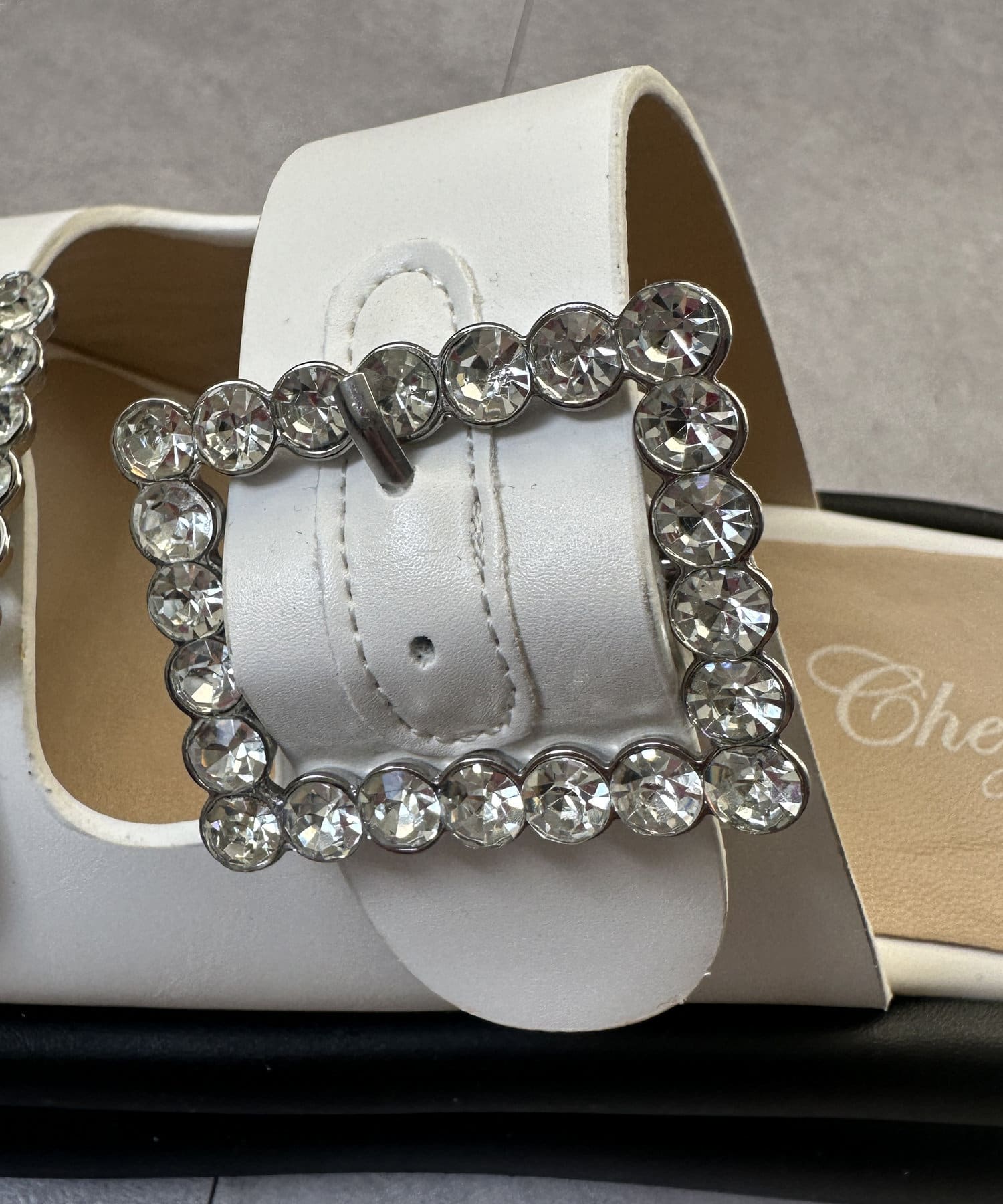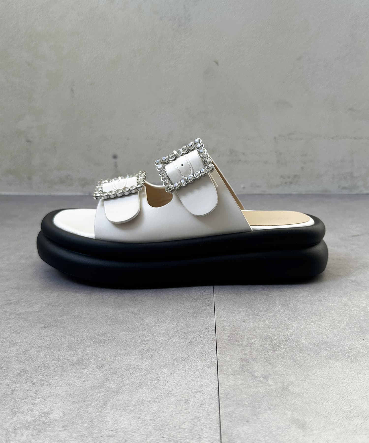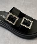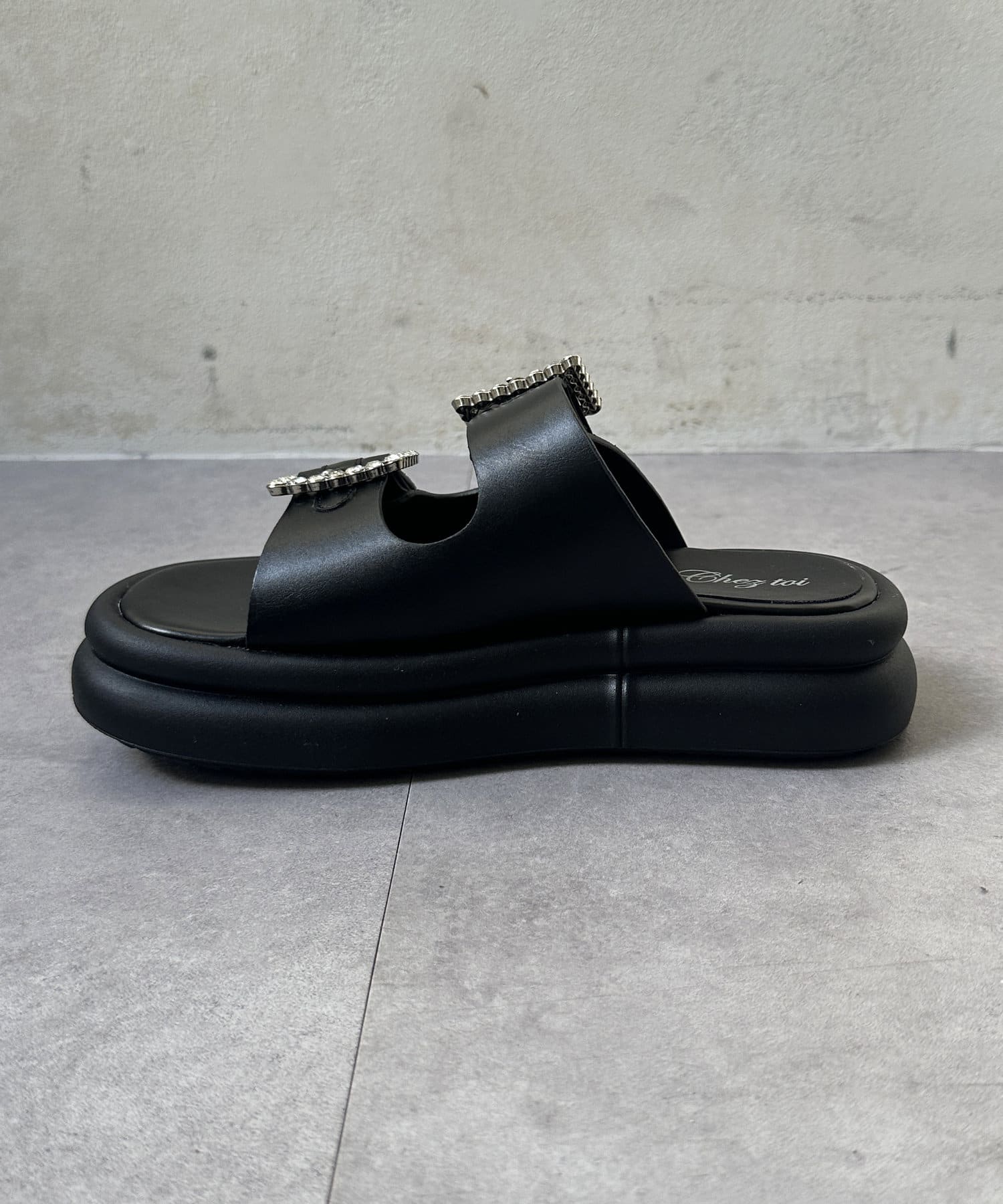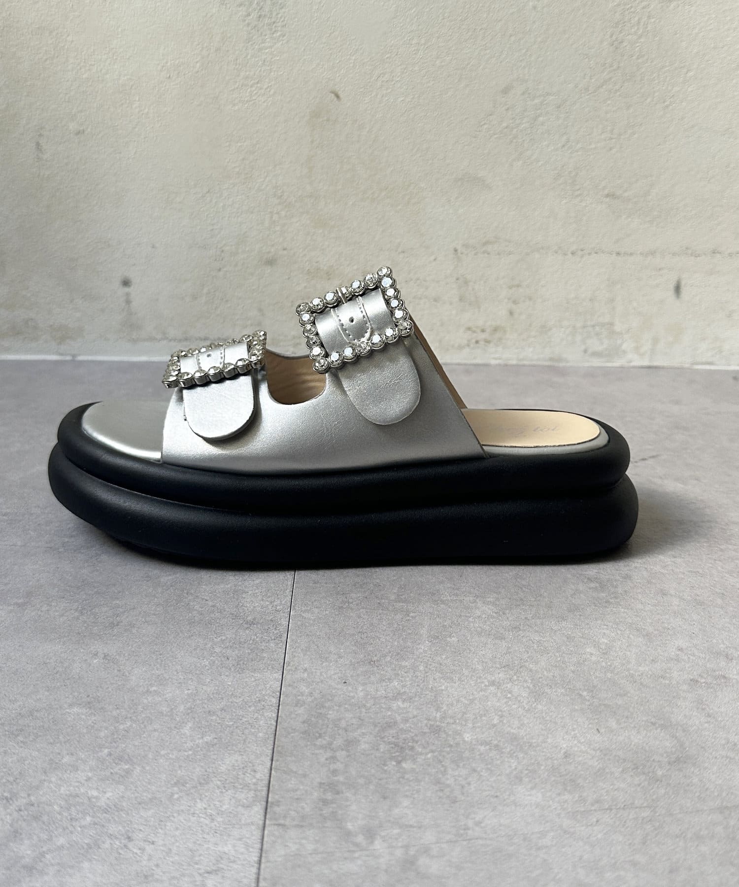 シンプルながらもビジューが華やかに見せてくれるサンダル