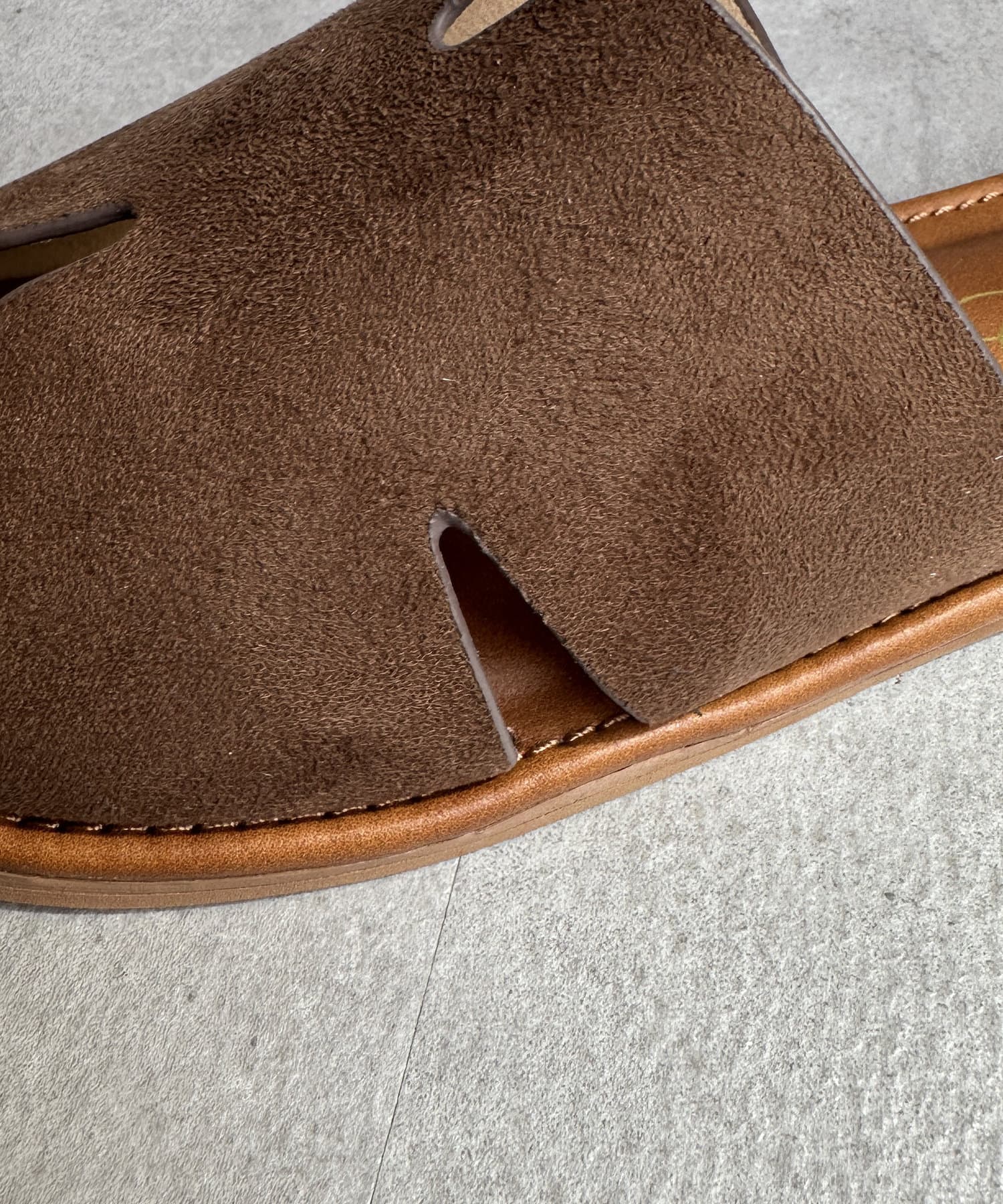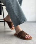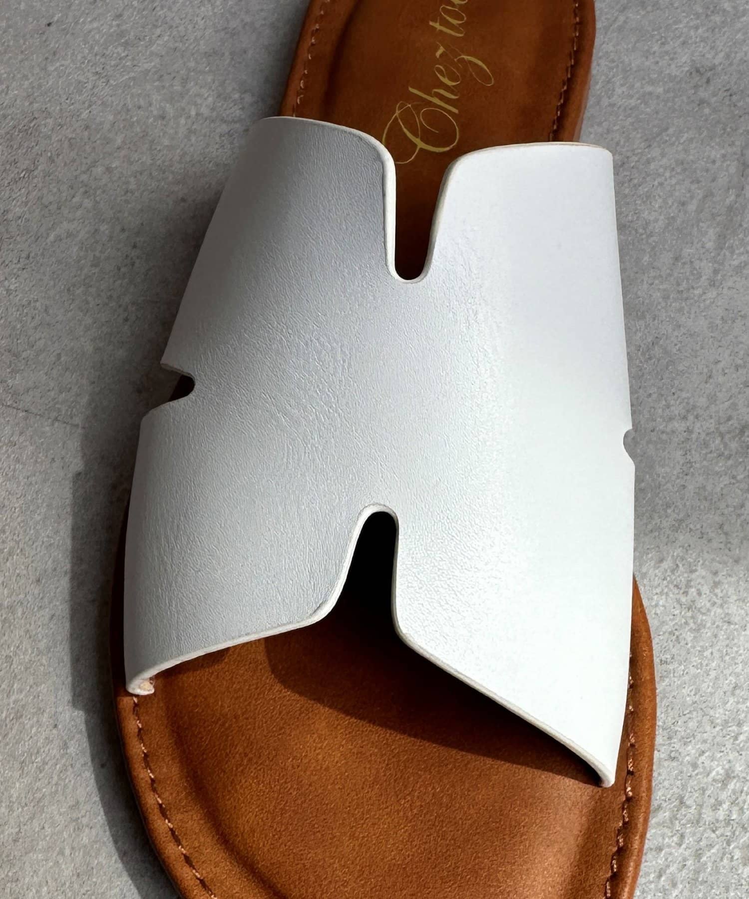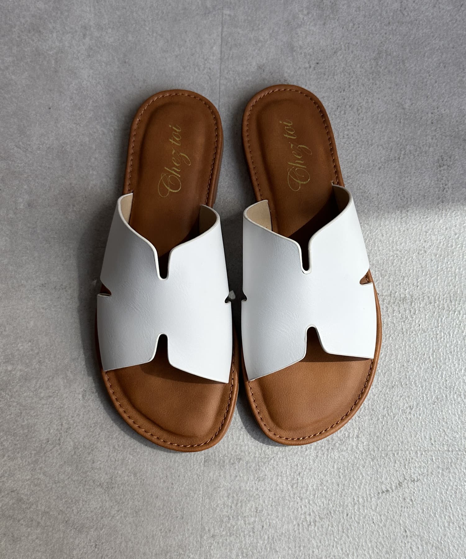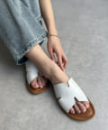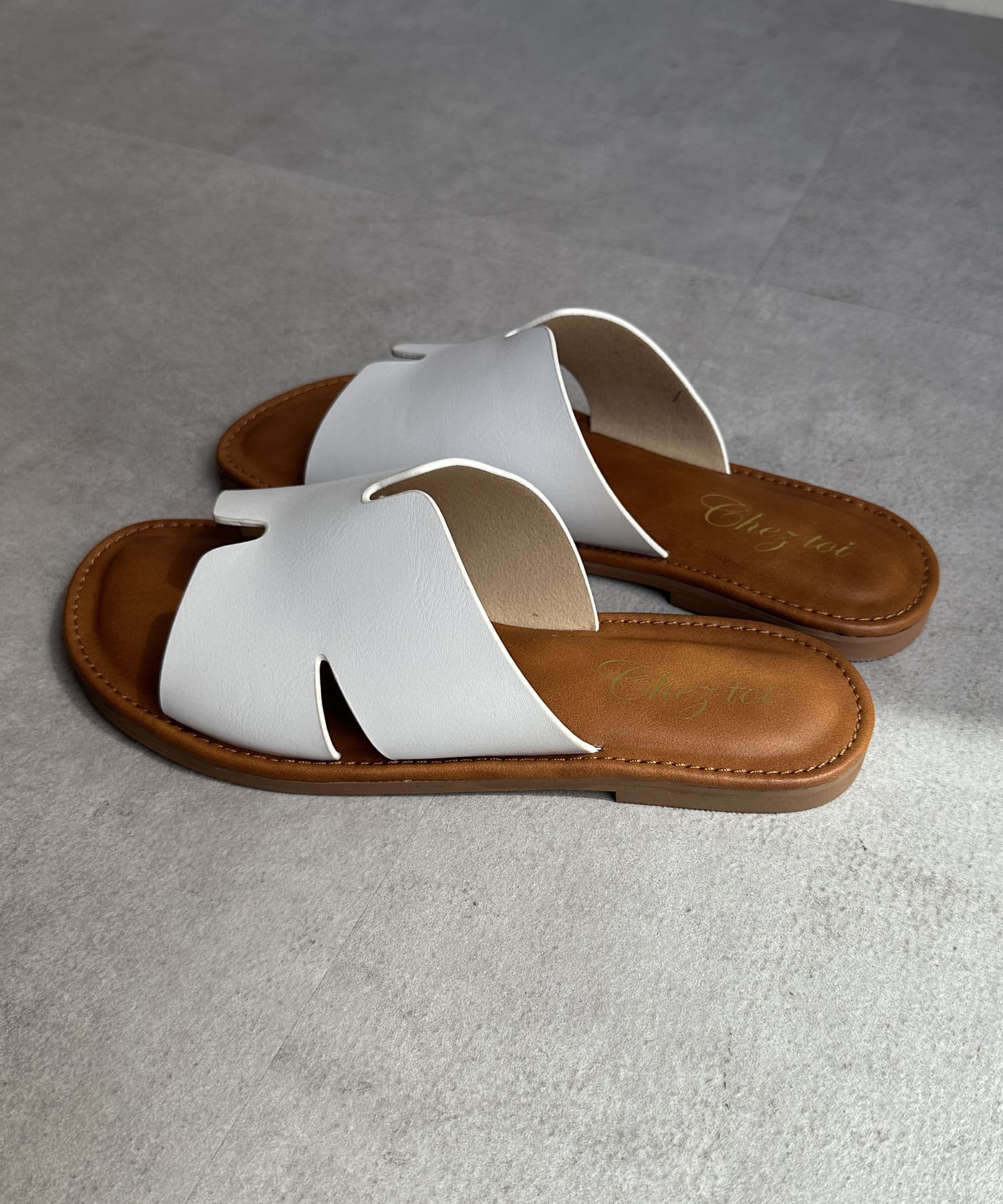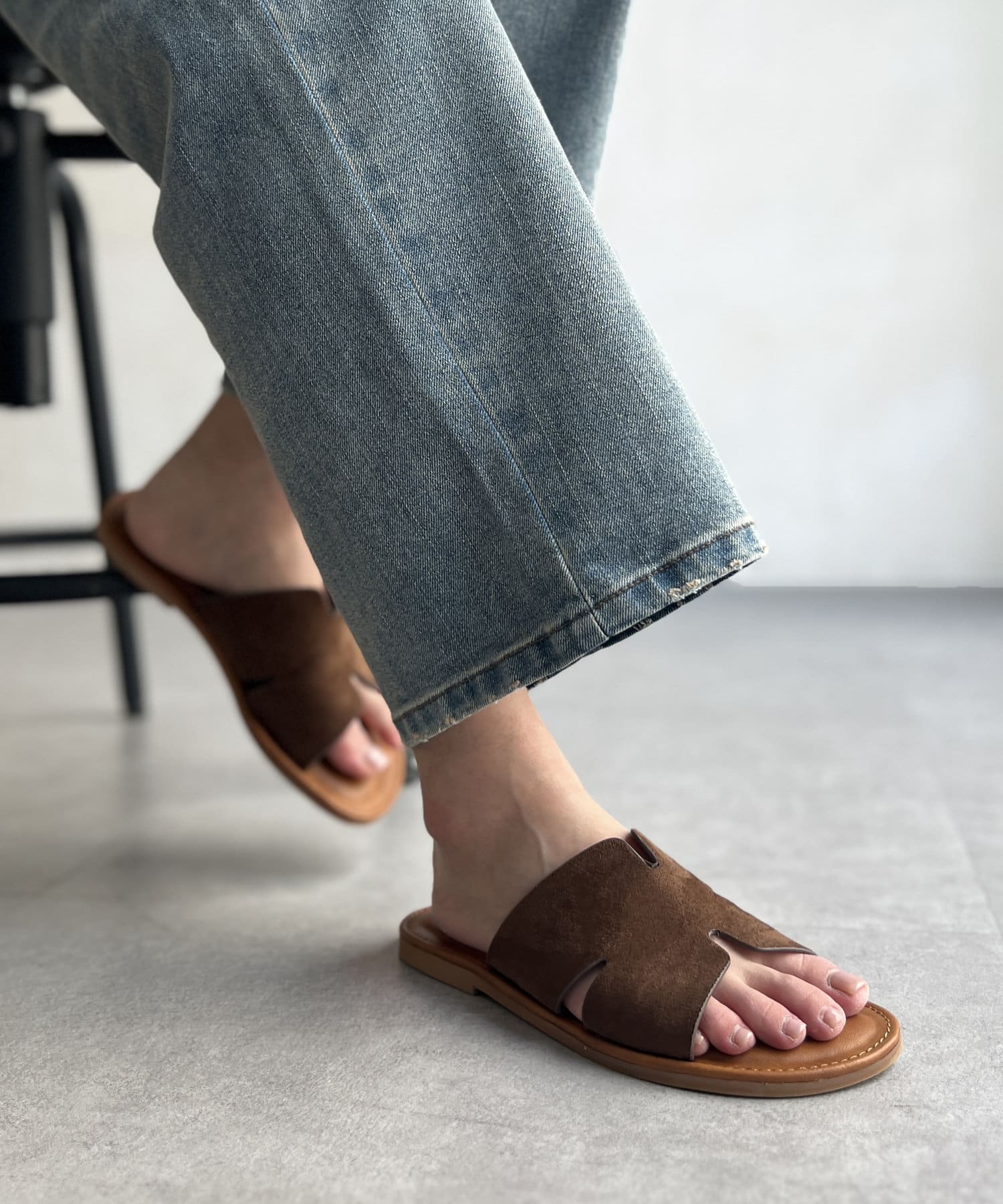 カットラインが足の甲を綺麗に見せてくれるフラットサンダル