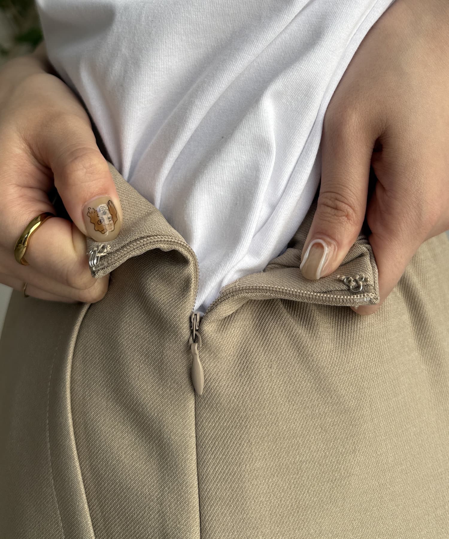 後ろウエストがゴム仕様になっていて、サイドにもファスナーが付いているので