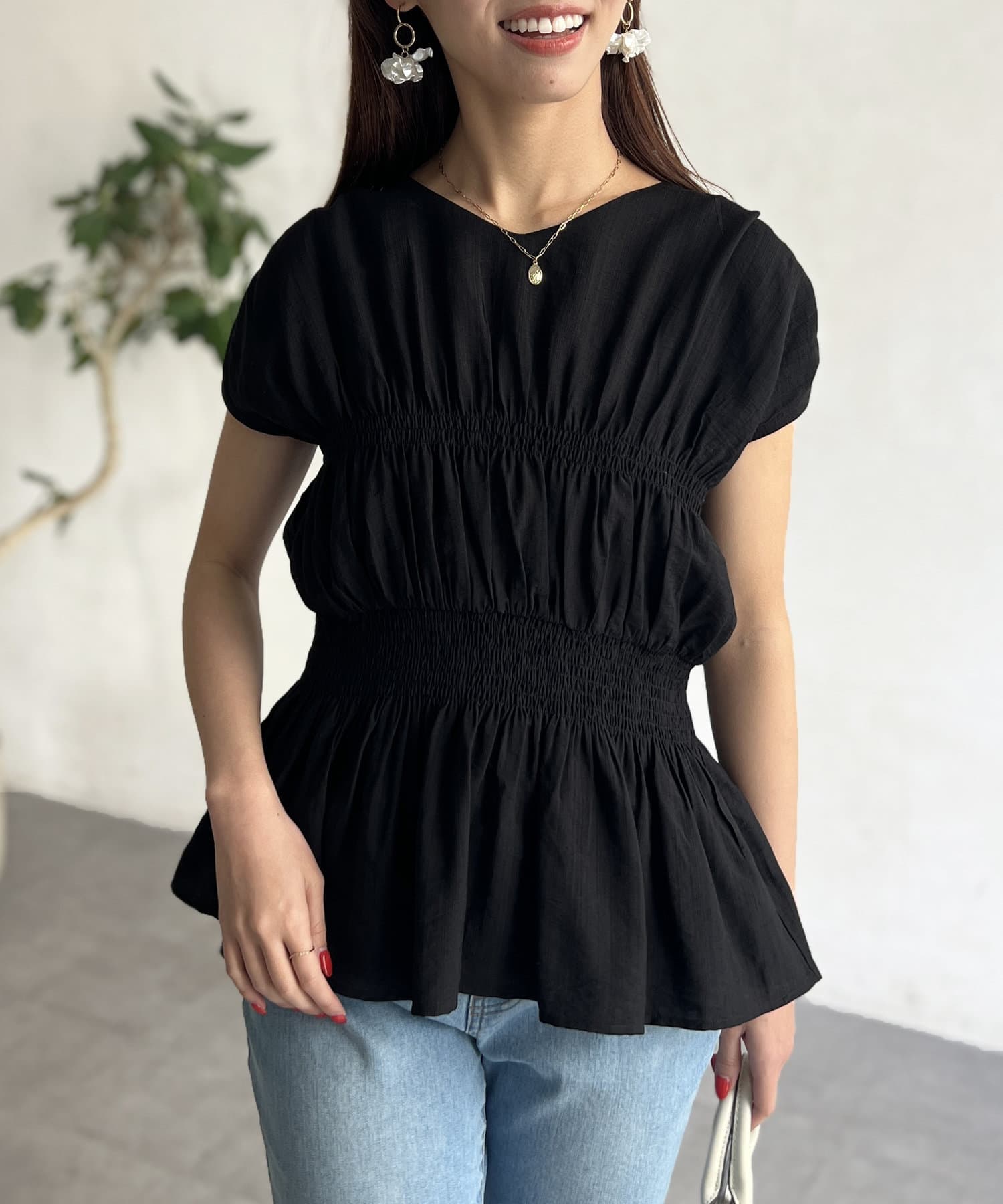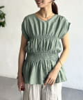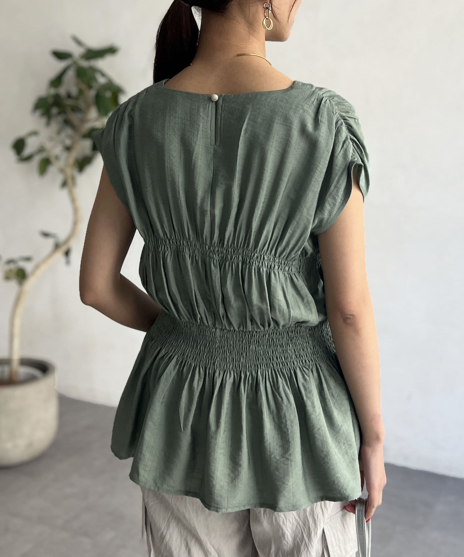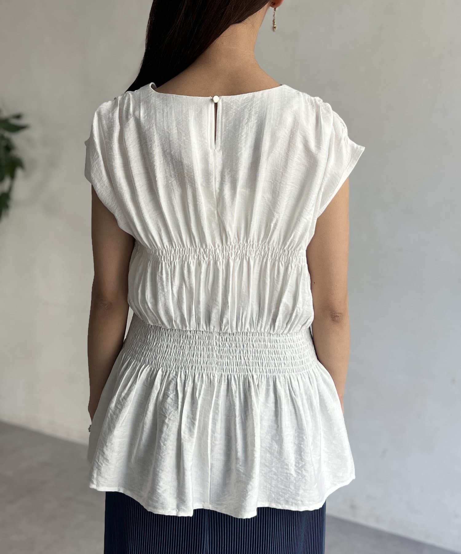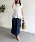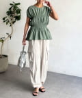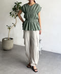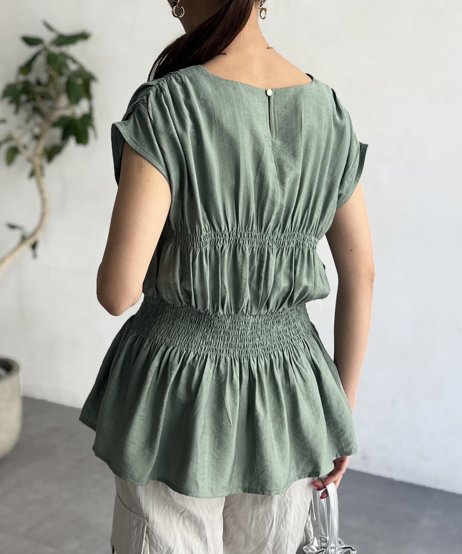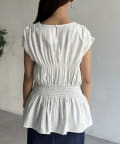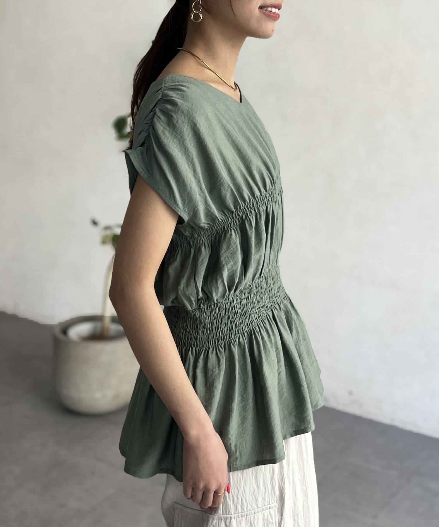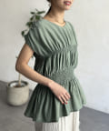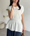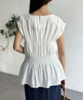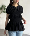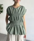 ウエスト部分のシャーリングが可愛くシンプルかつデザイン性のあるトップスです。