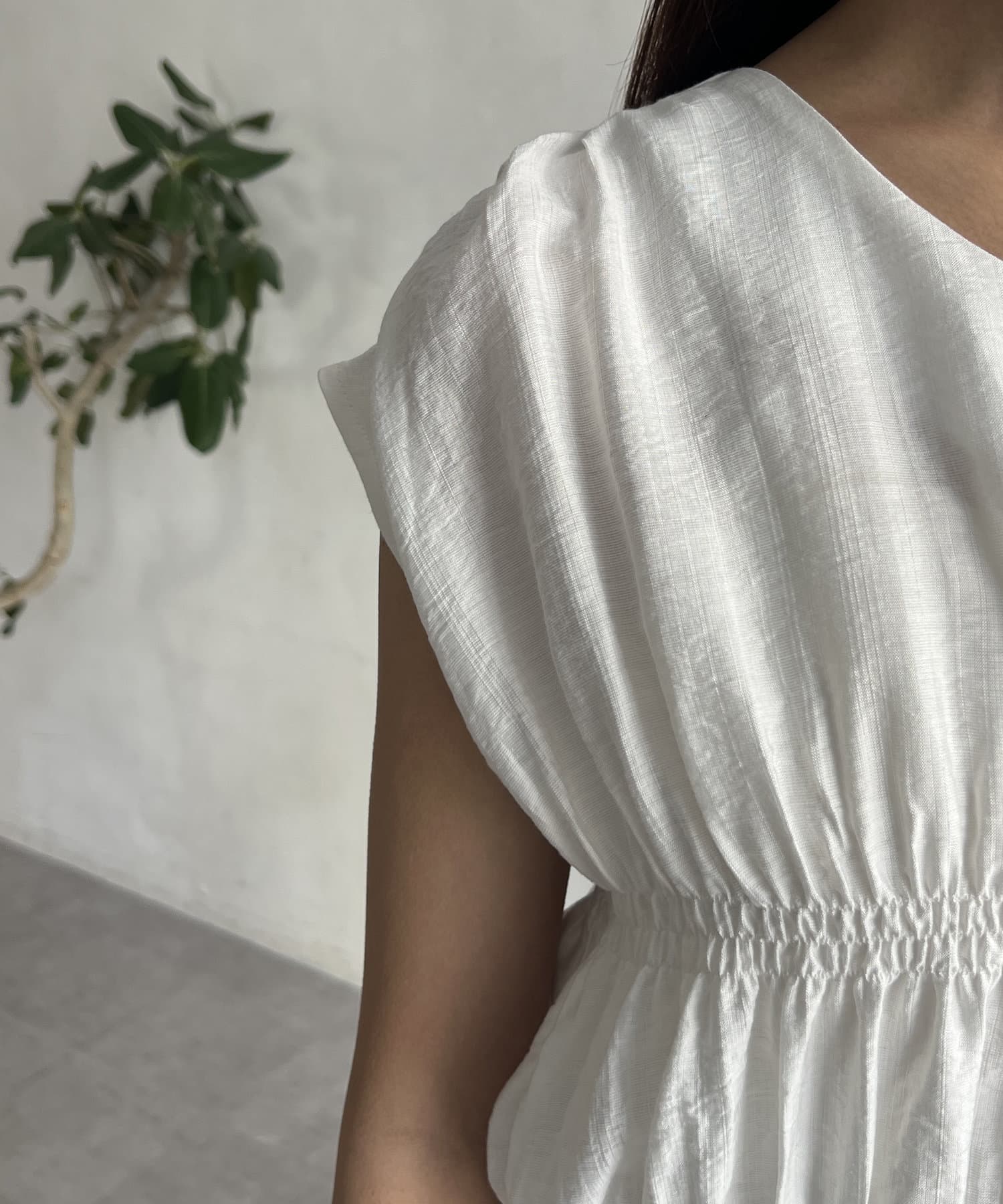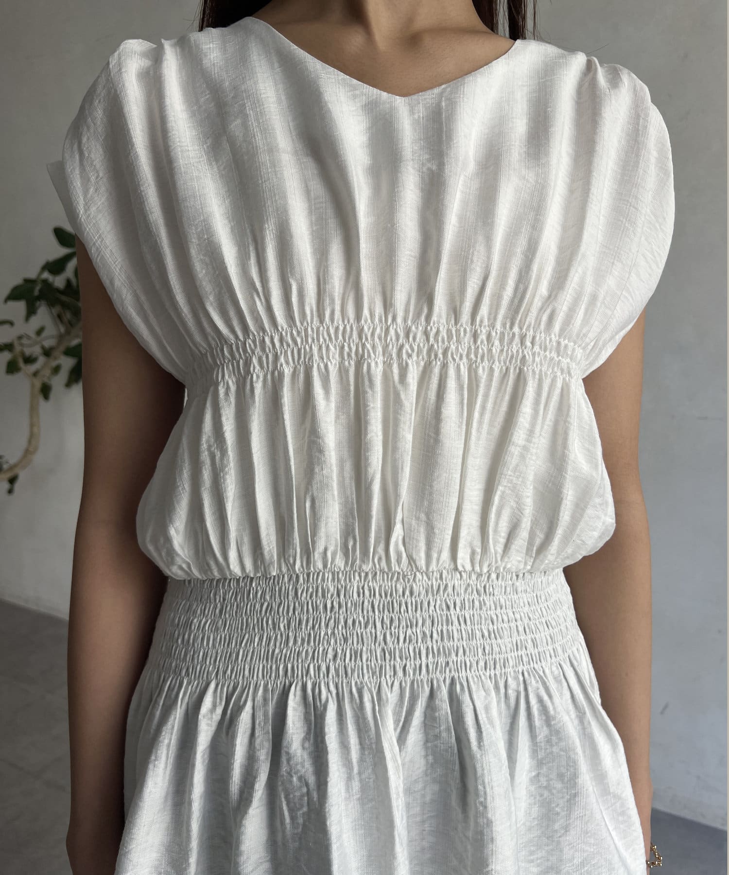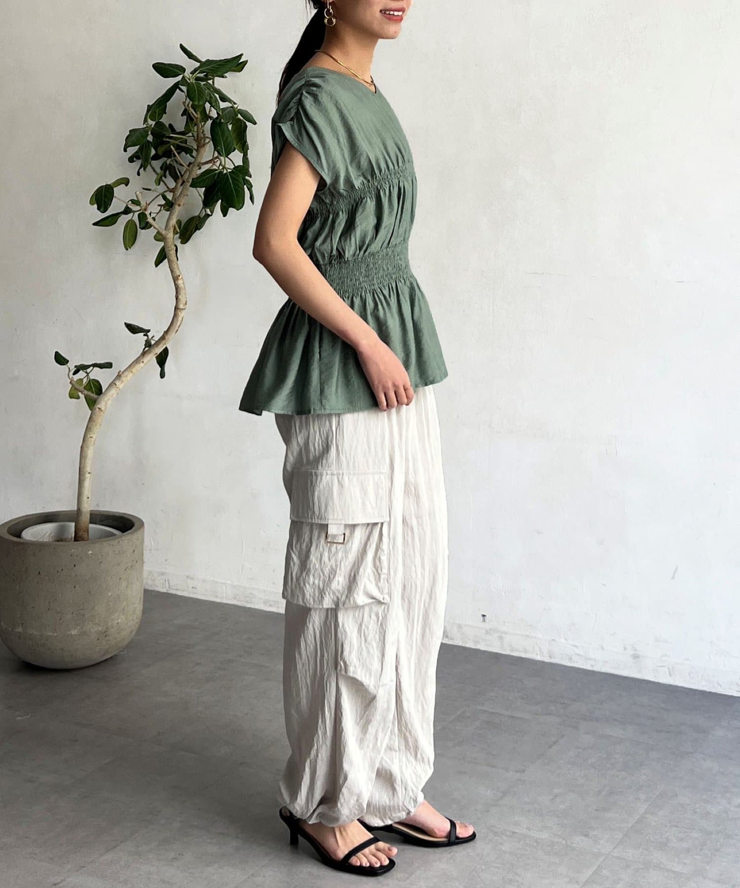 ウエストのシャーリングで着痩せ効果◎