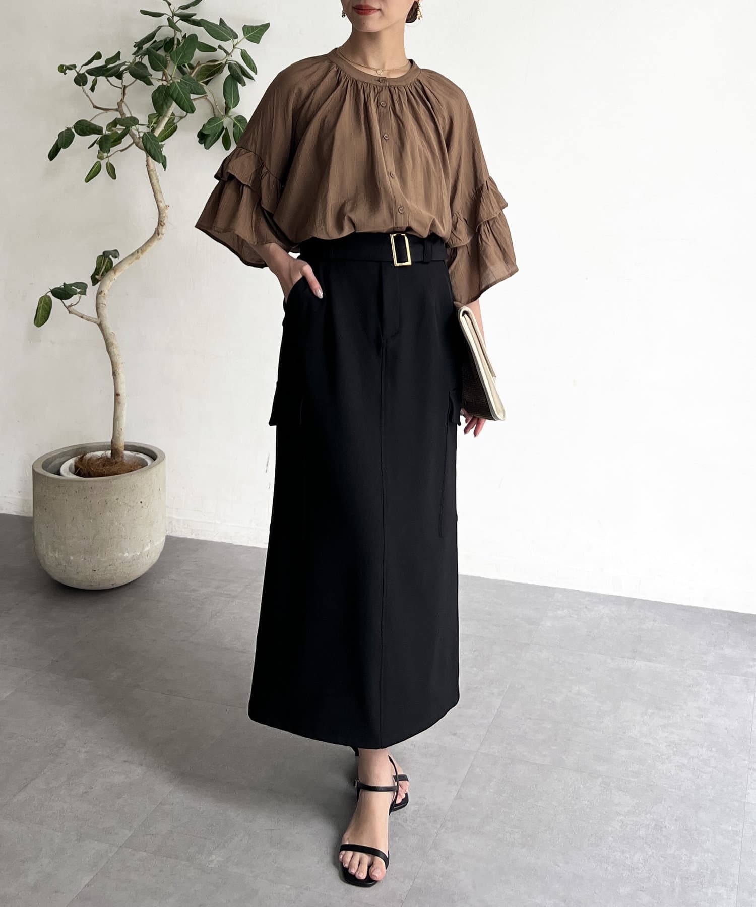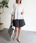 一枚で着映えするデザインブラウスは、合わせるボトムス次第で