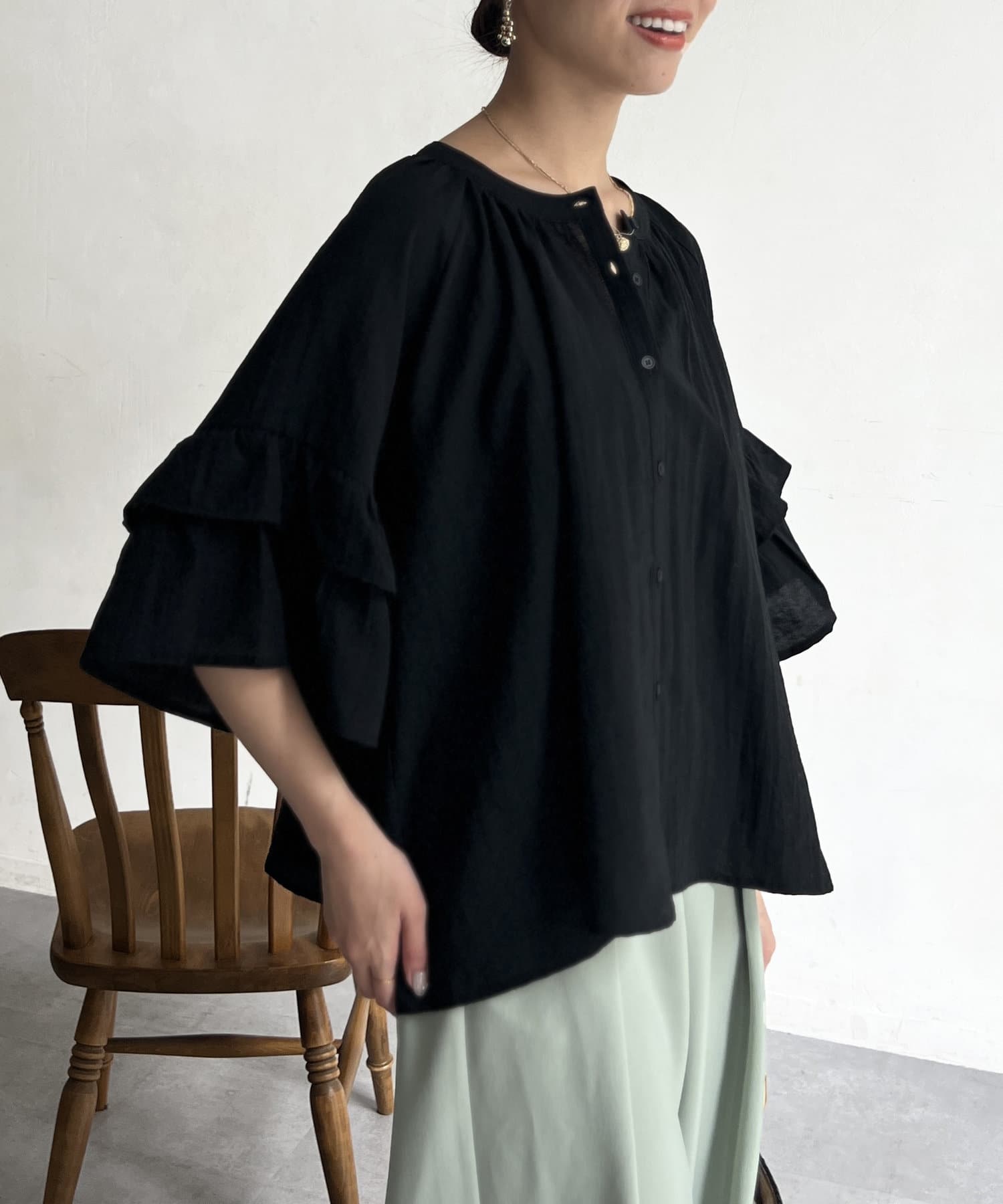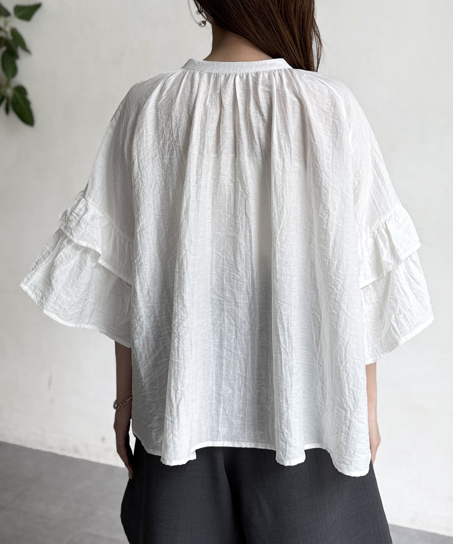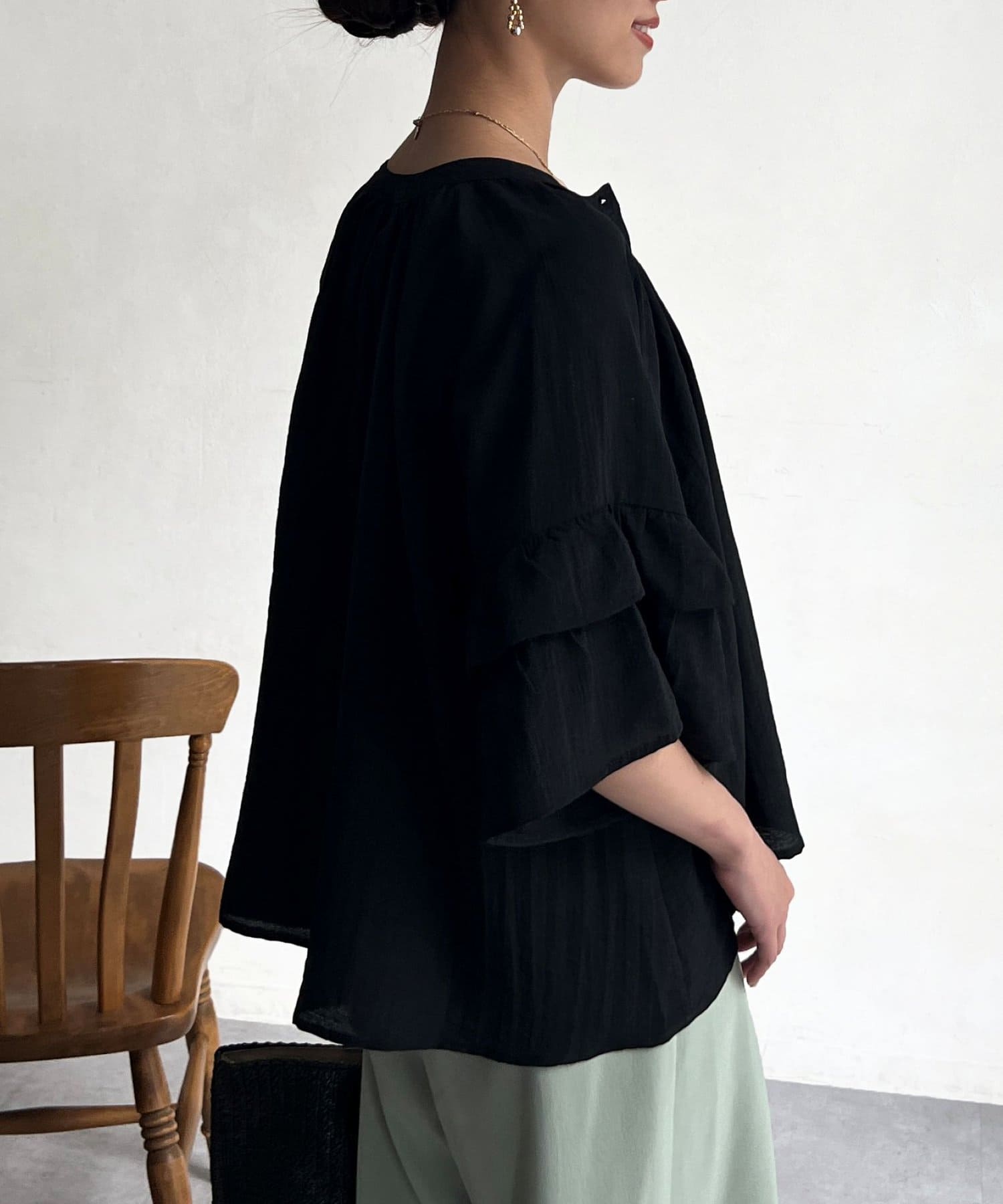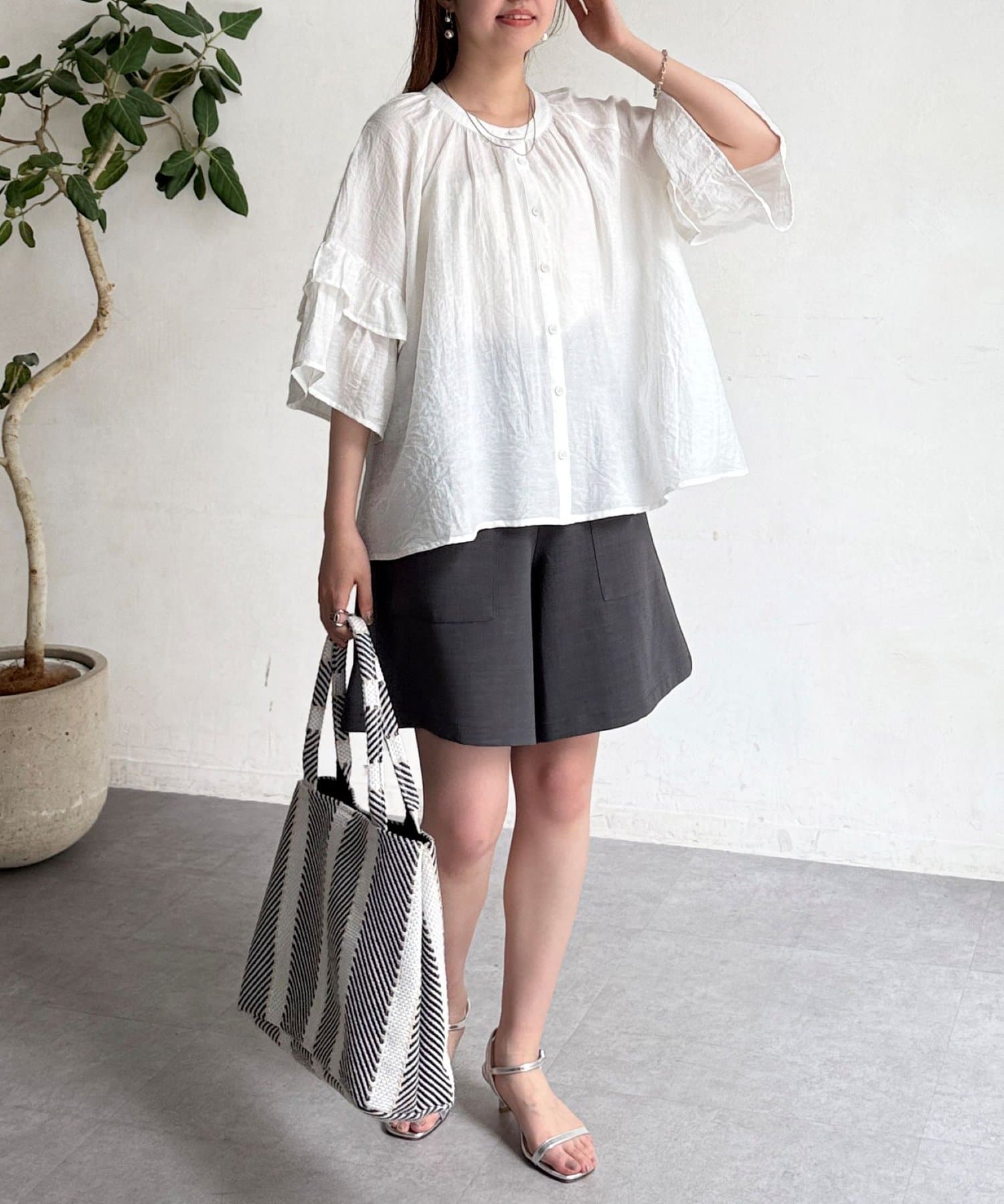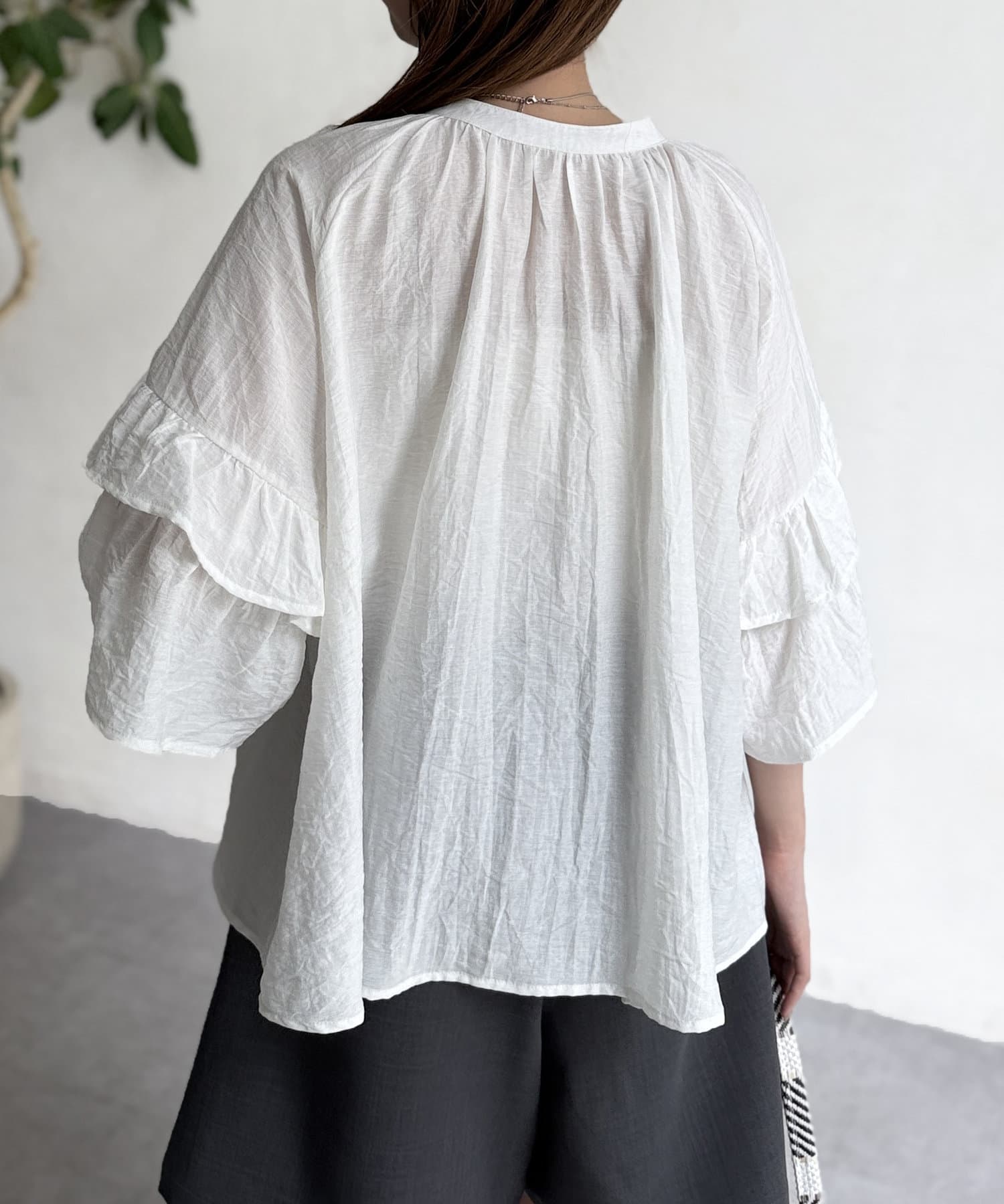 【体型カバー】【紫外線&冷房対策】袖フレア2WAYブラウス