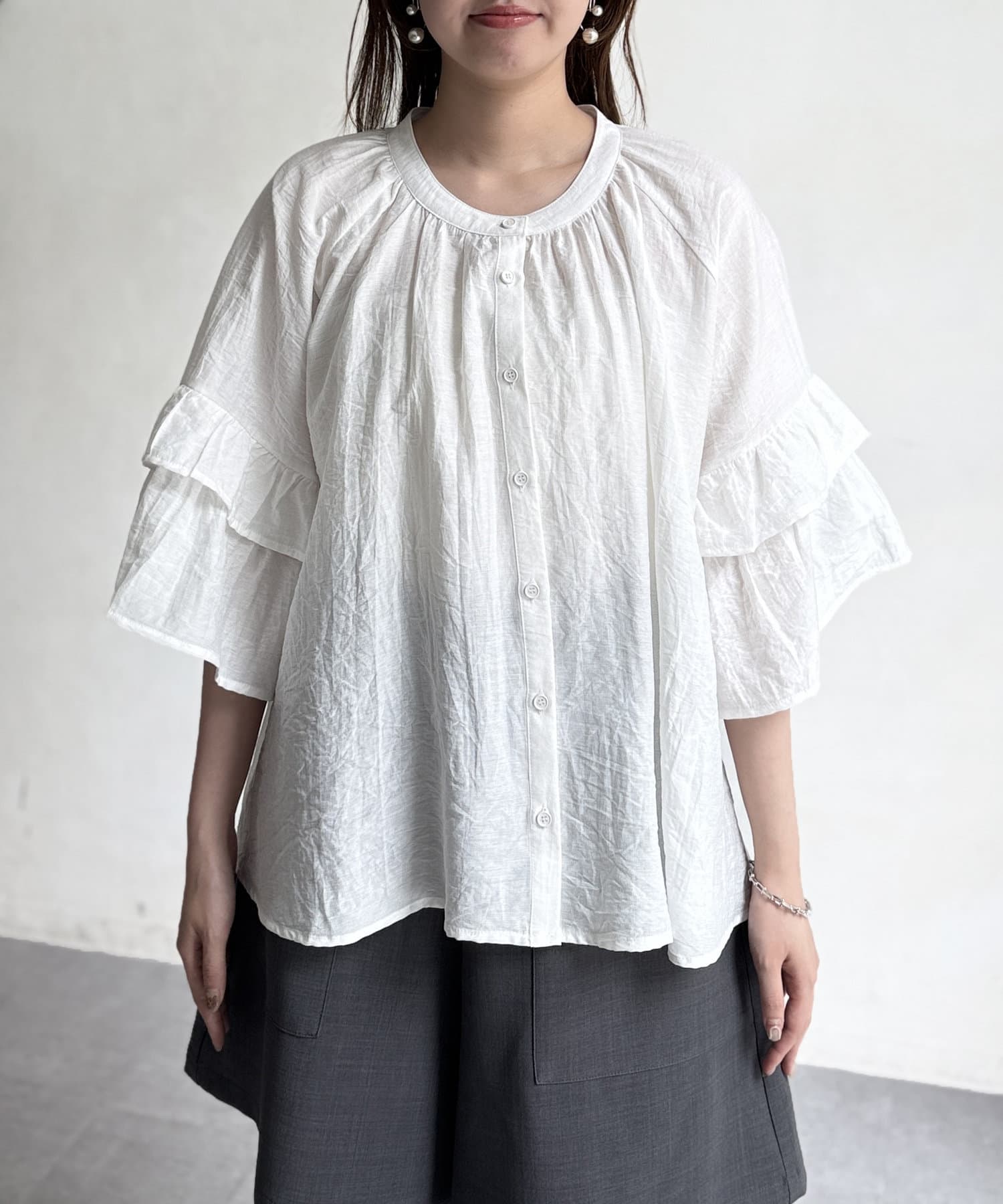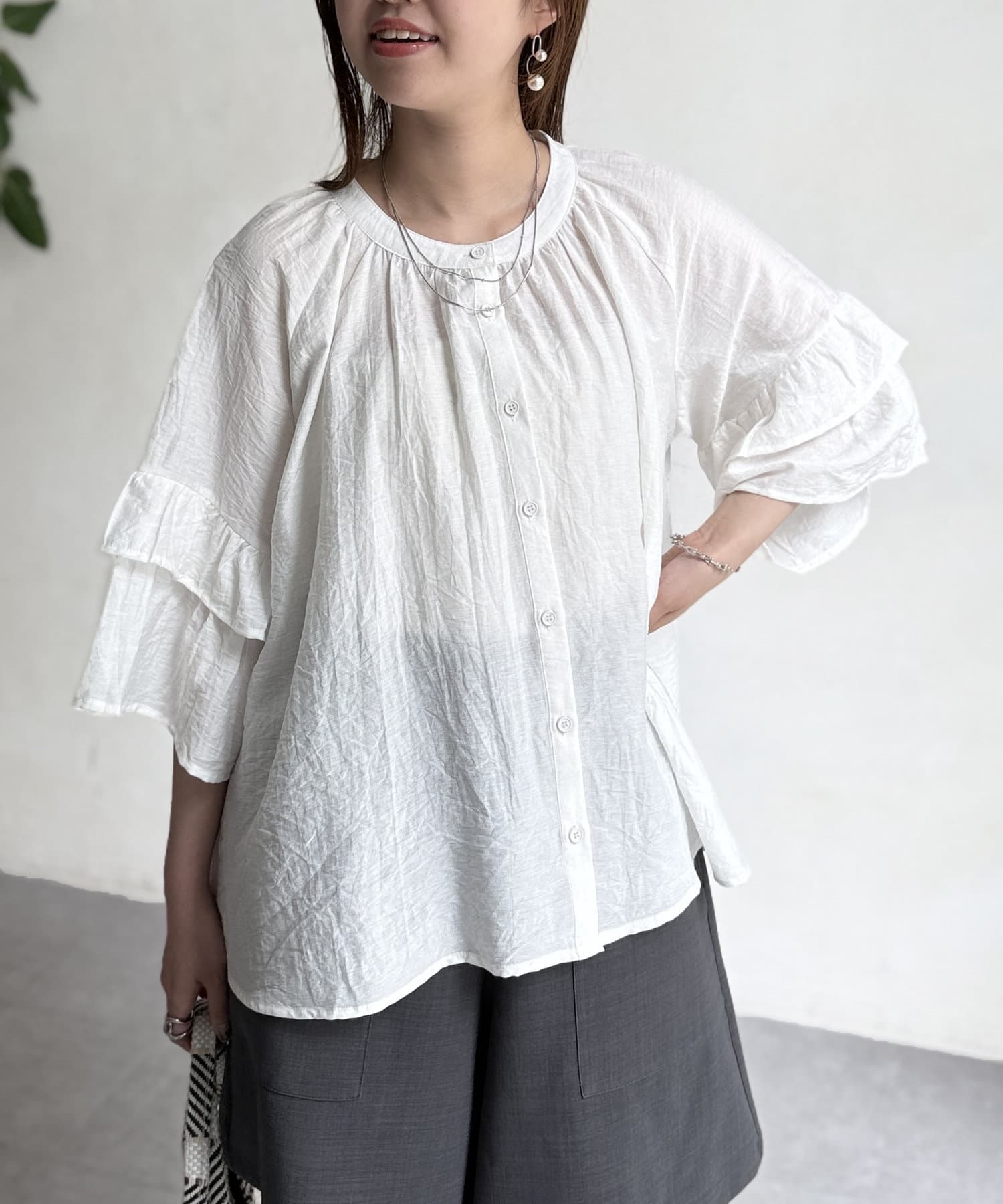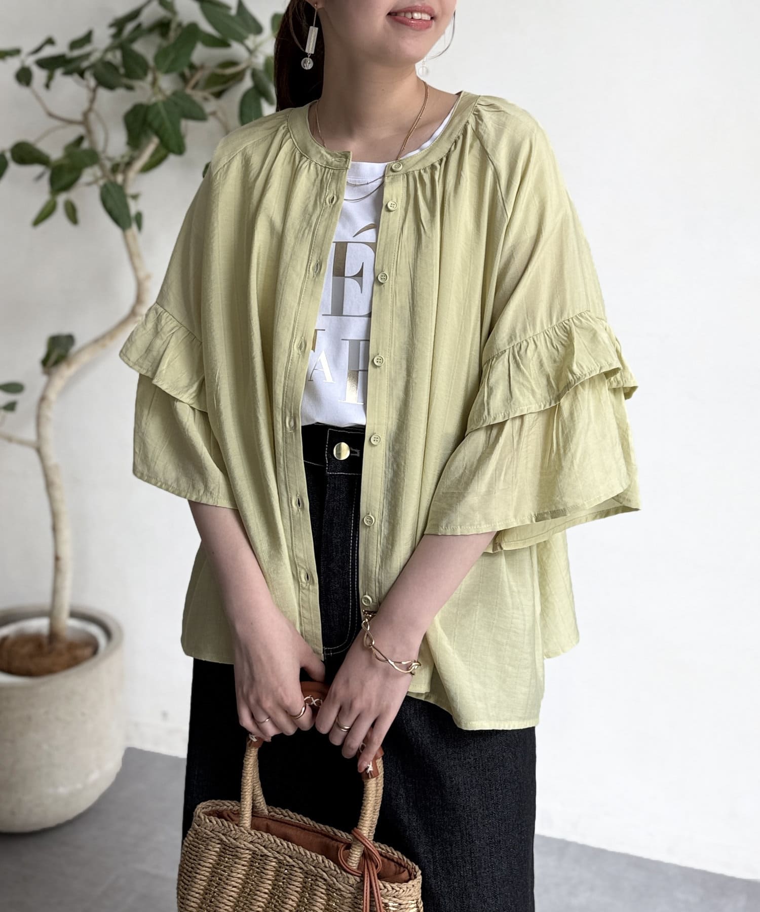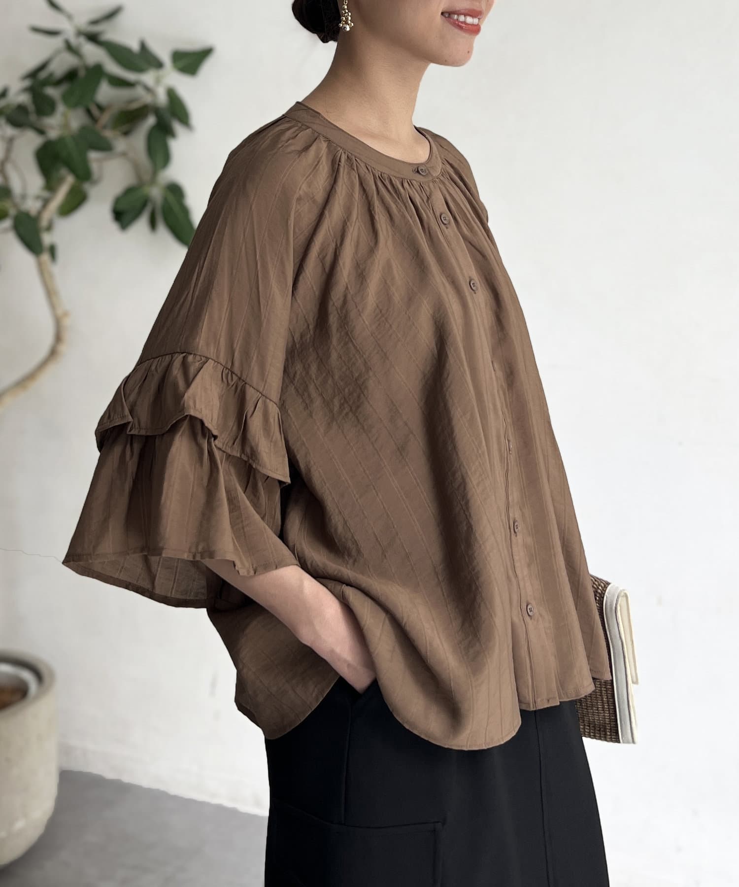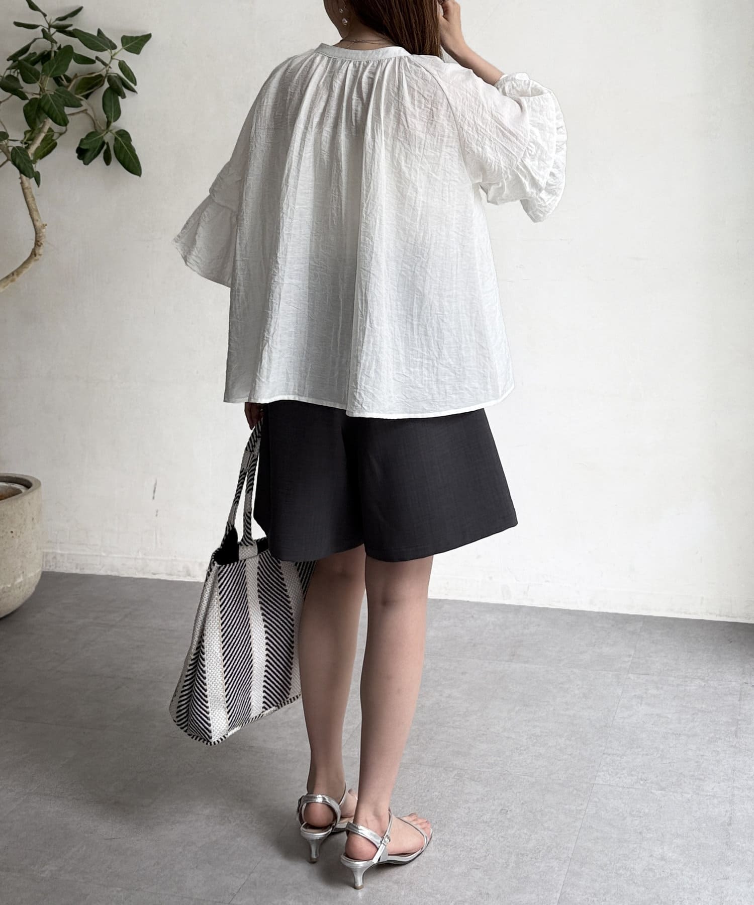 【体型カバー】【紫外線&冷房対策】袖フレア2WAYブラウス
