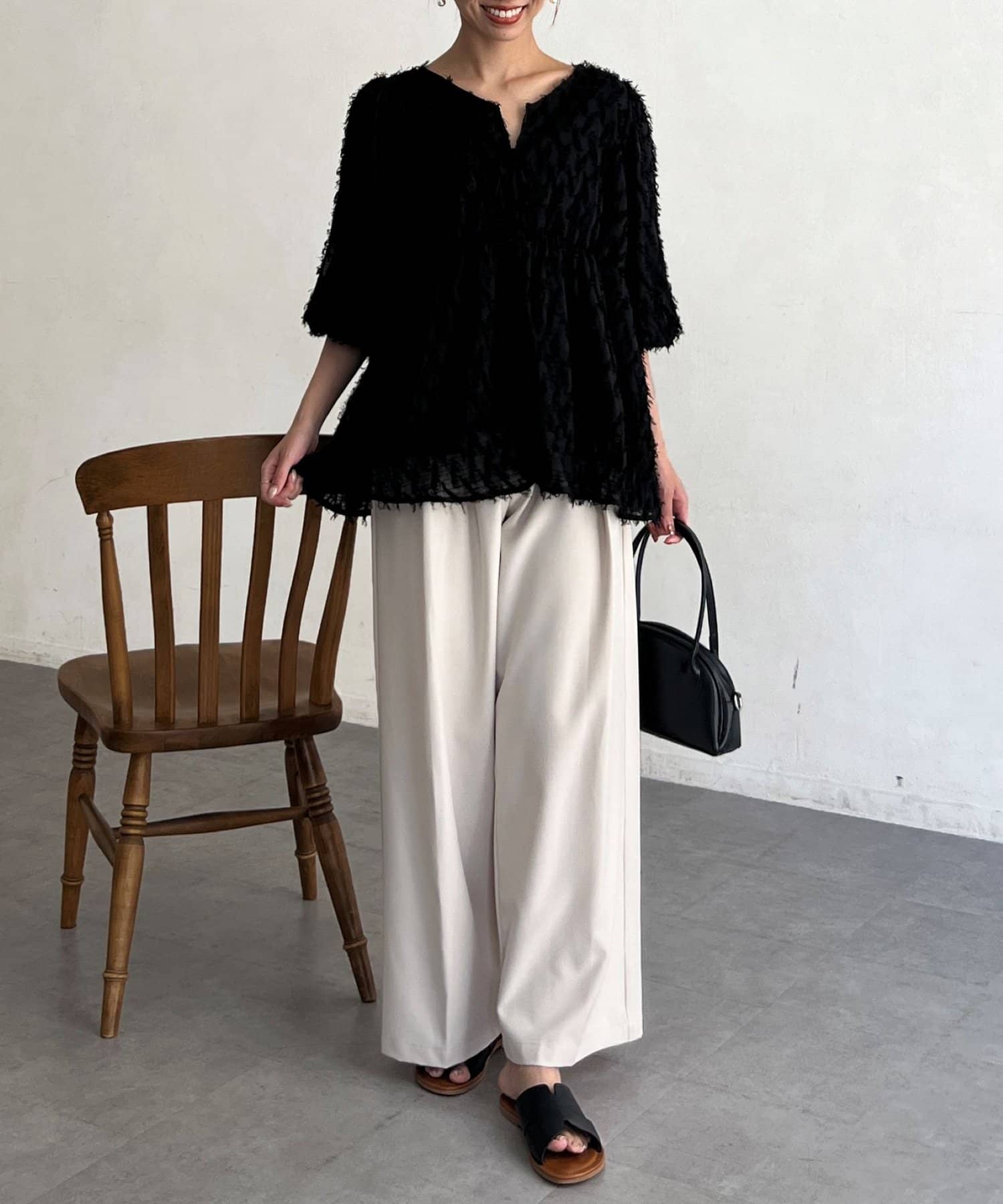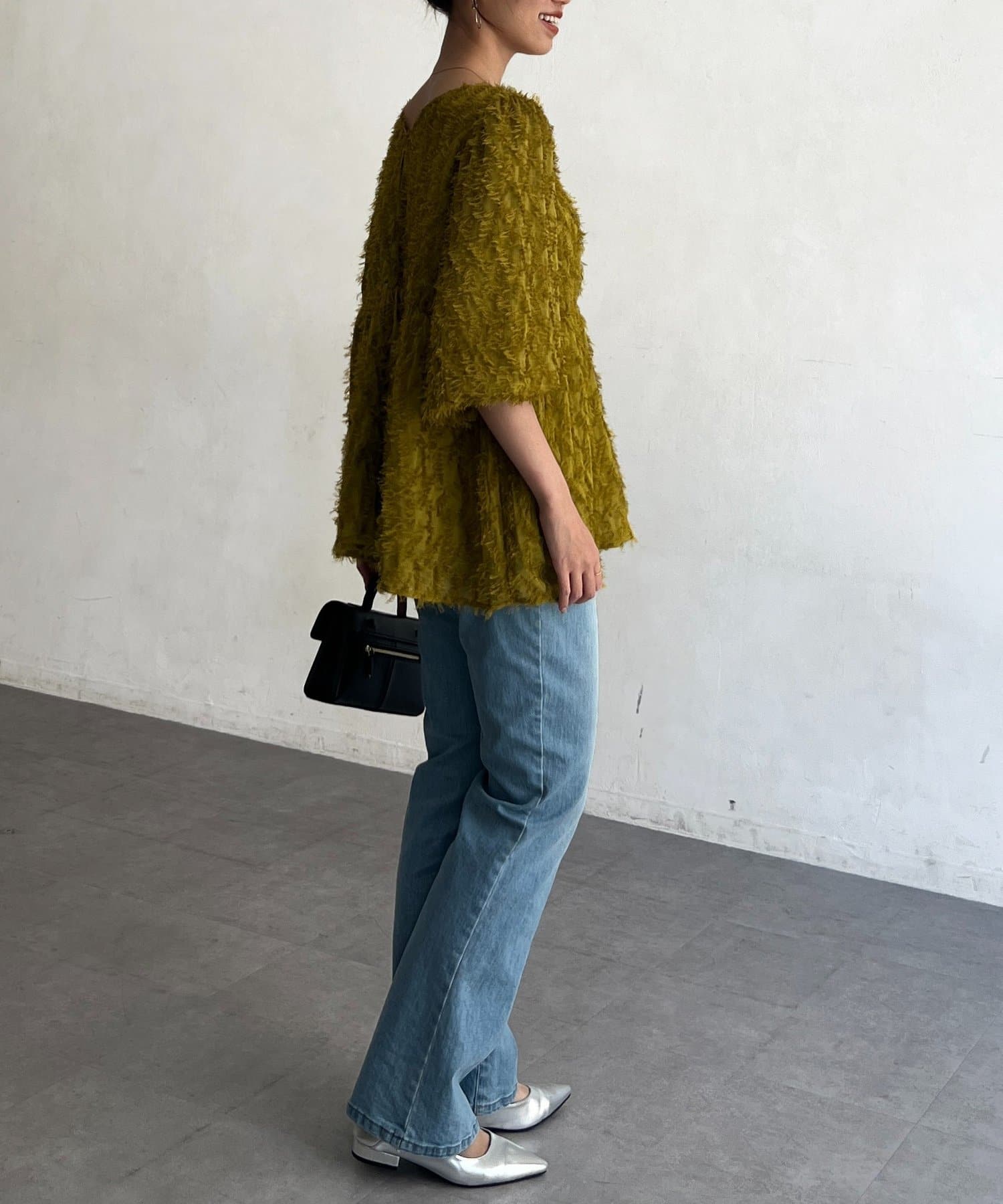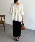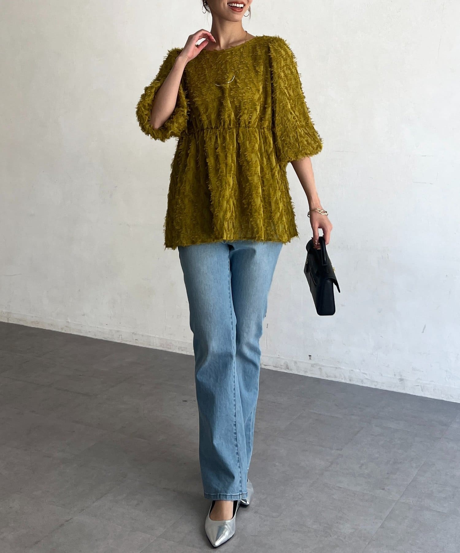 甘めのデザインなのでデニムなどカジュアルなパンツと合わせてバランスを取るのがおすすめです♪