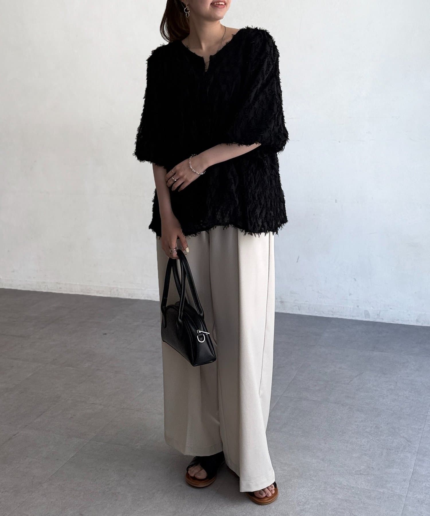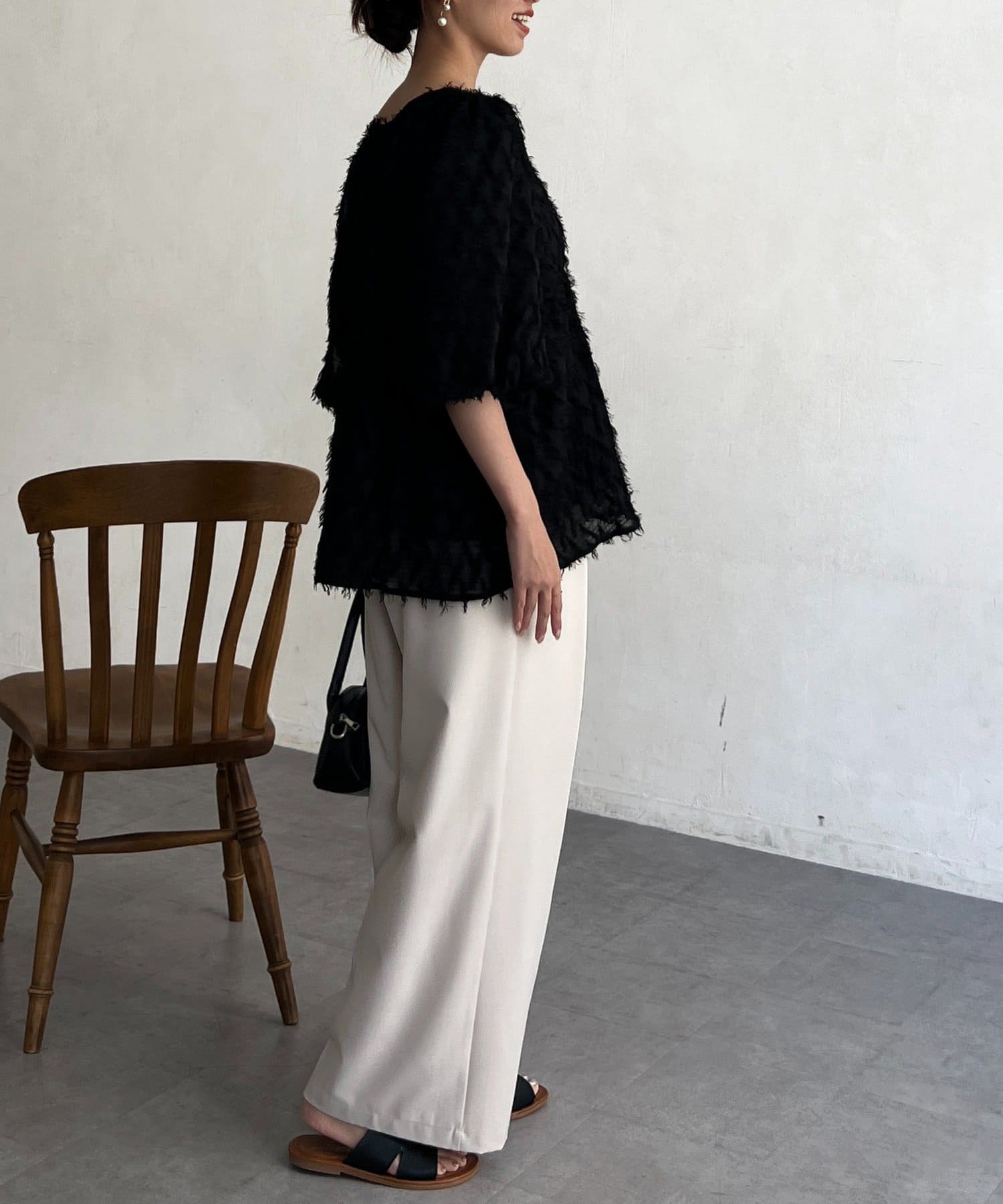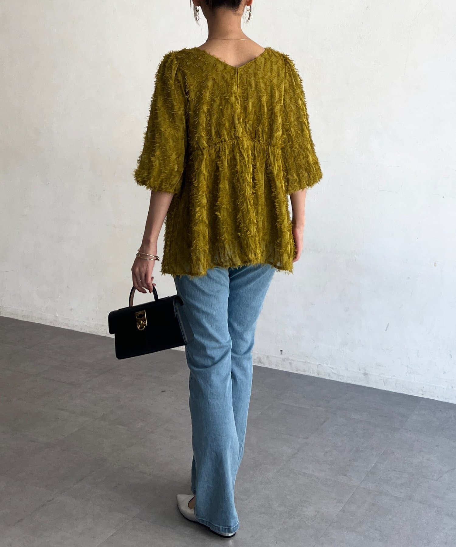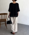 甘めのデザインなのでデニムなどカジュアルなパンツと合わせてバランスを取るのがおすすめです♪