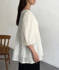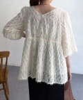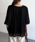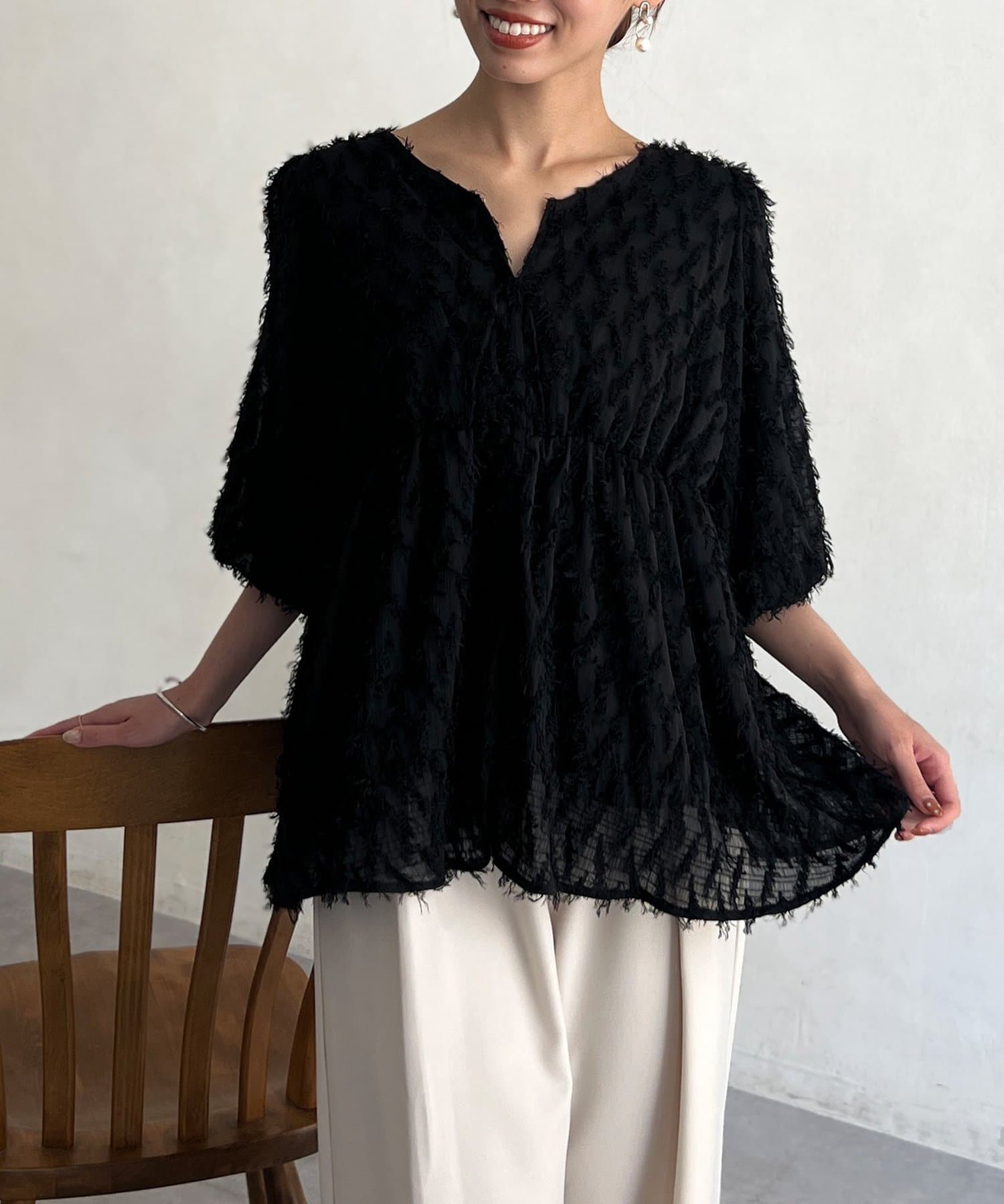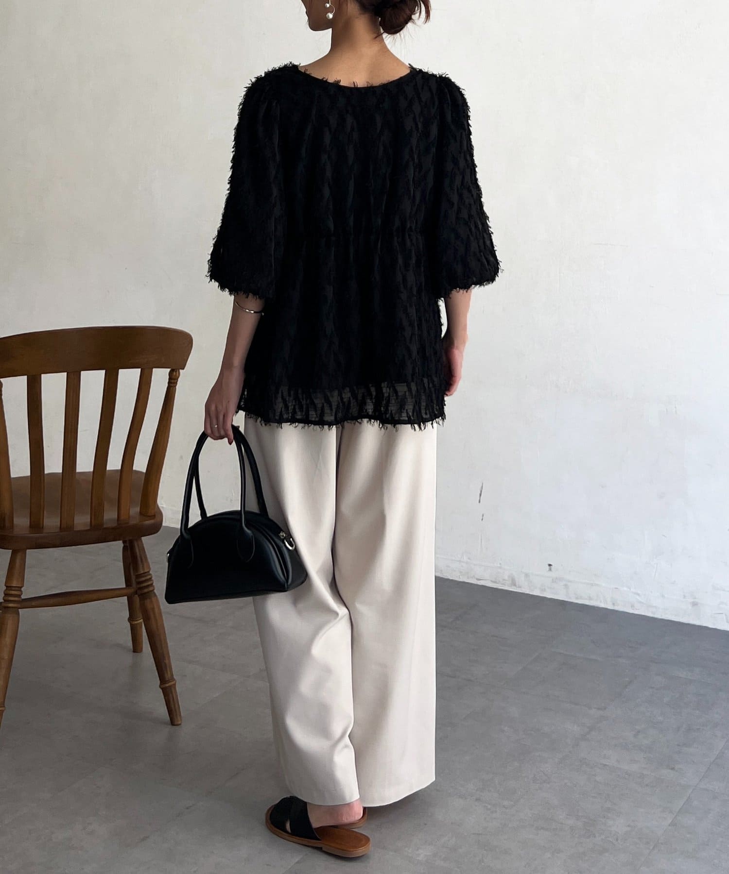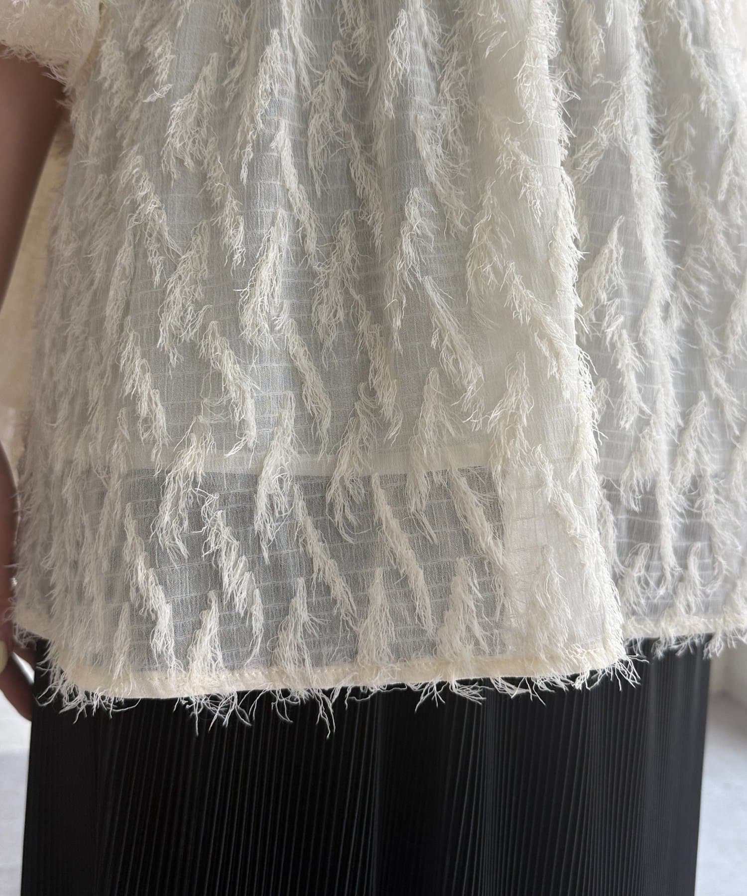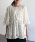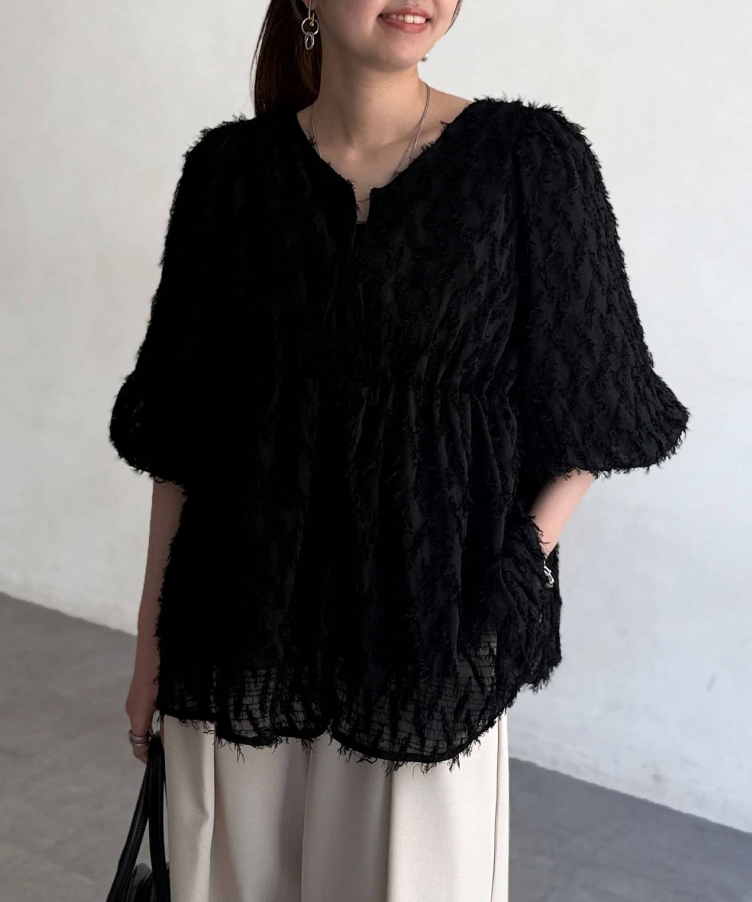 ジャカードがたっぷりと施されたペプラムブラウス。