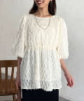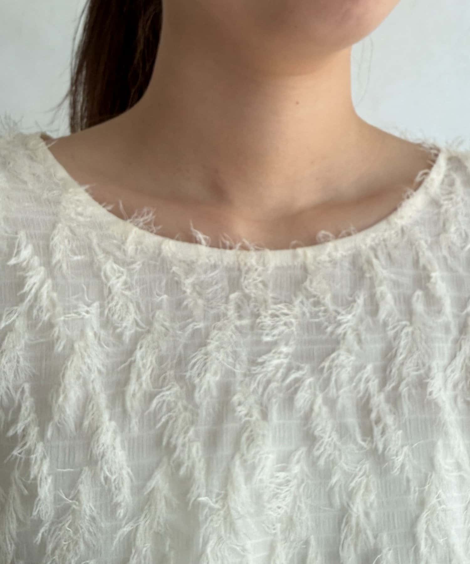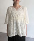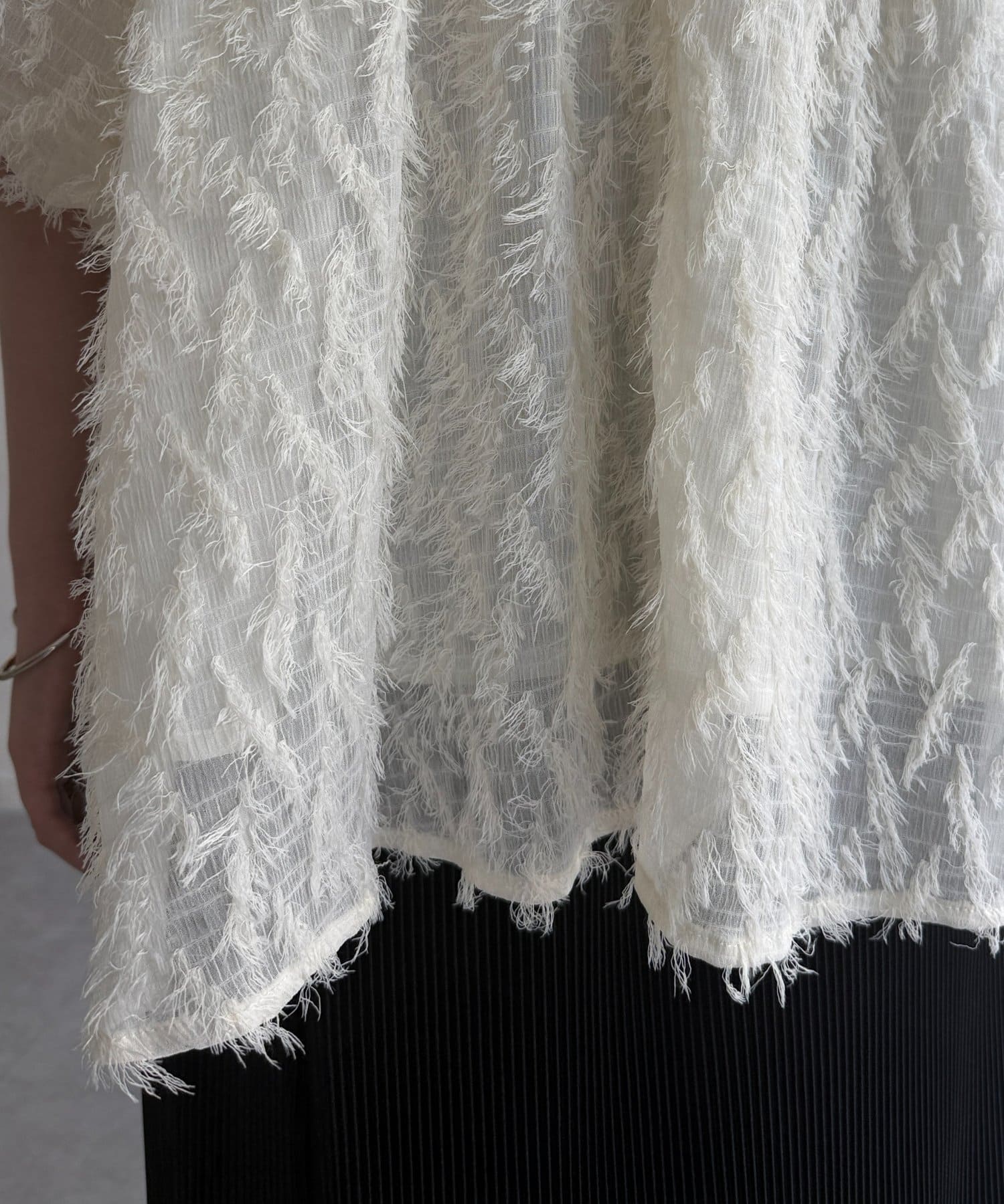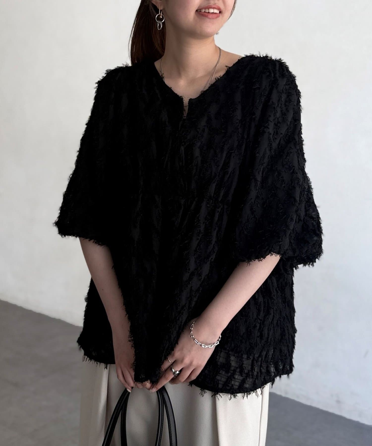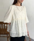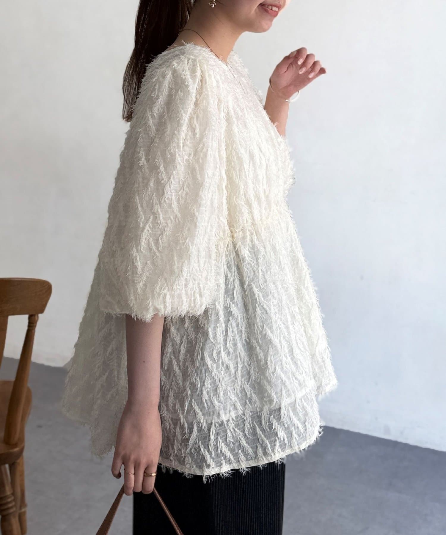 ジャカードがたっぷりと施されたペプラムブラウス。