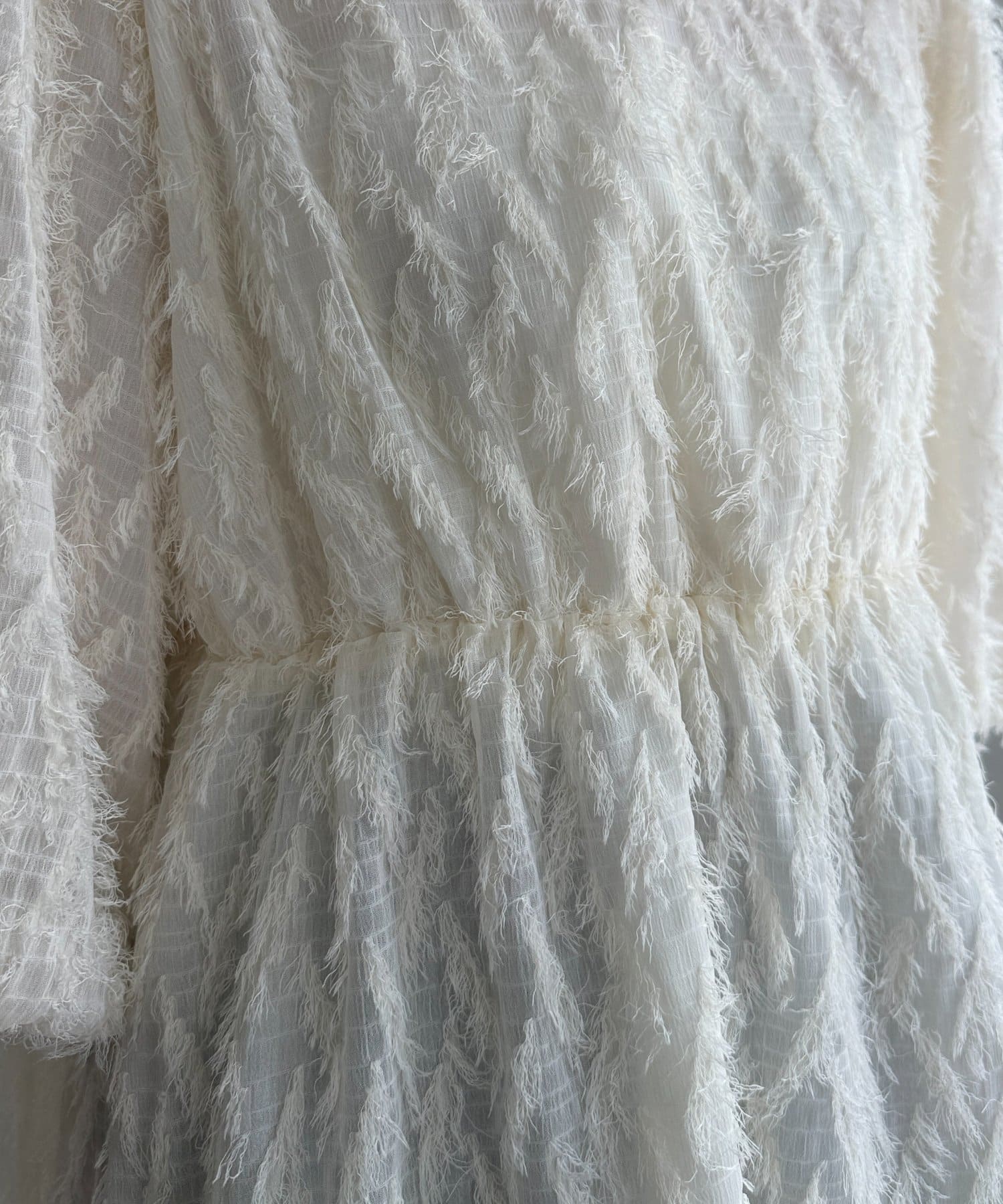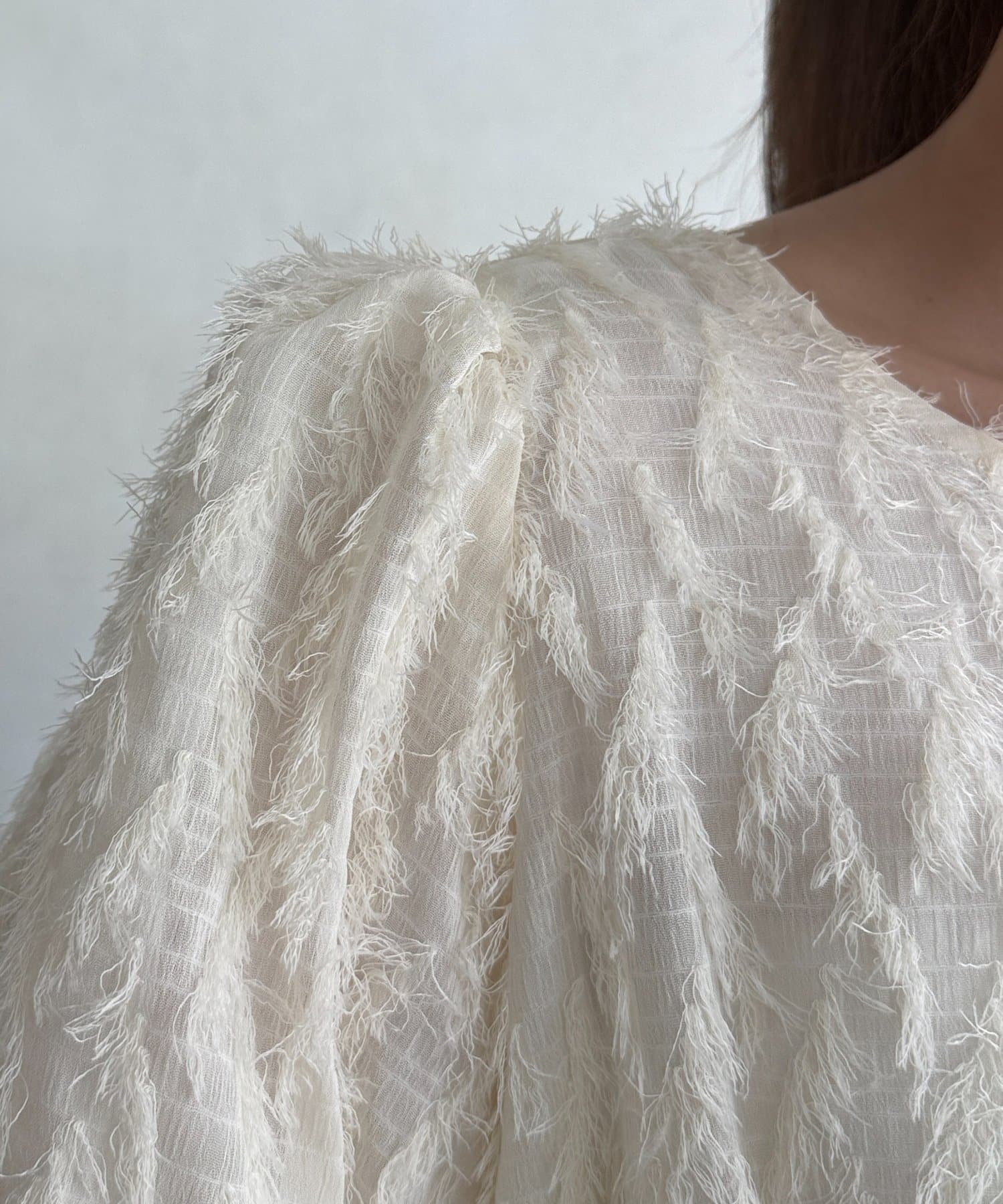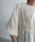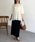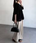 程よいボリュームの立体感のあるお袖と、バスト下の切り替えから、下に向かって広がるフレアラインがフェミニンな印象に!