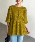 【首元3WAY仕様】【大人かわいい】ジャガードペプラムブラウス