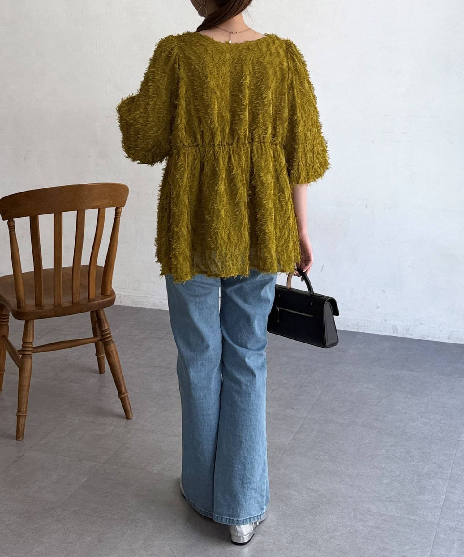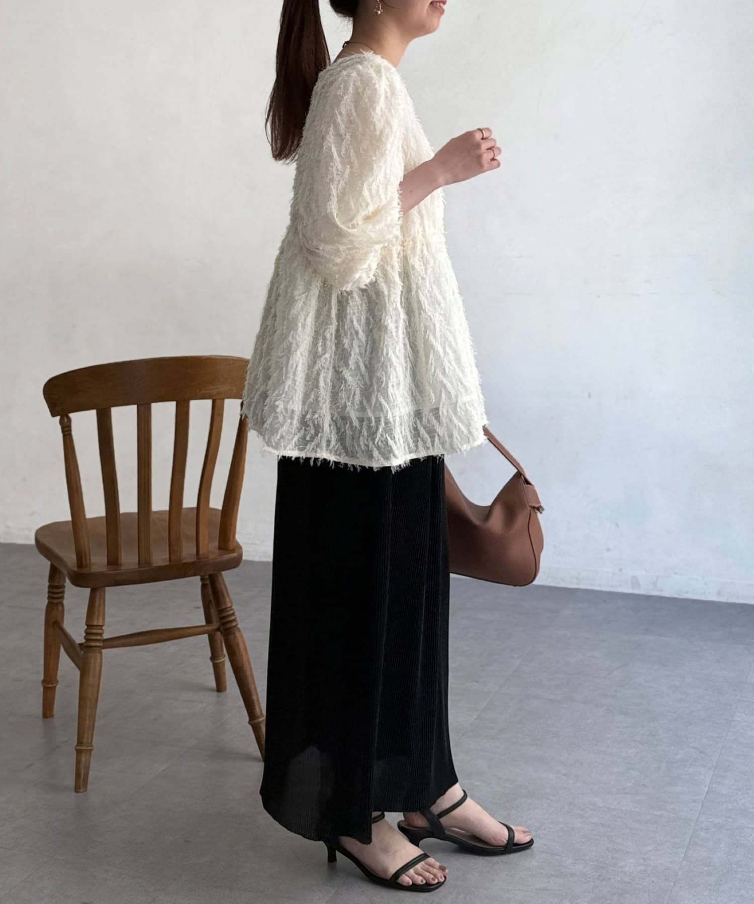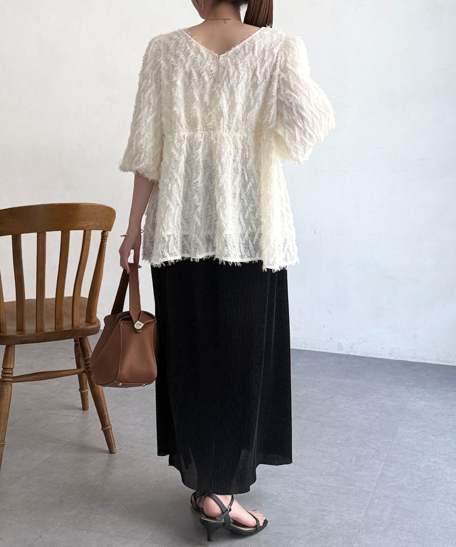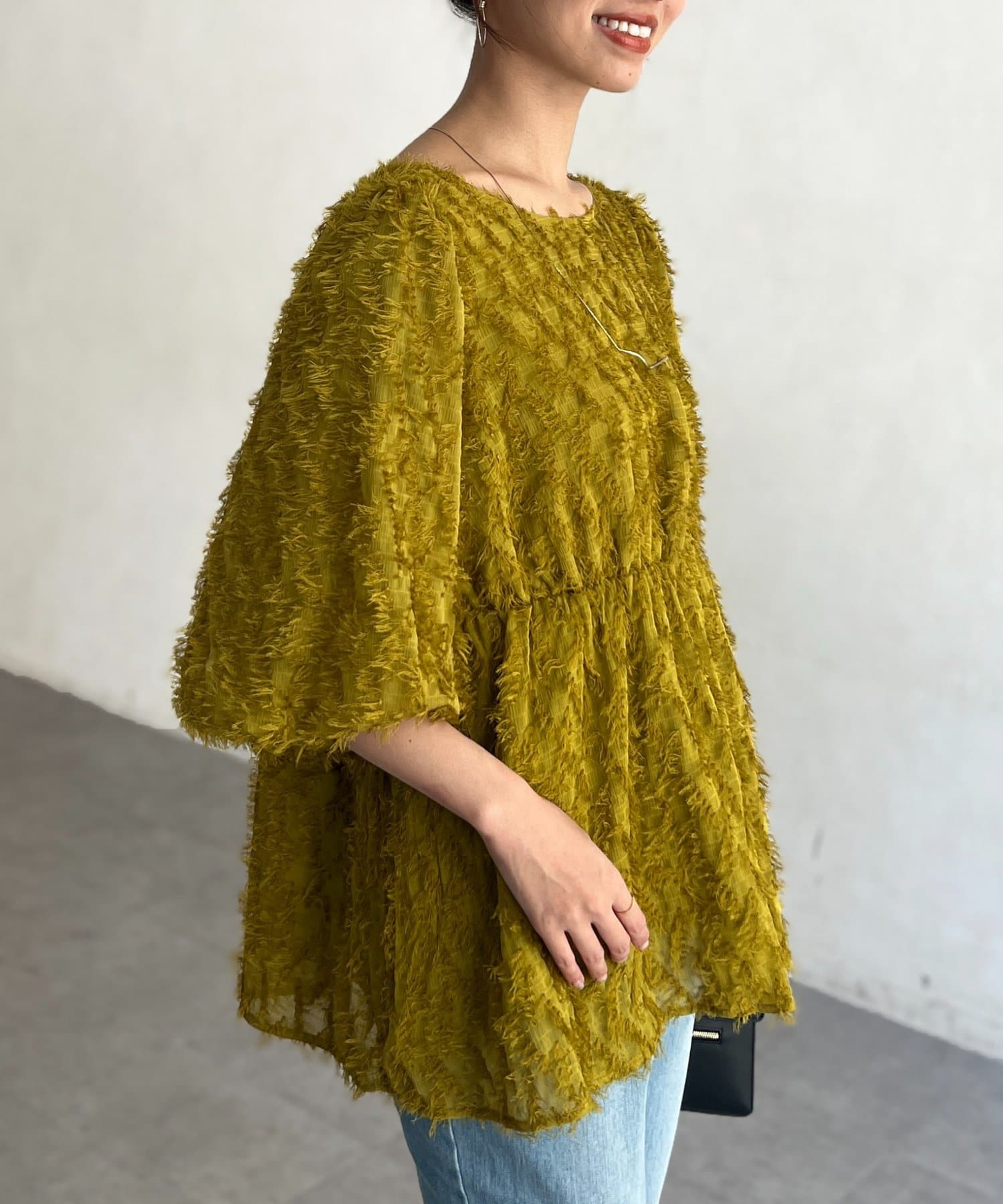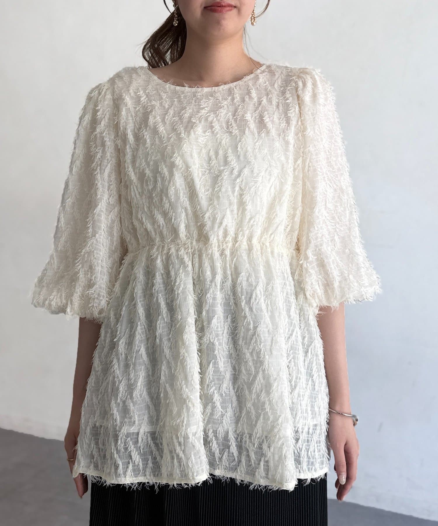 ほんのりシアー感があり、ペプラムデザインでスタイルアップ効果も◎