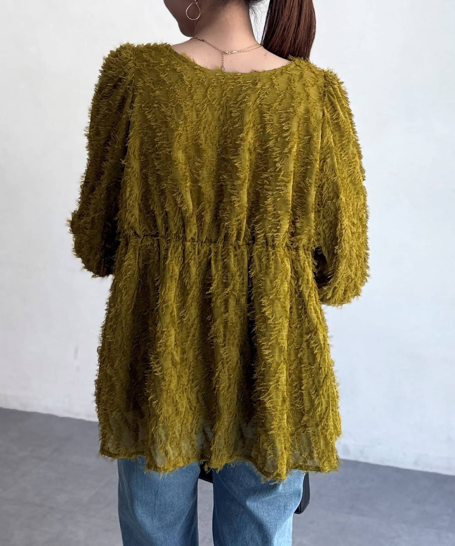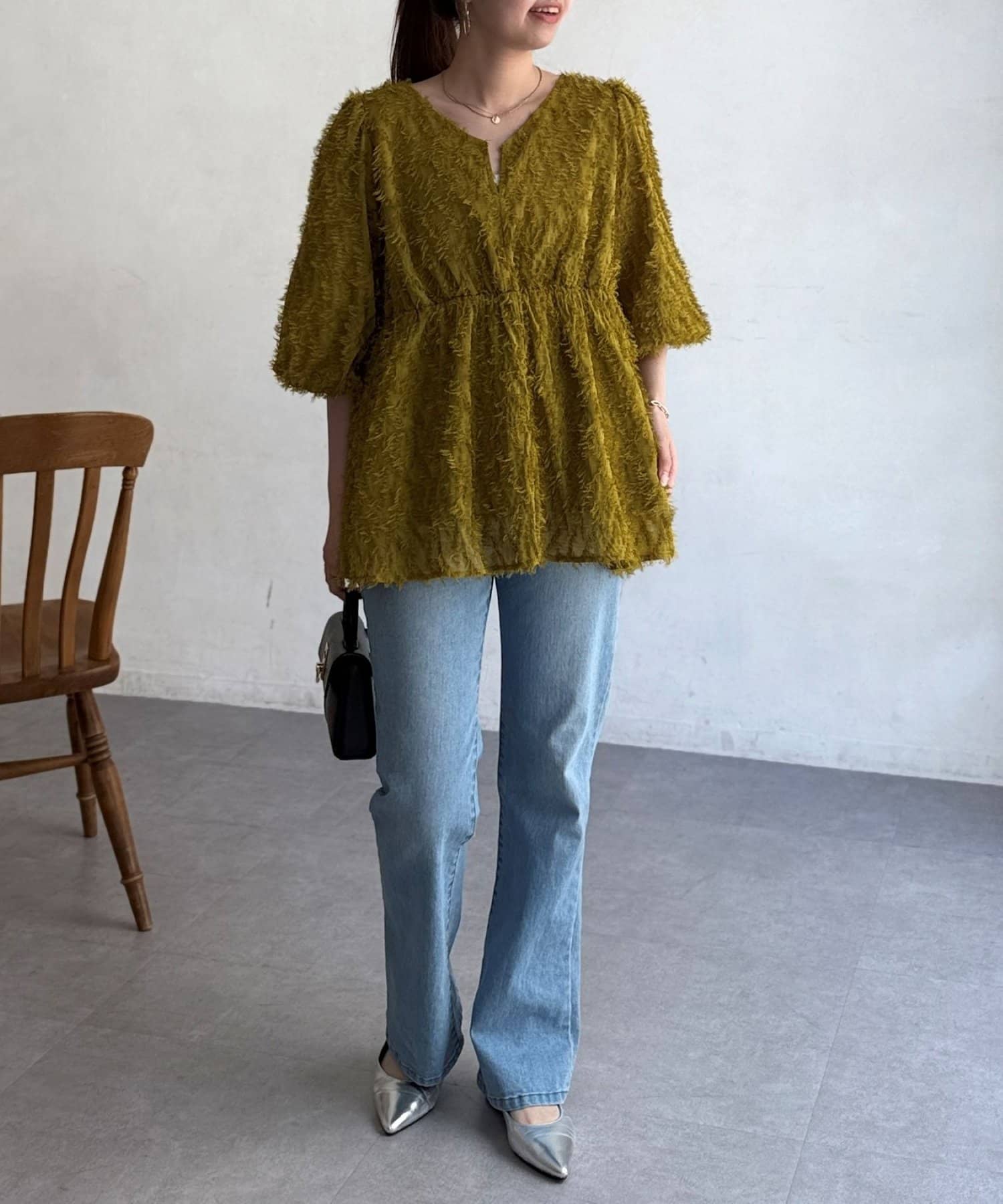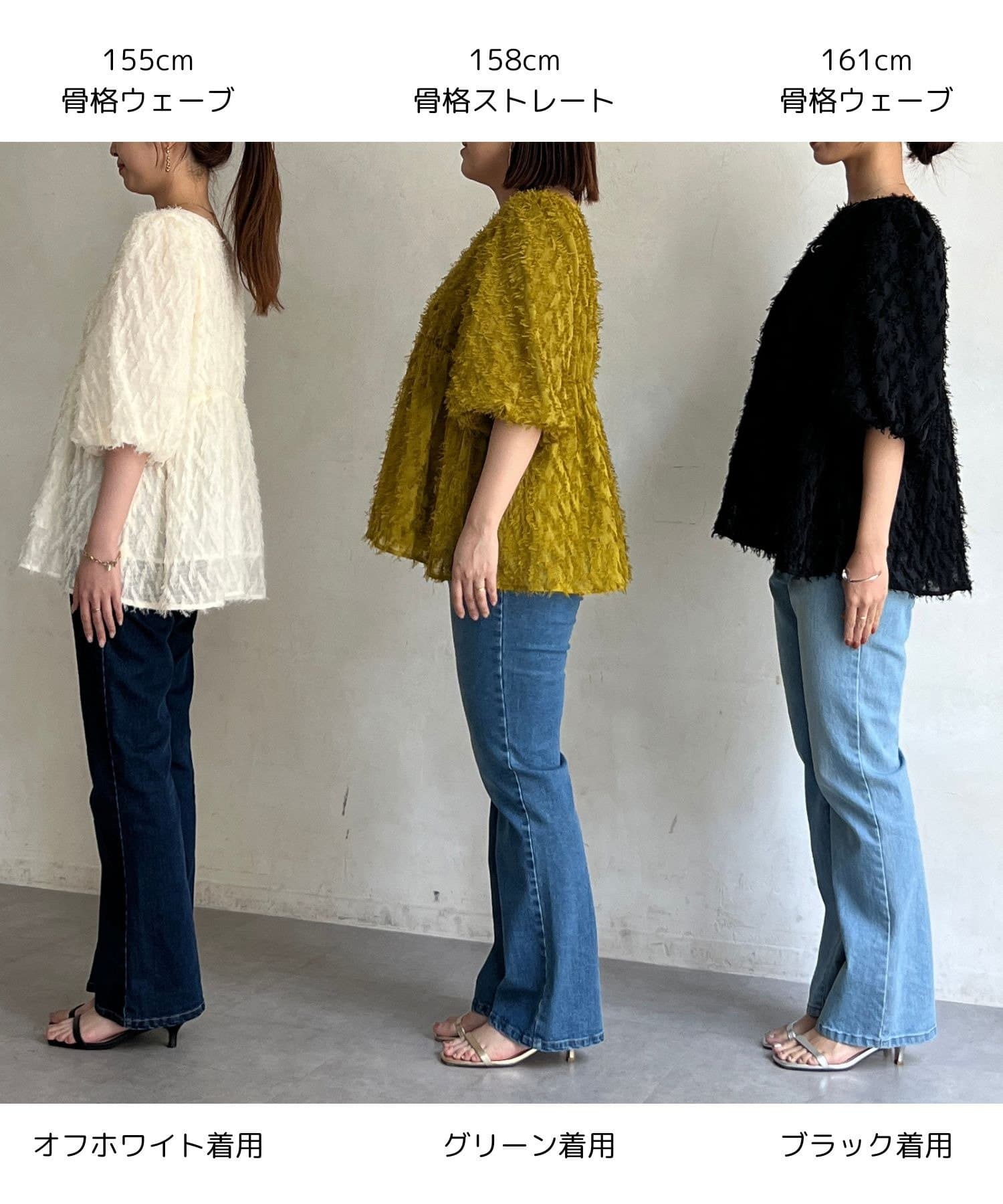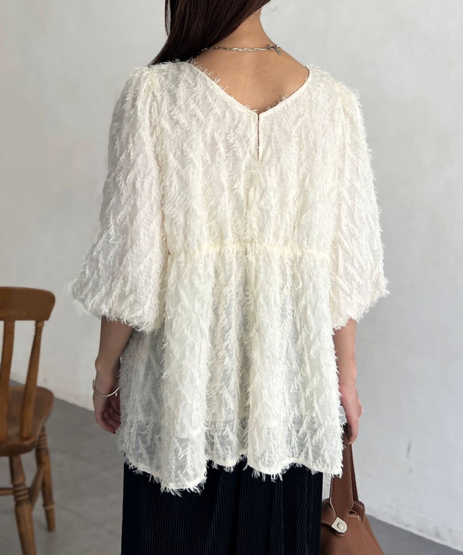 ほんのりシアー感があり、ペプラムデザインでスタイルアップ効果も◎