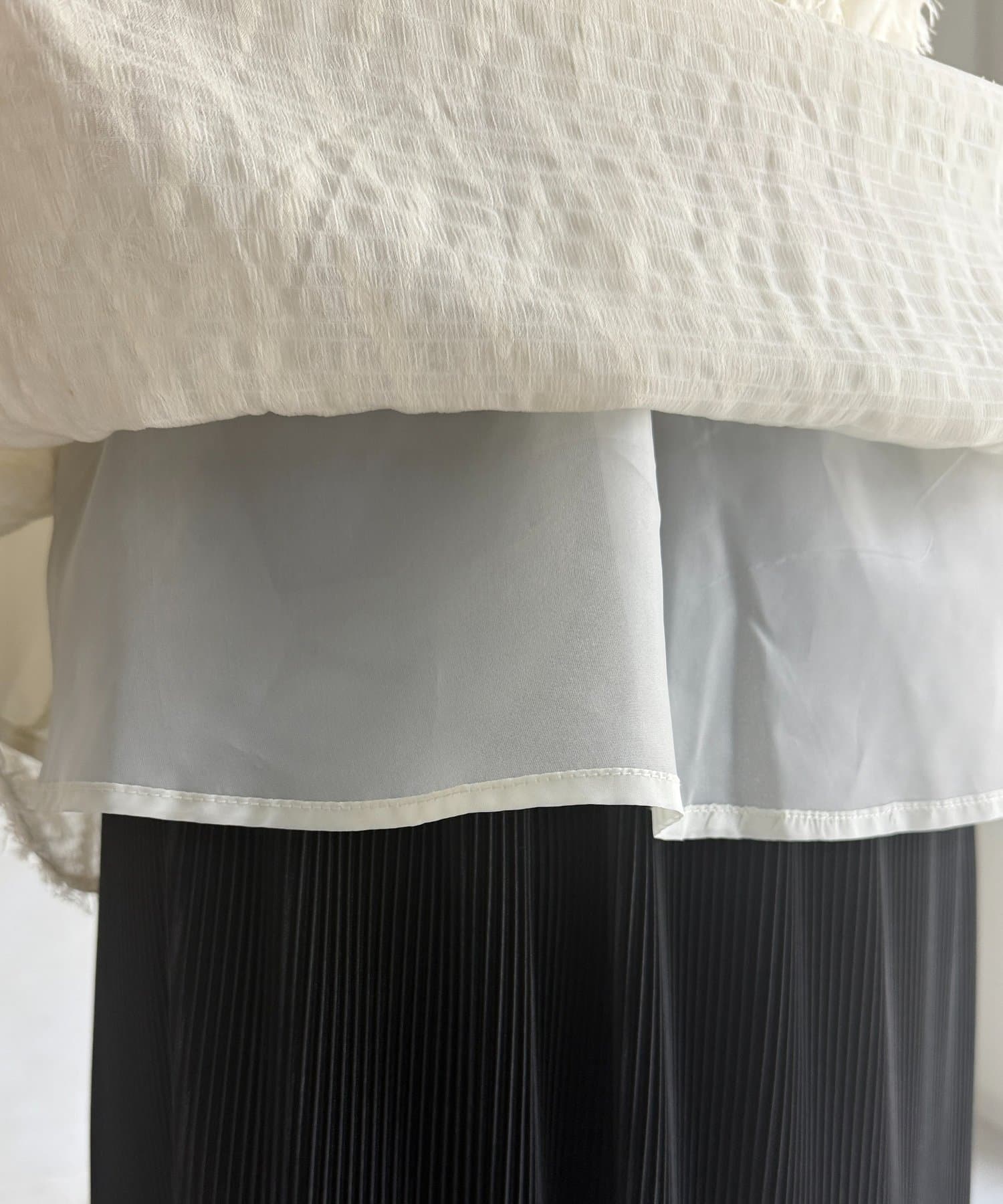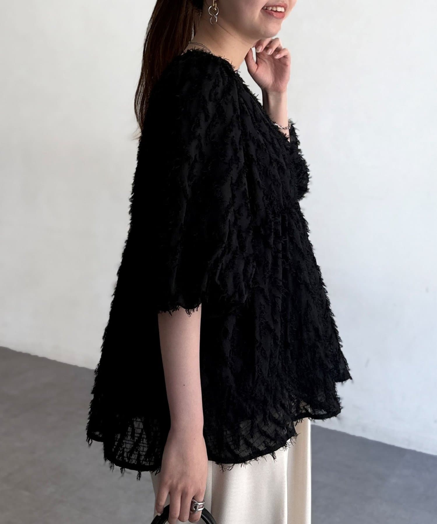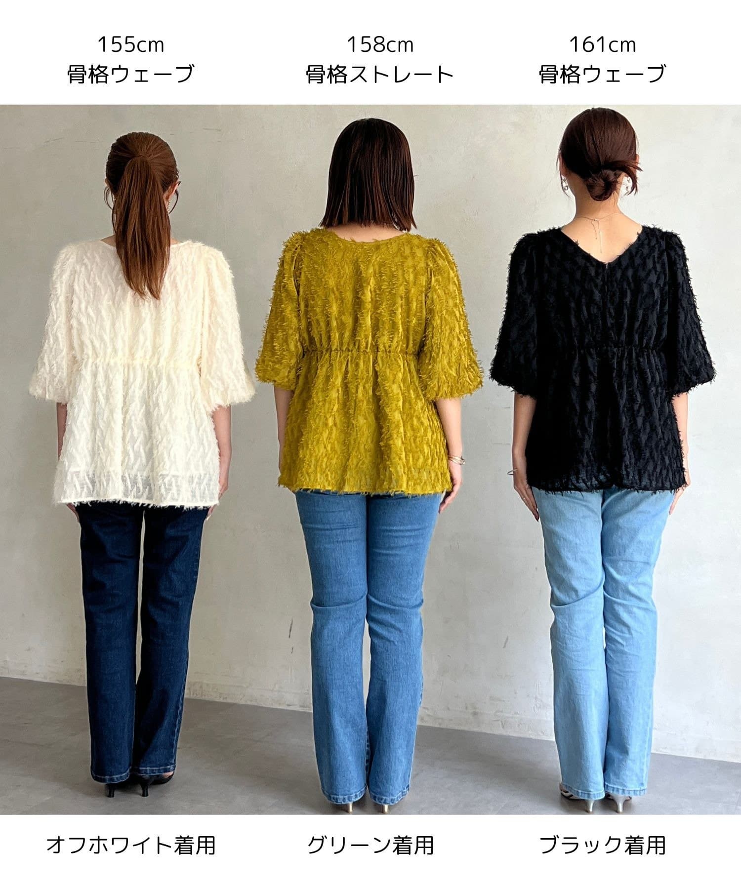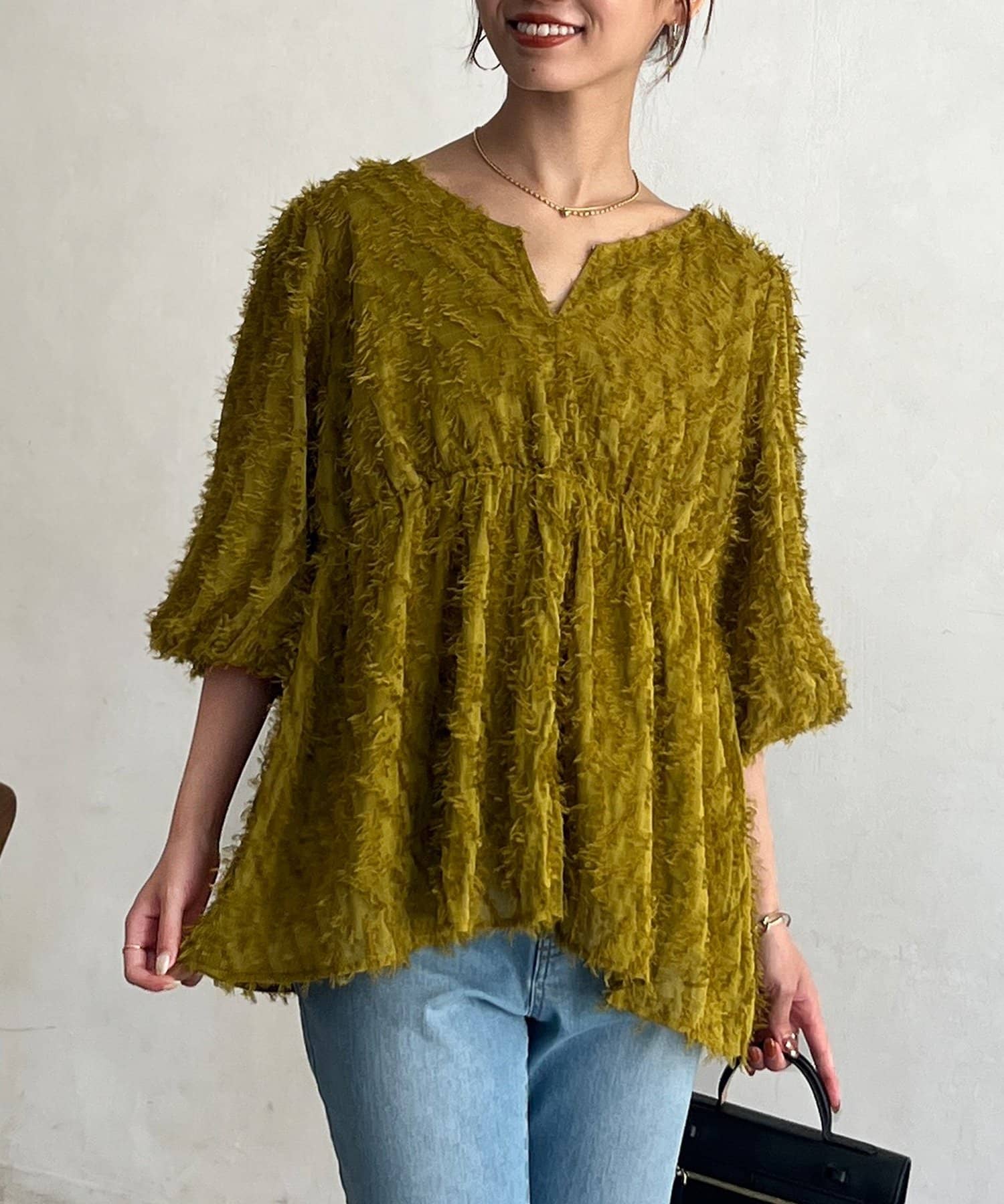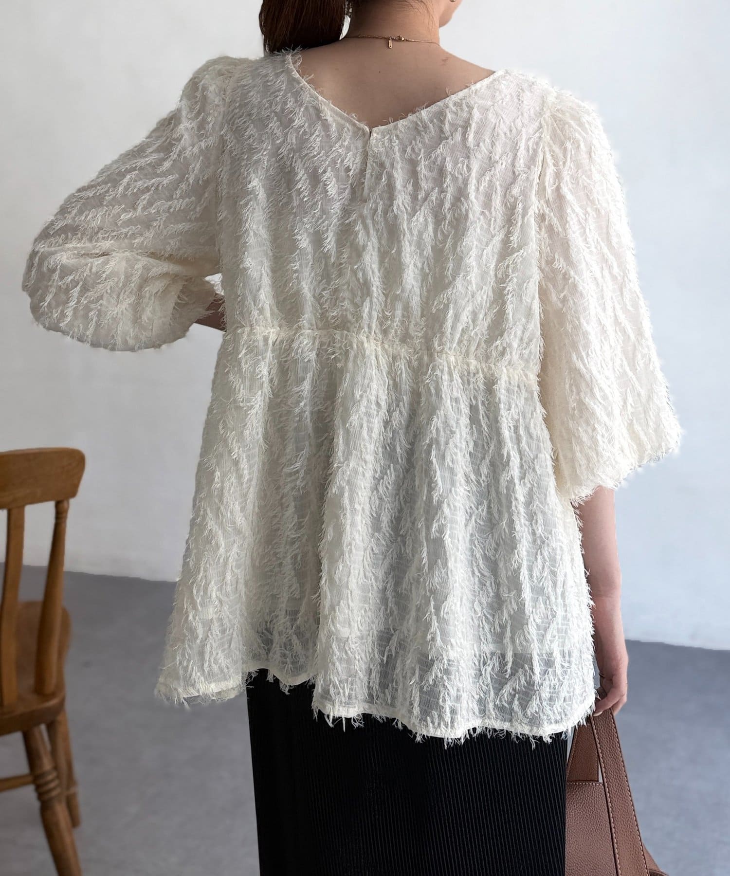 ほんのりシアー感があり、ペプラムデザインでスタイルアップ効果も◎