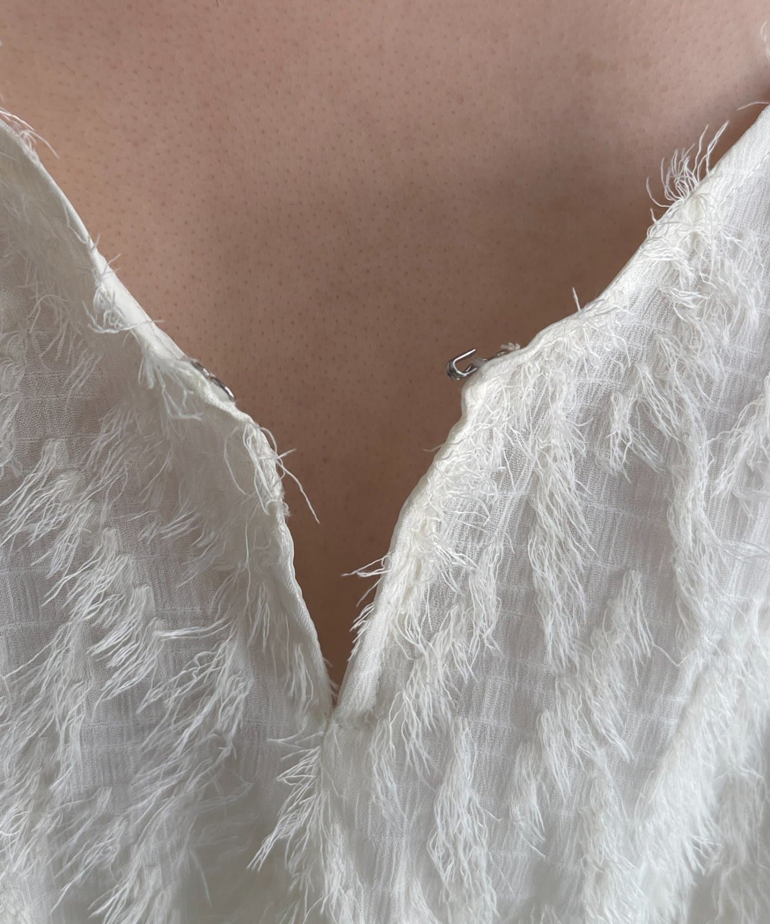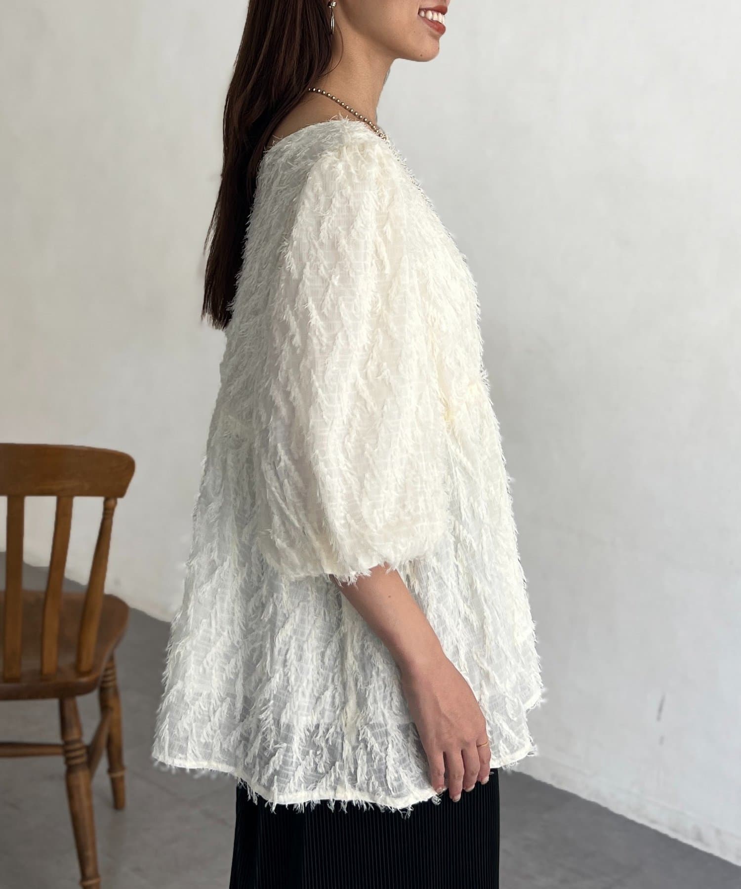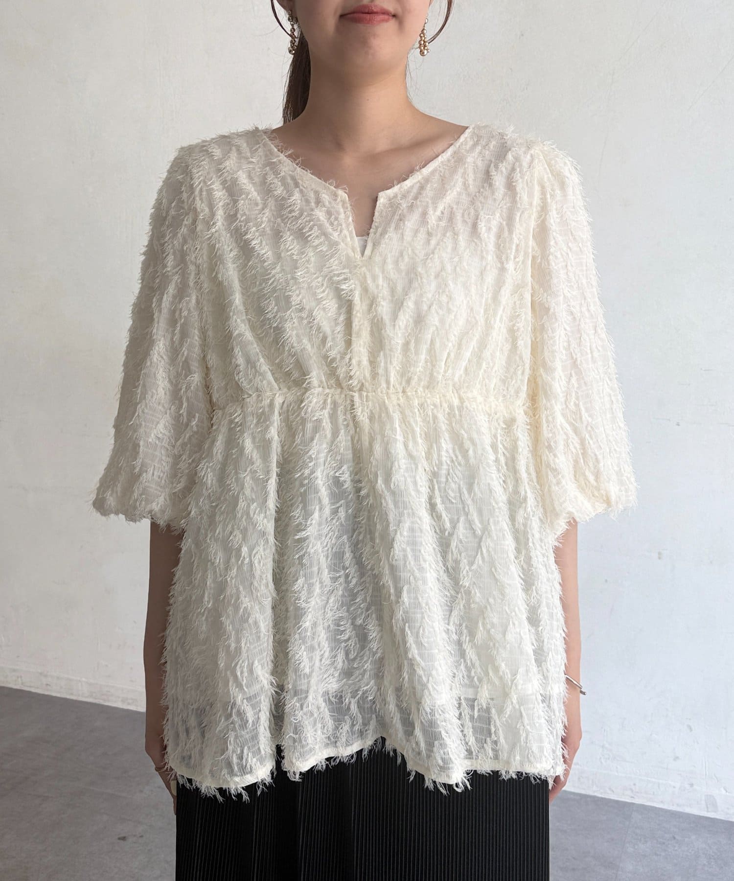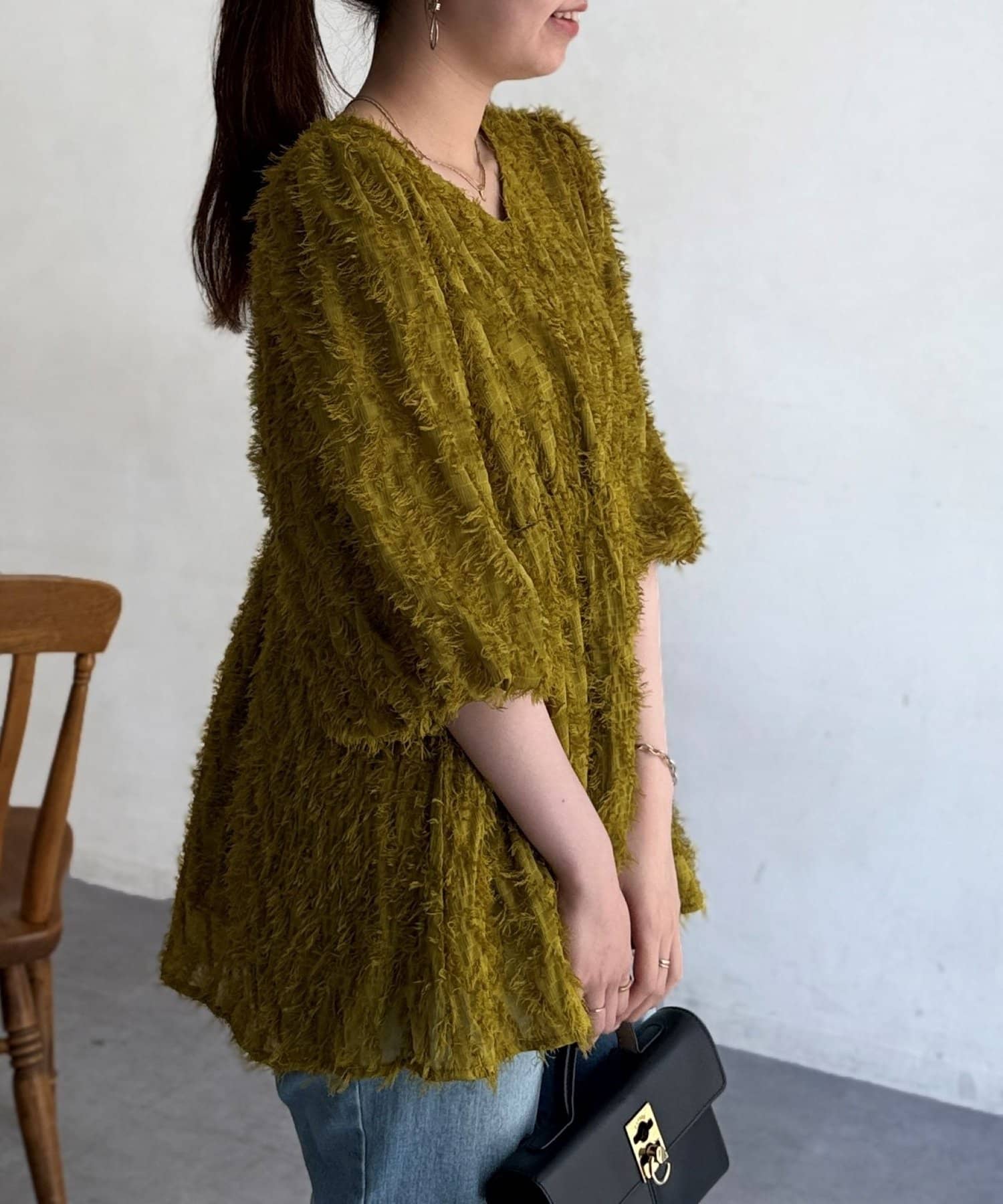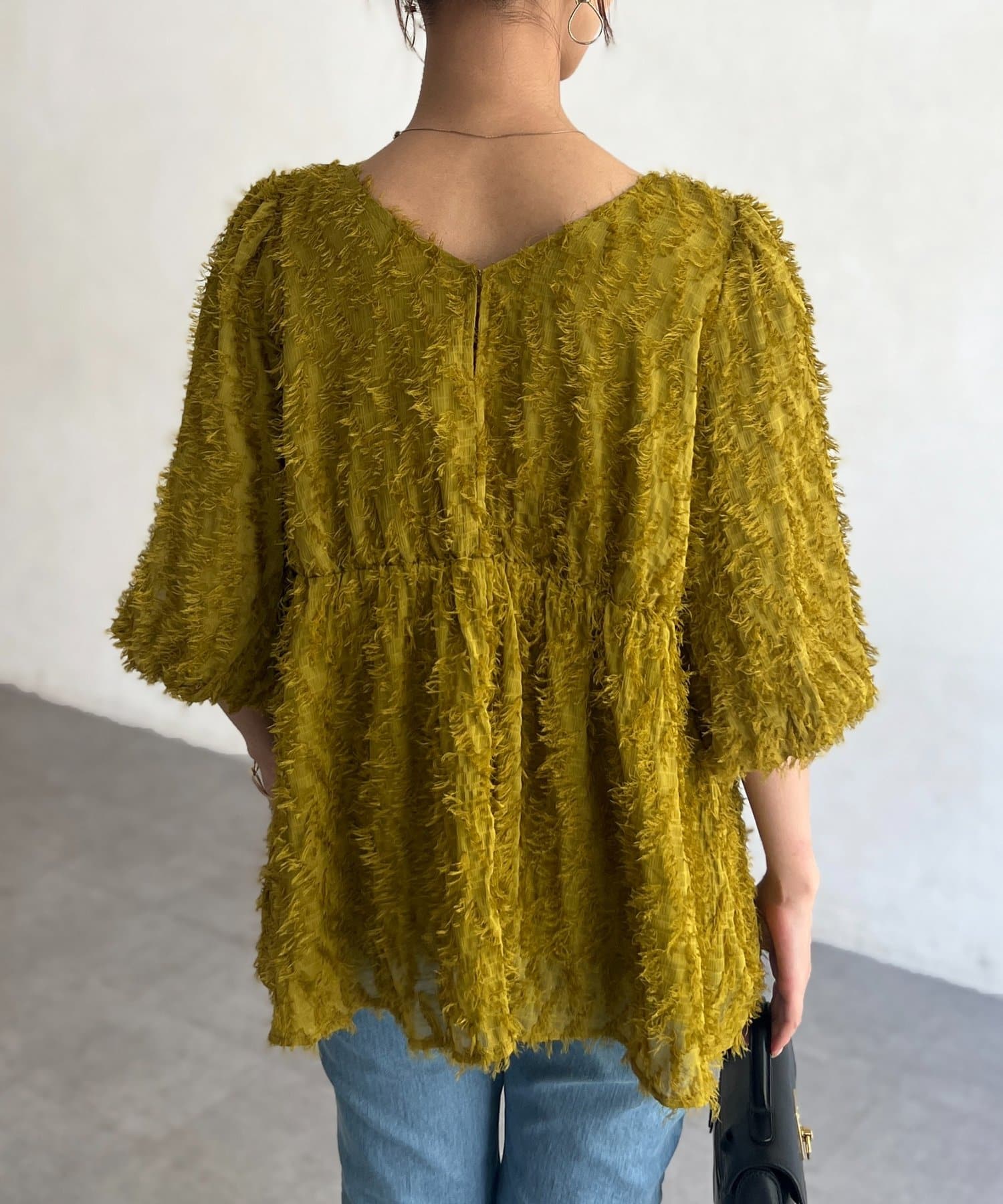 ほんのりシアー感があり、ペプラムデザインでスタイルアップ効果も◎