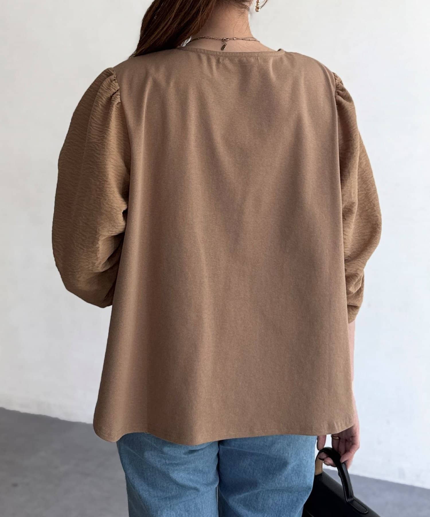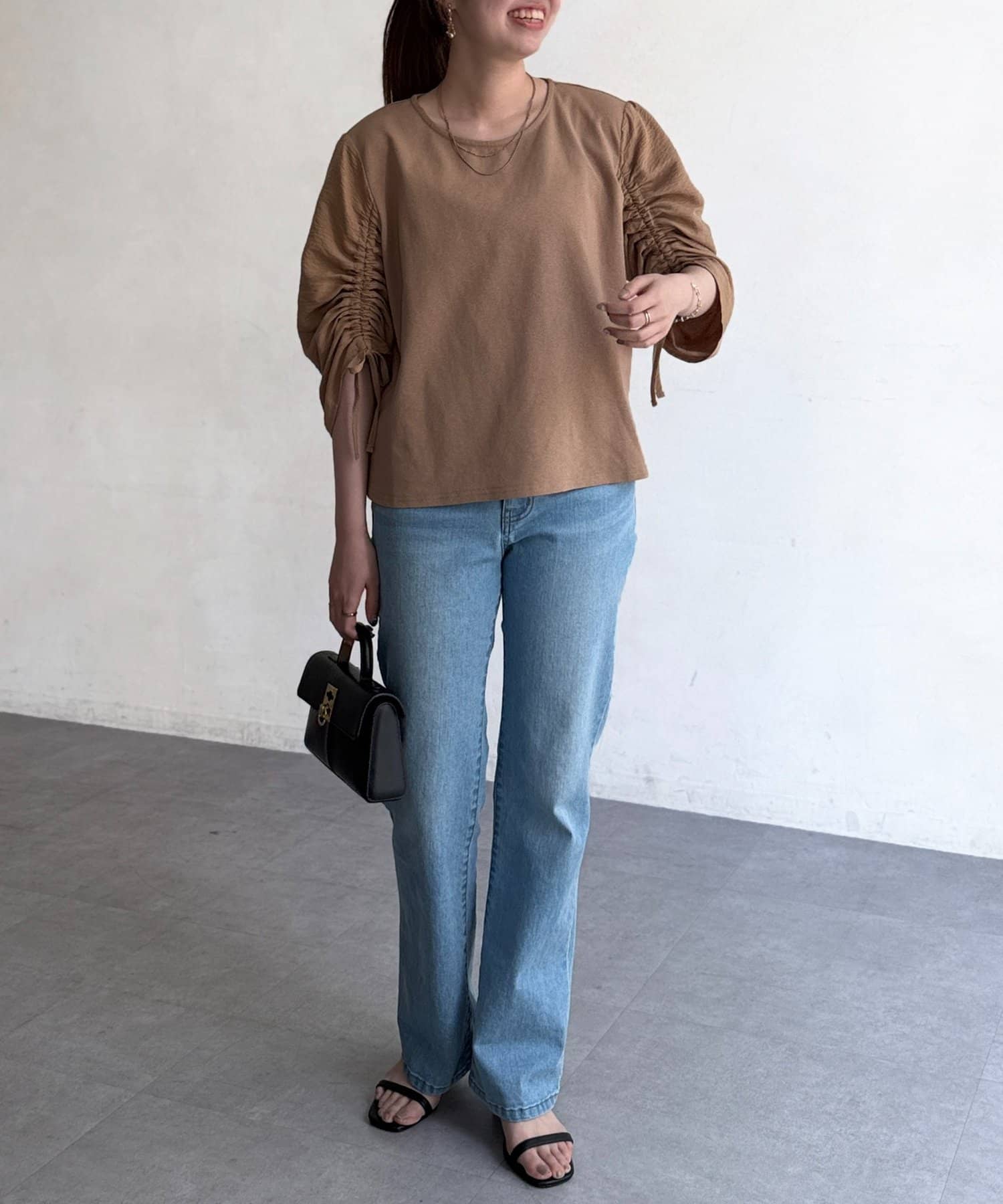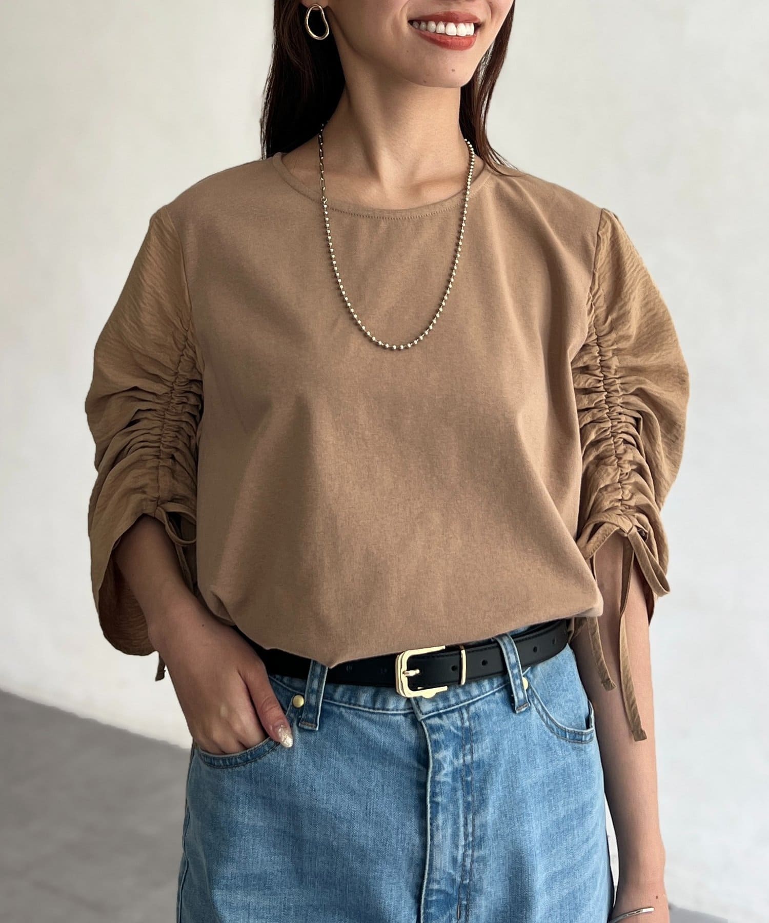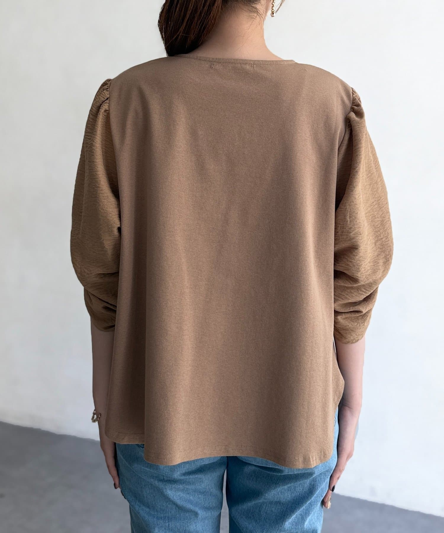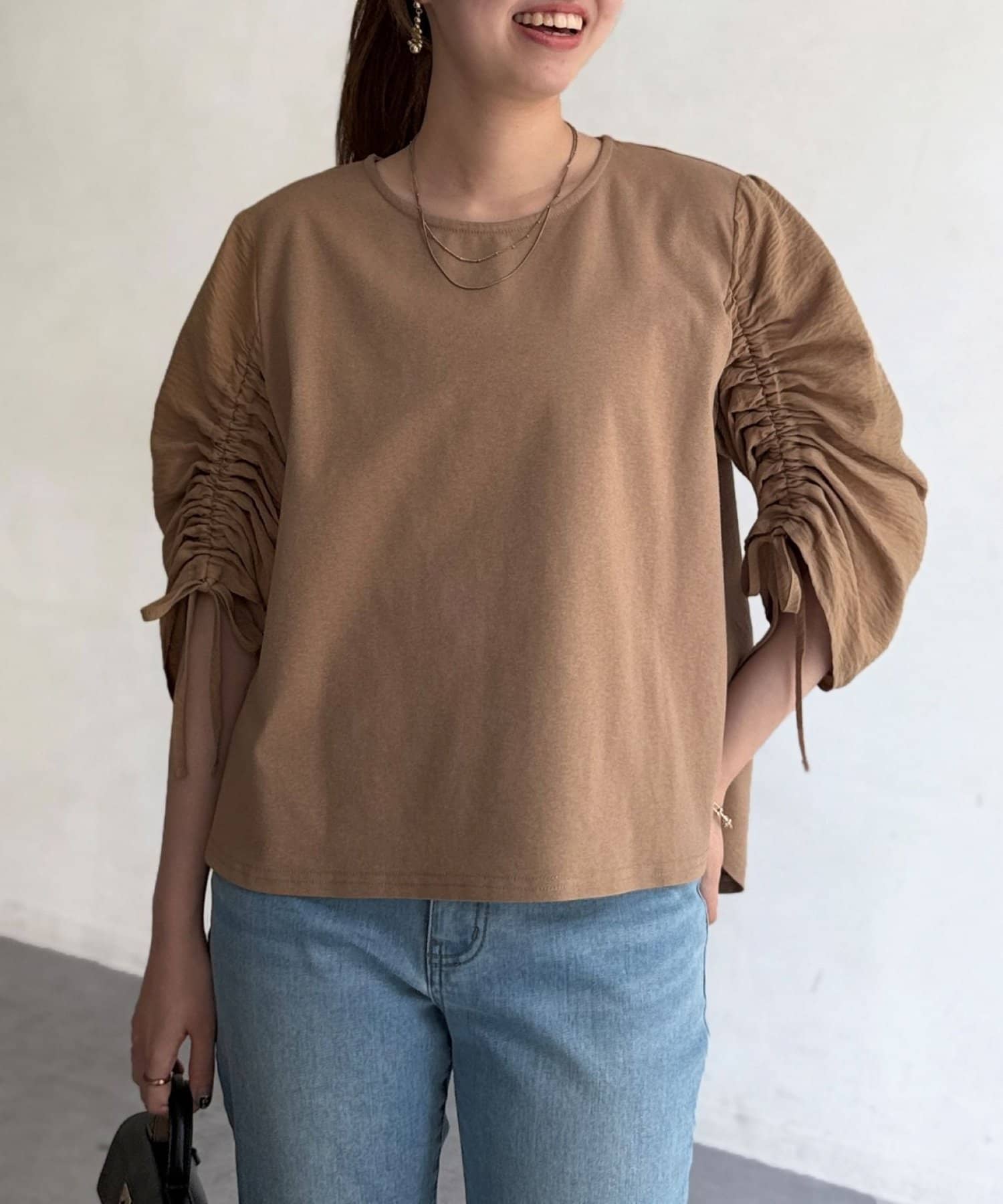 袖ギャザーがポイントのベーシックに使えるカットソー