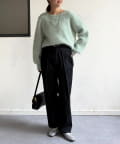 ふんわりとしたニットはシャープな素材を組み合わせると◎