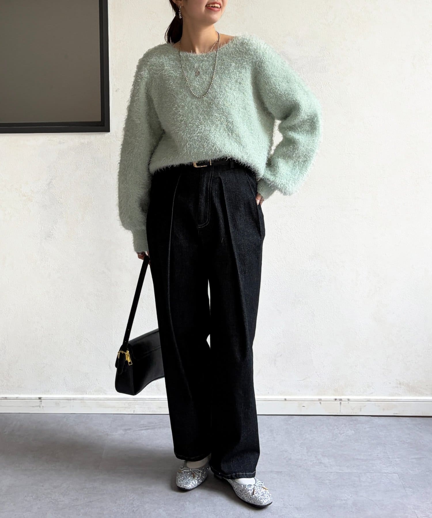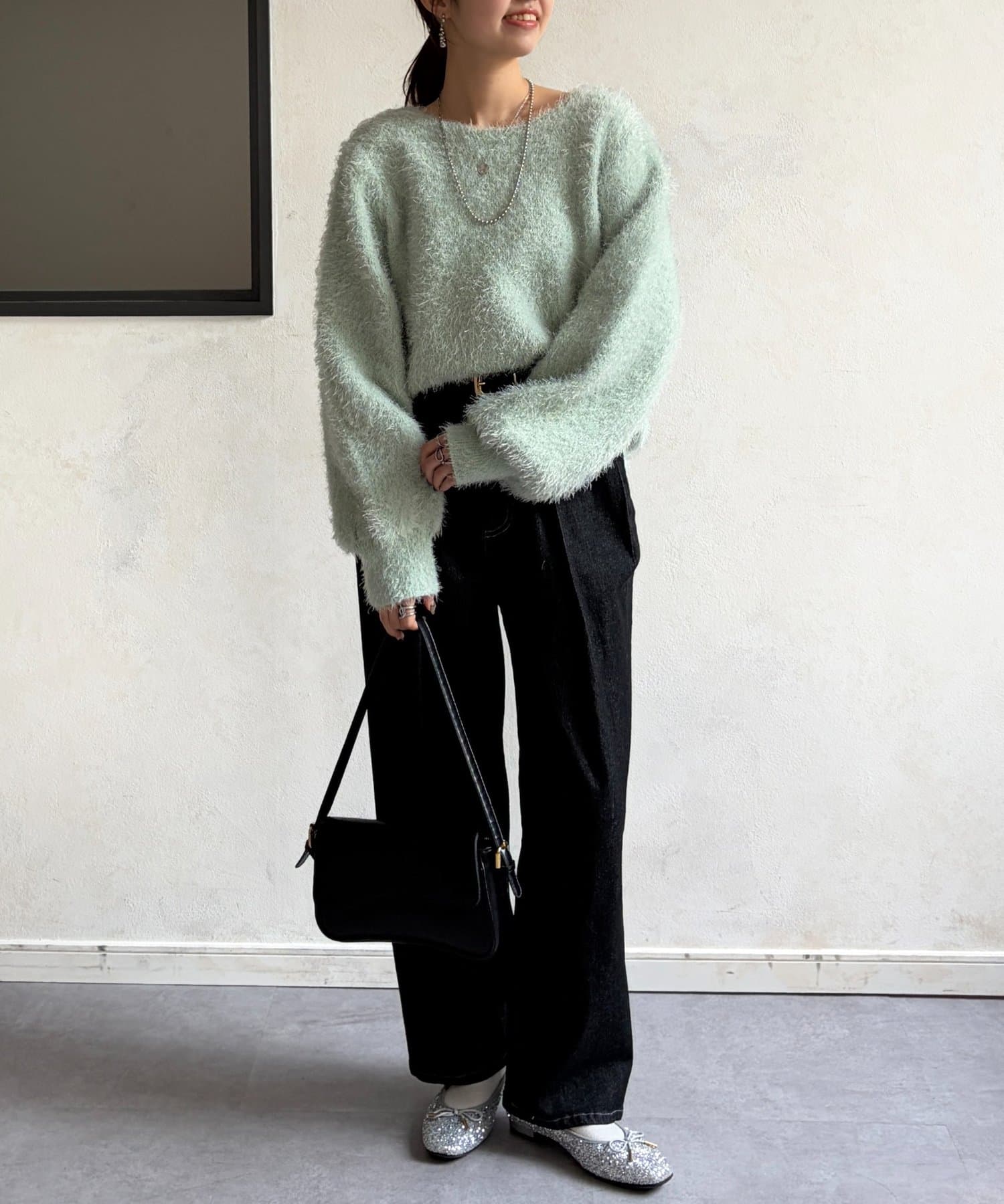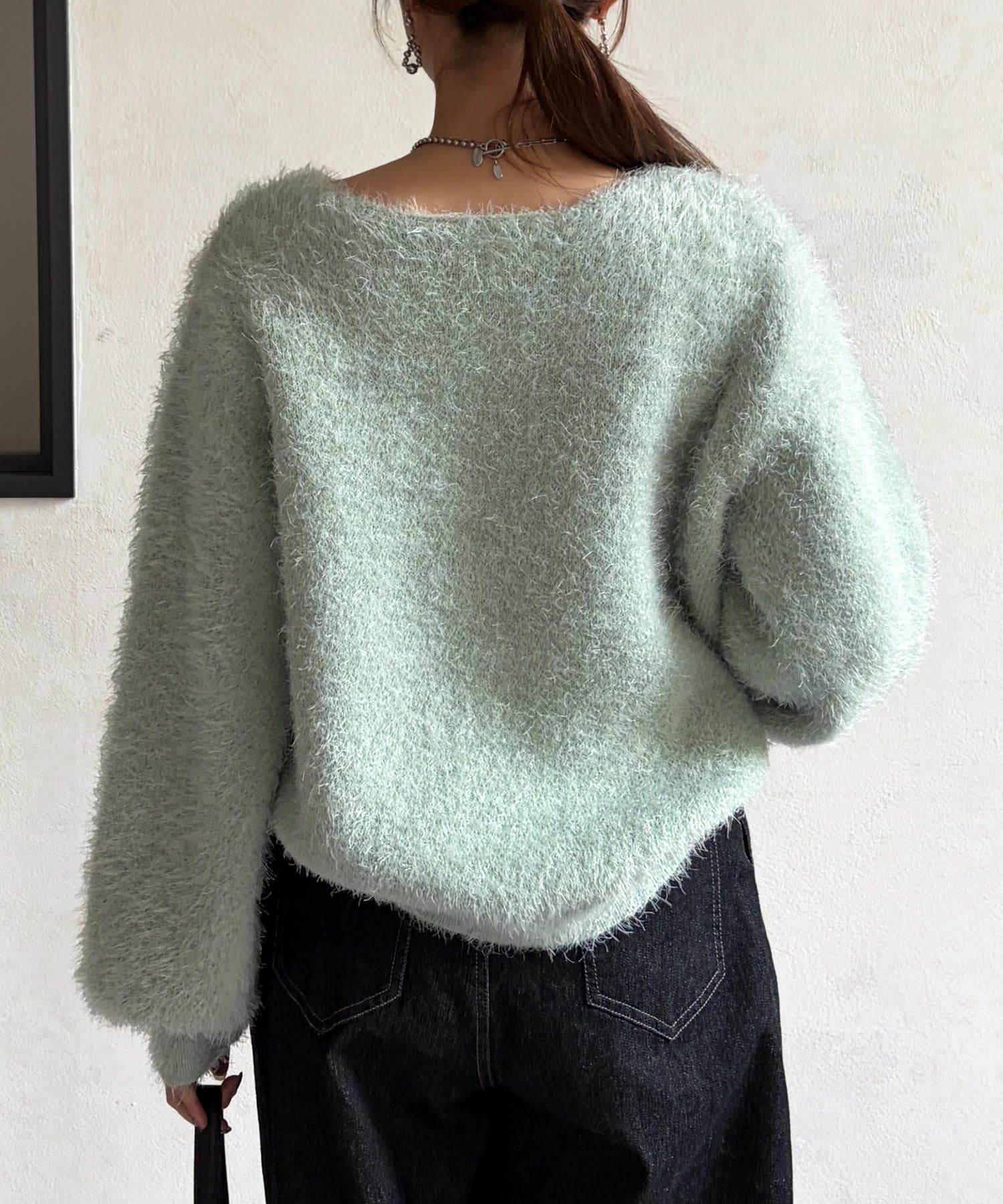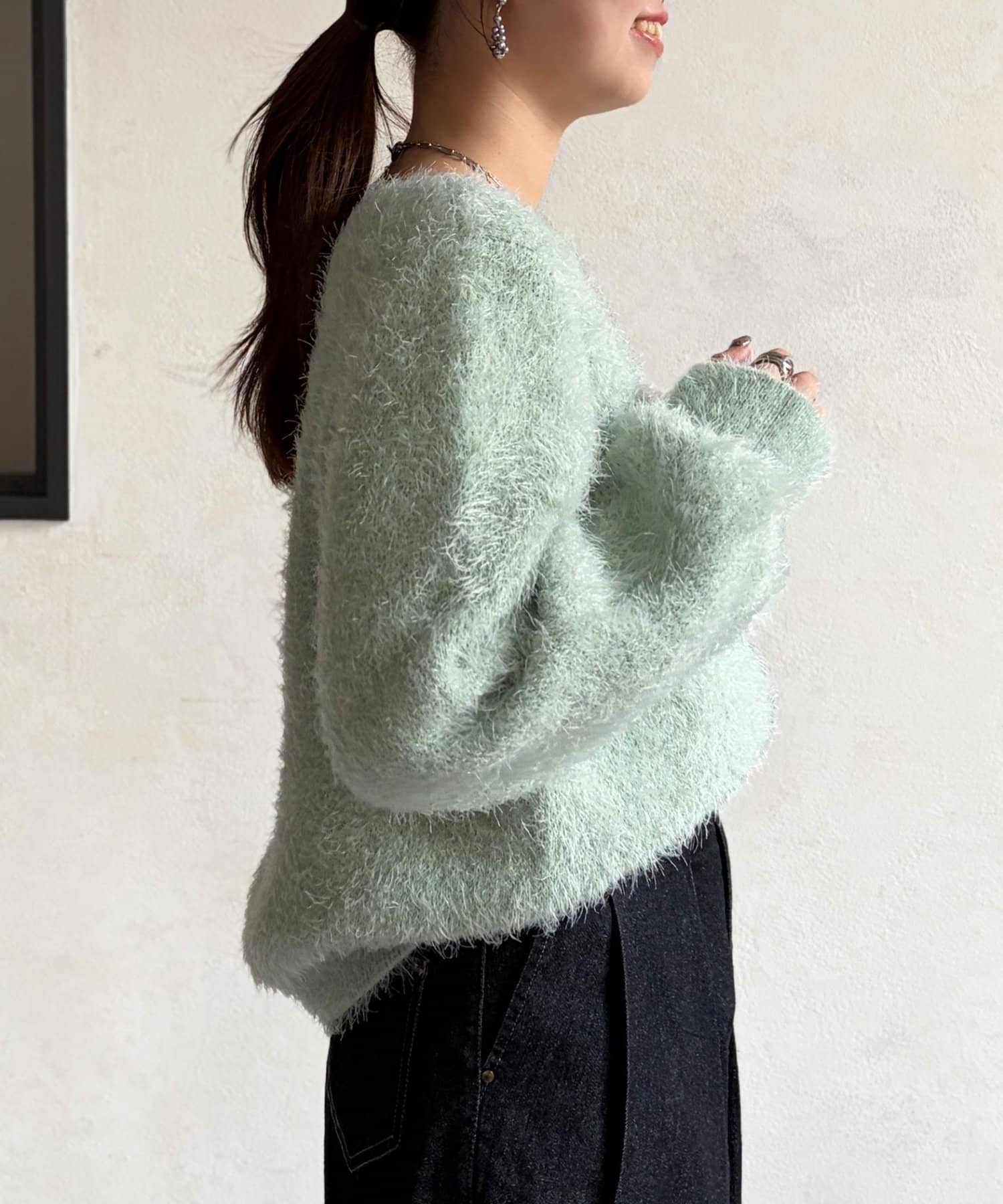 毛足の長いシャギーニットは抑えておきたい注目のアイテム。