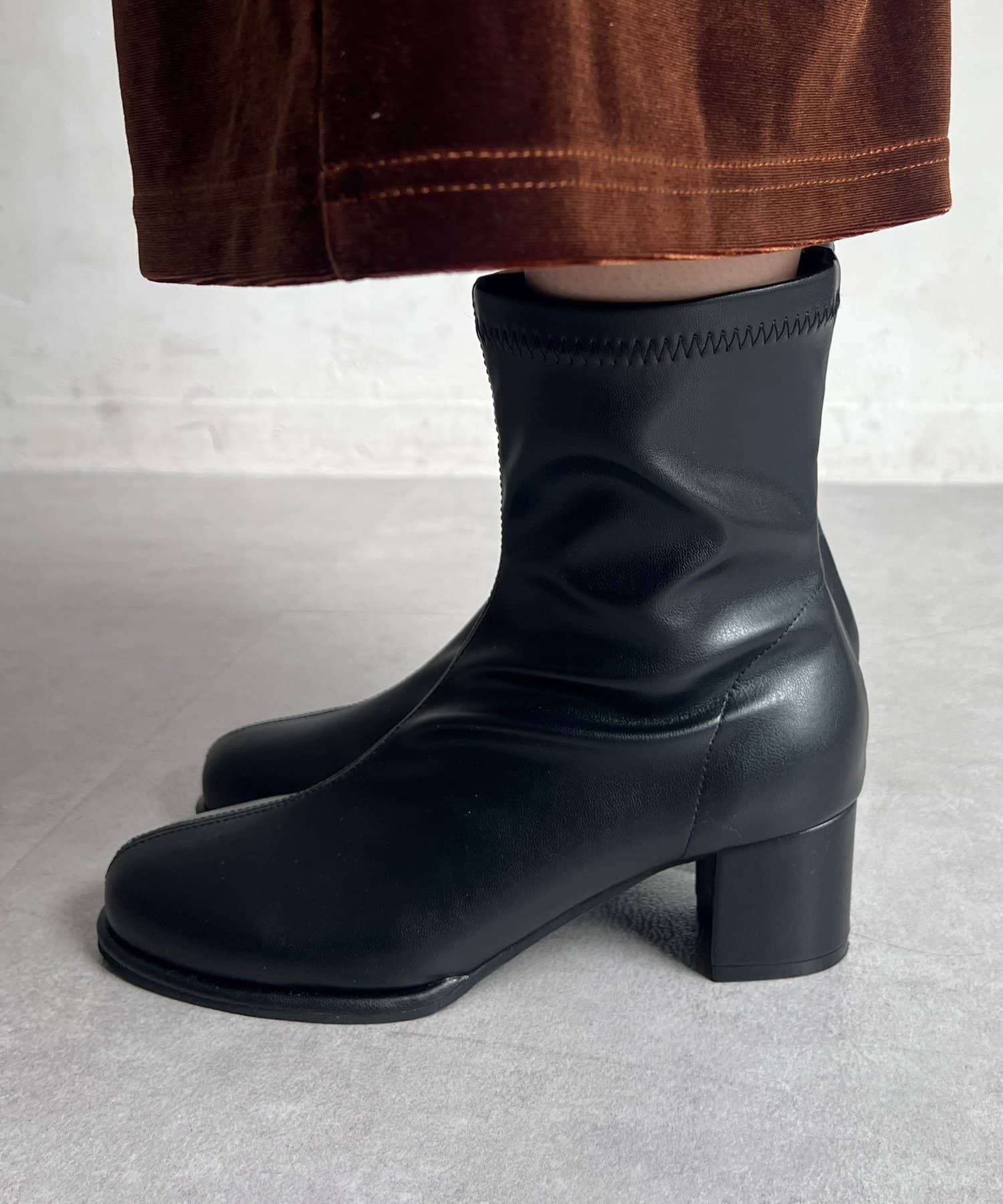 スッキリとしたシルエットのスクエアトゥが、女性らしさを引き立ててくれます。