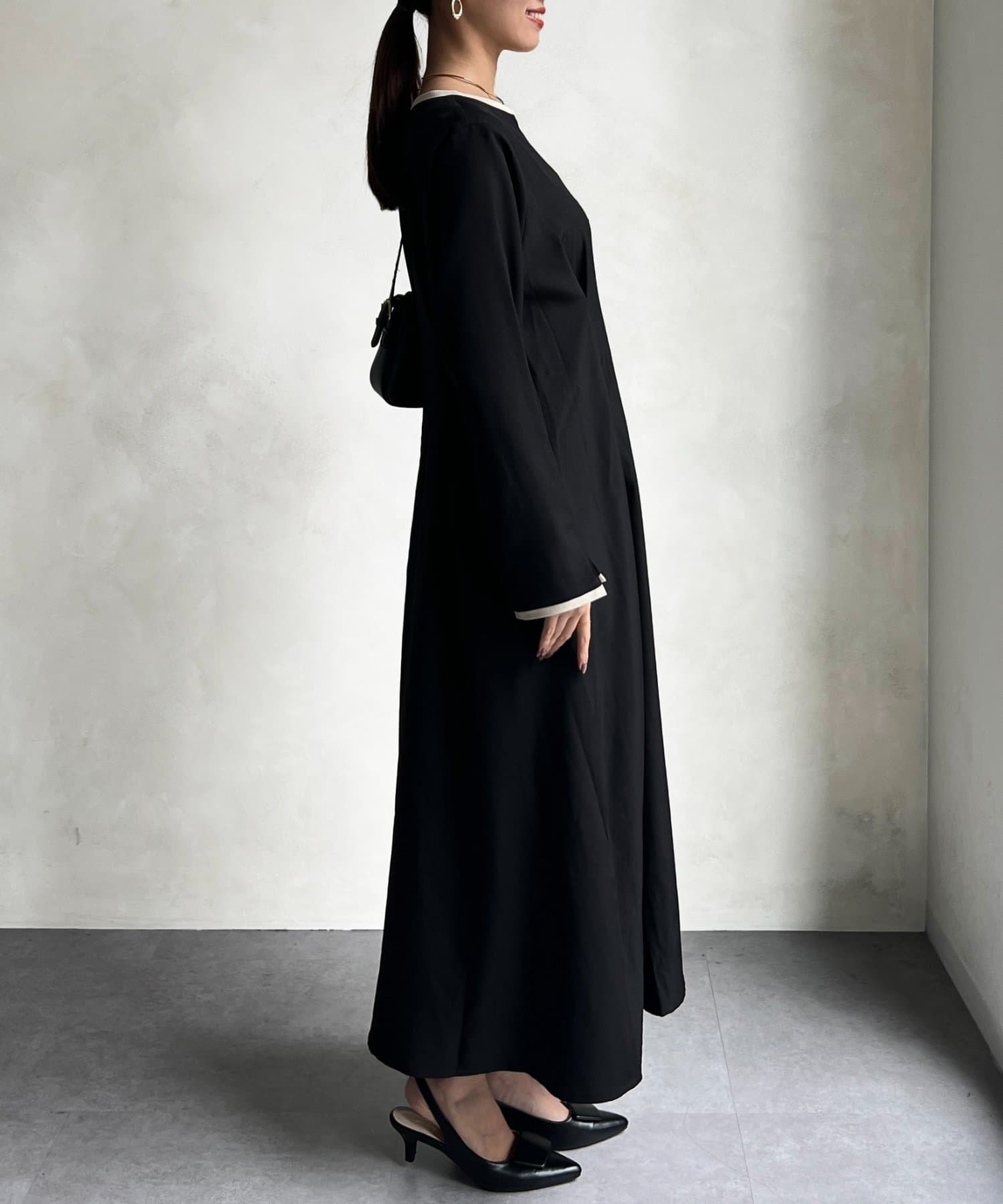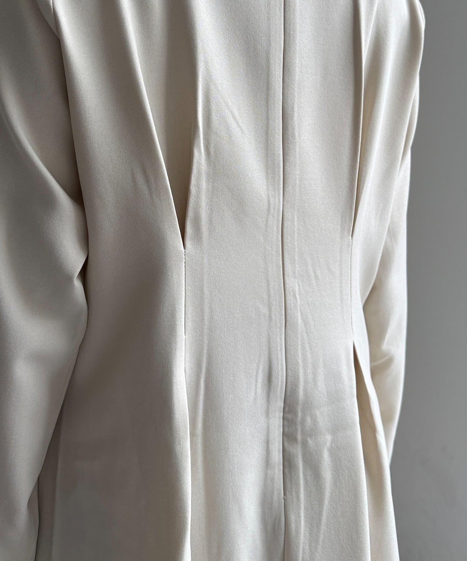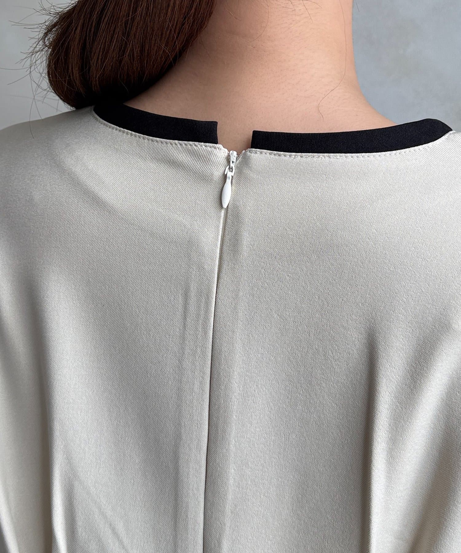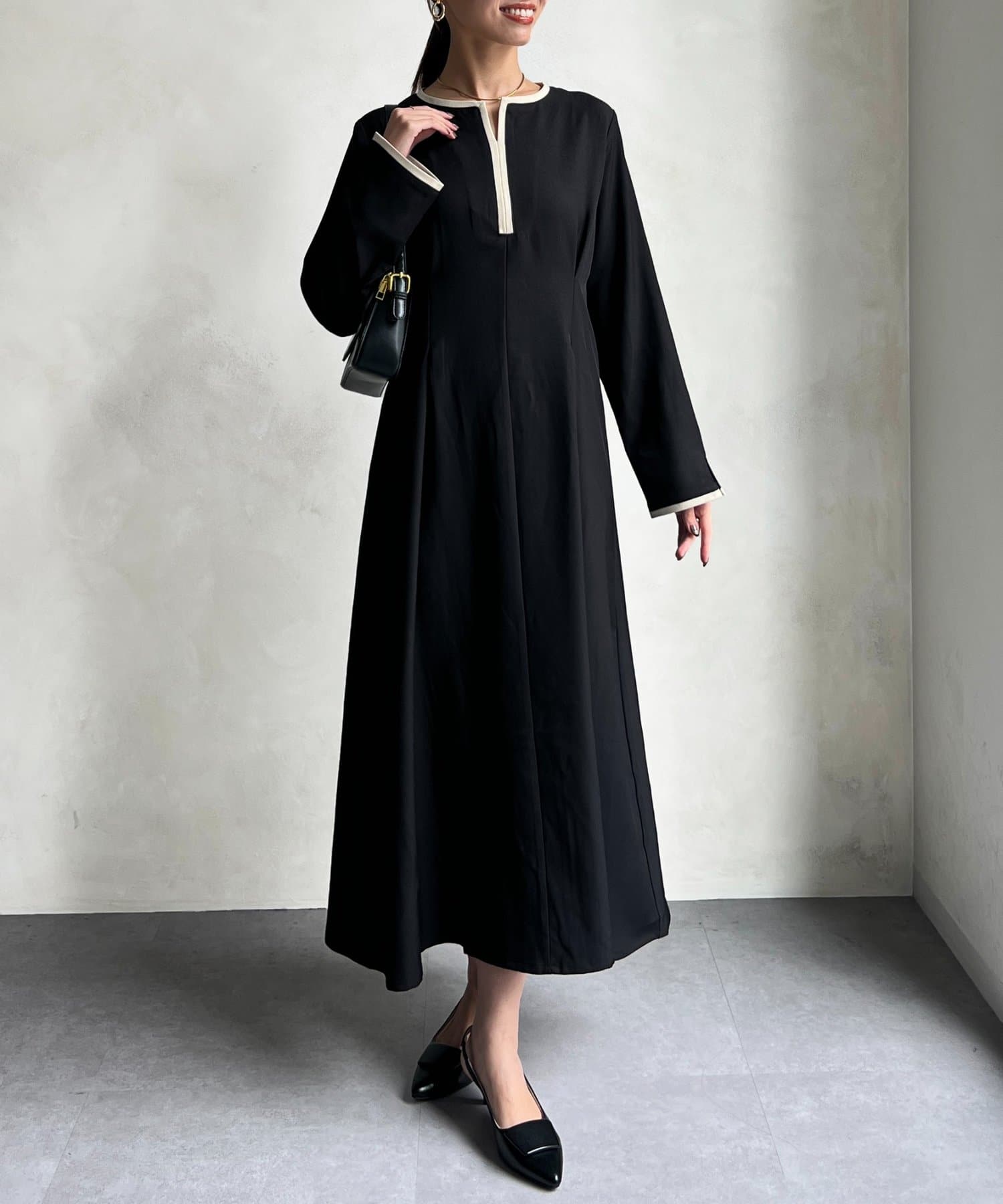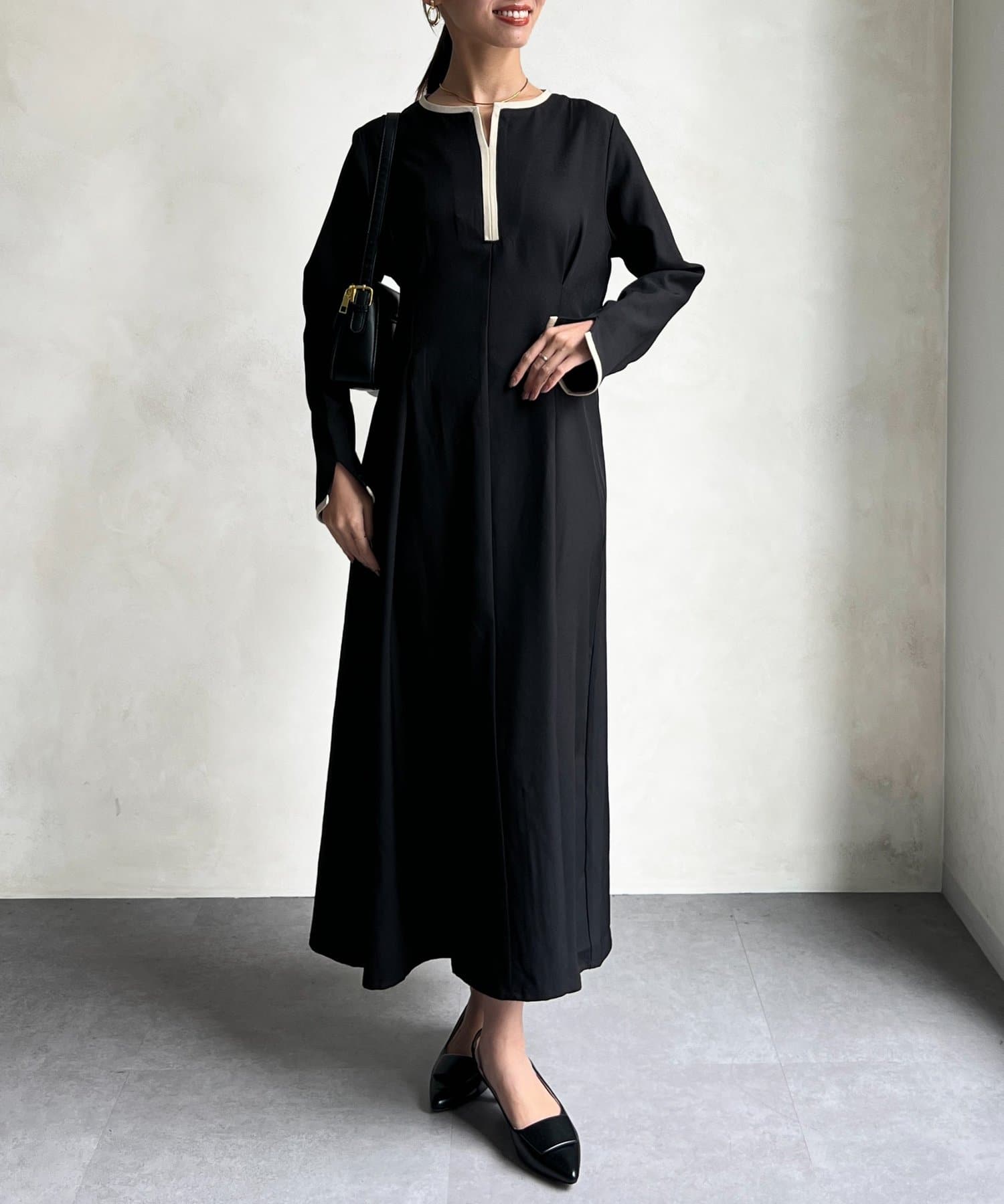 首回りや袖口、切り替え部分に施されたパイピングがコーディネートに華やかな印象を与えてくれます。