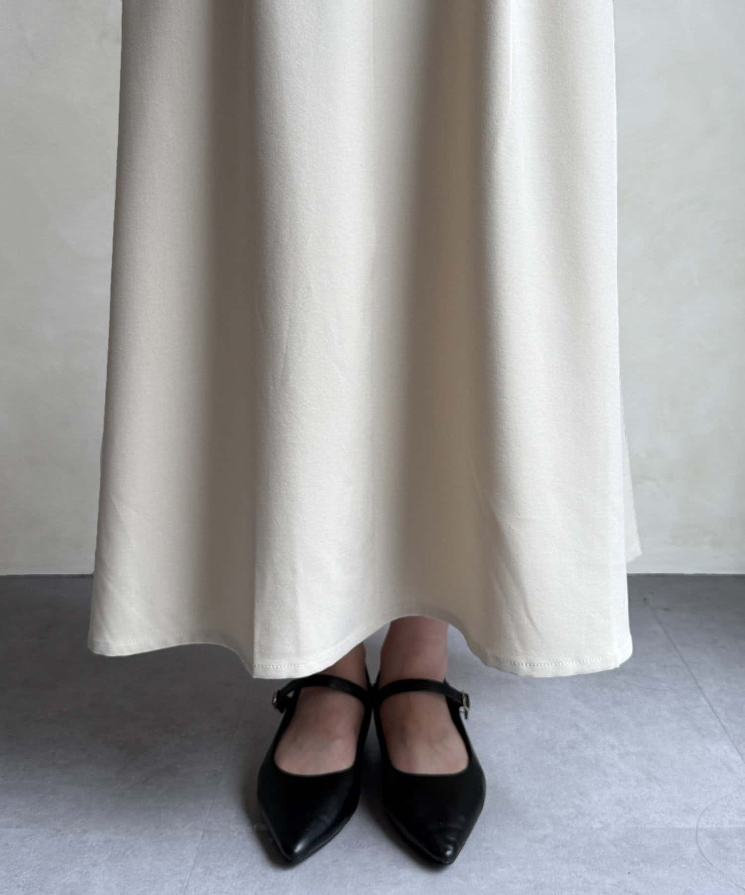 裾に向かって広がりの出るシルエットで、ウエスト部分のタックが大人ガーリーな雰囲気を醸し出してくれます。