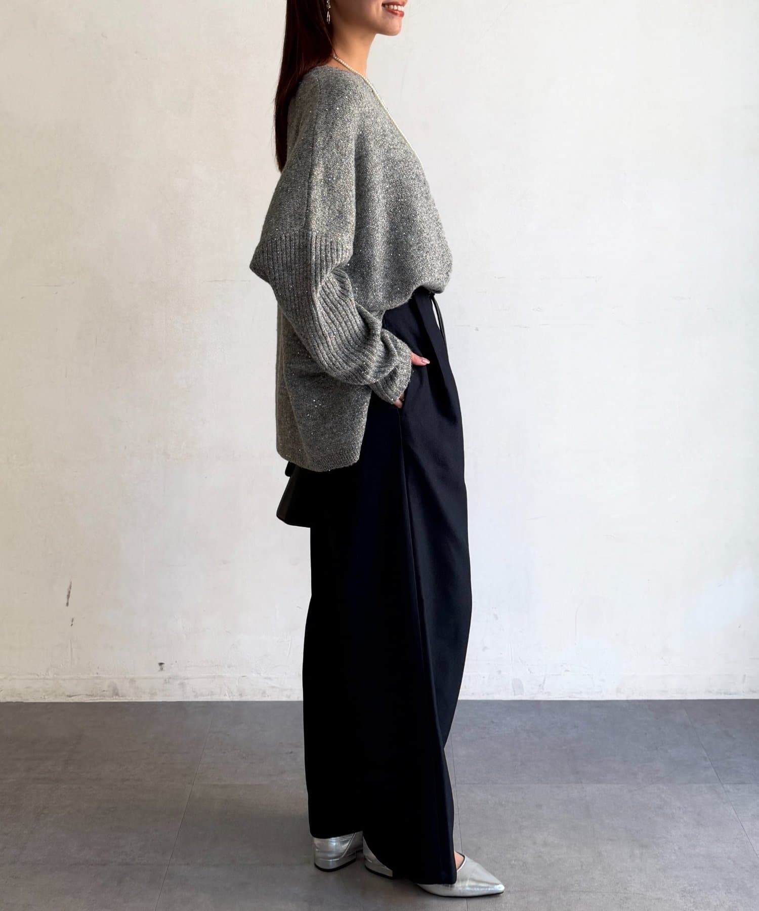 暖かみのあるウール混のニットにスパンコールをかけ合わせることで、新鮮味あふれる印象のニットに仕上がりました。