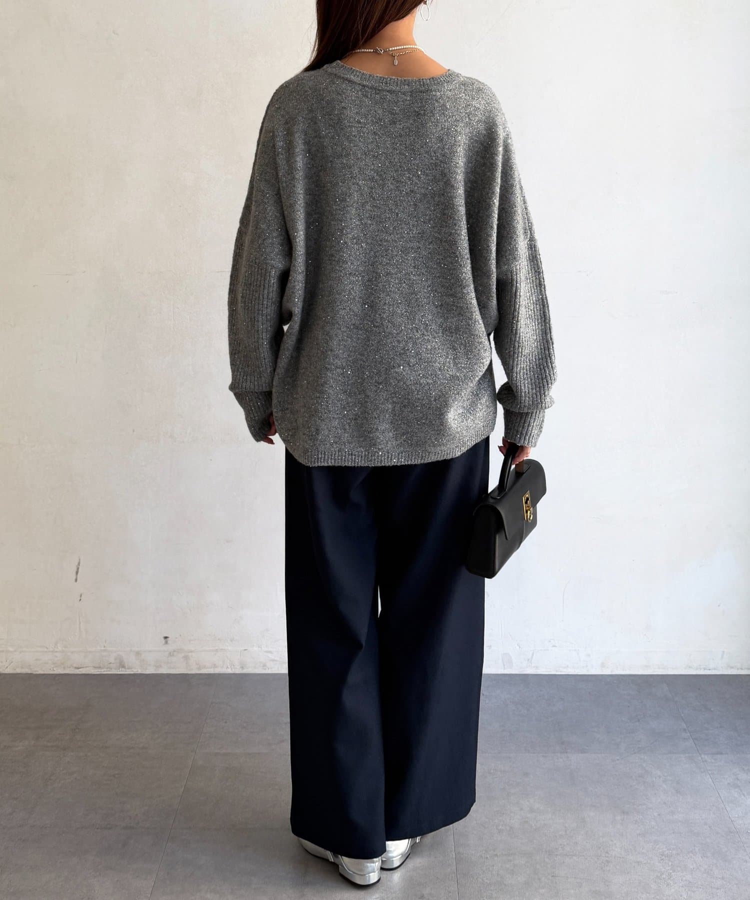 スパンコールがコーデのアクセントになったニット