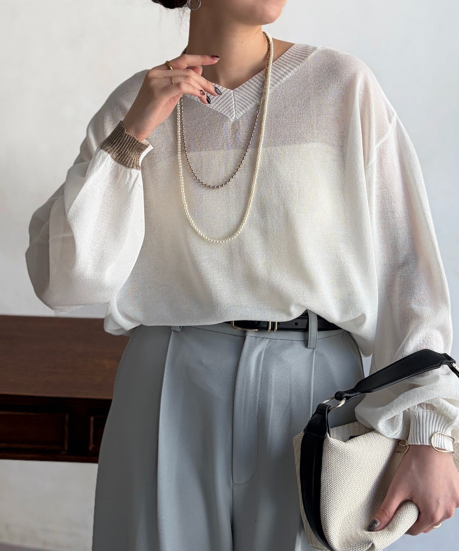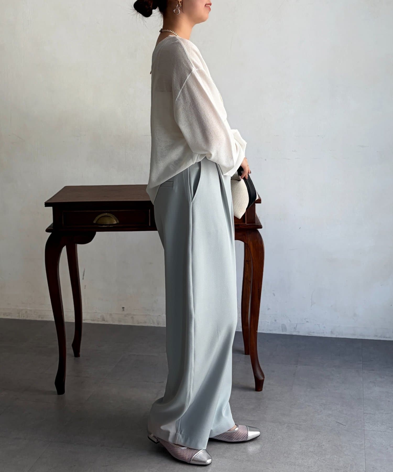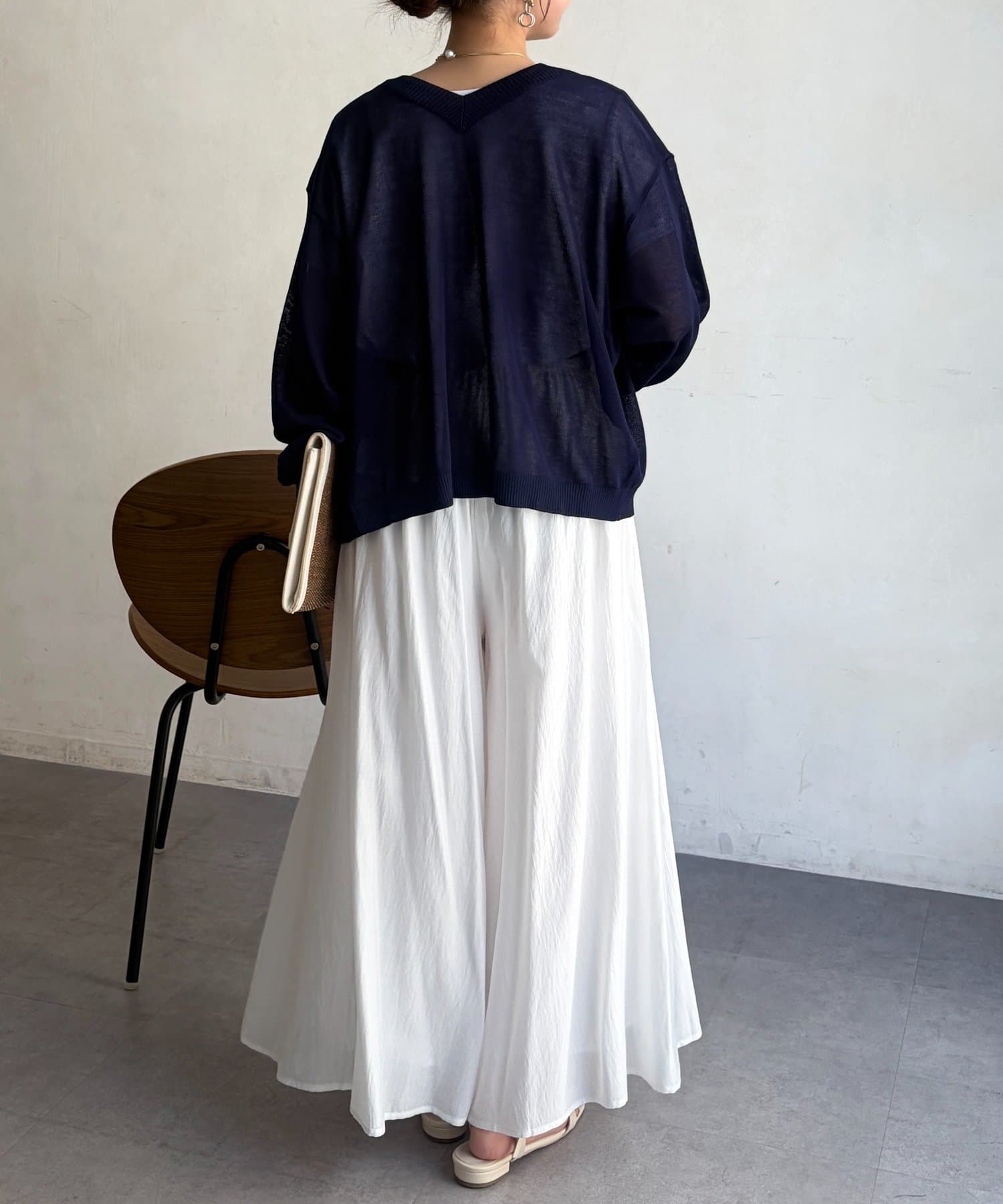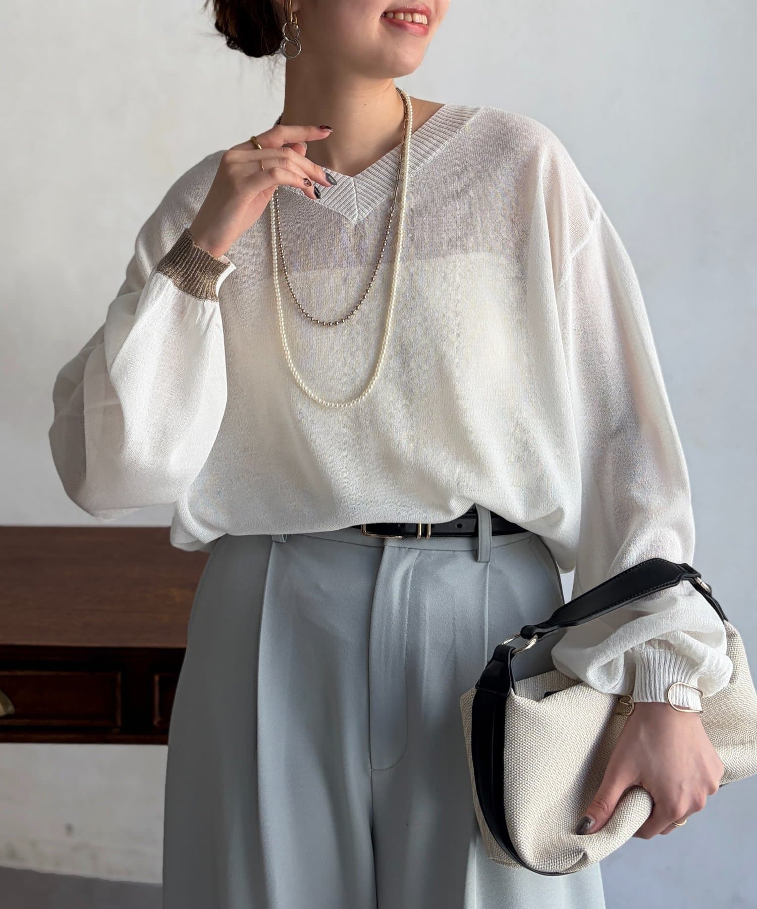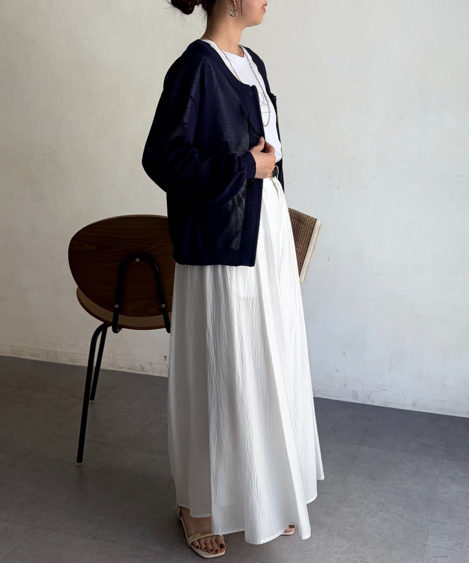 カジュアルなデニムや、きれい目なナロースカートなど様々なボトムスと合わせていただけます。