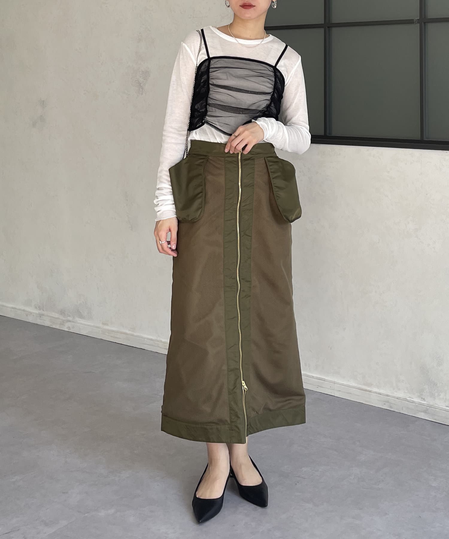 #ジップ #ナロースカート #Iラインスカート