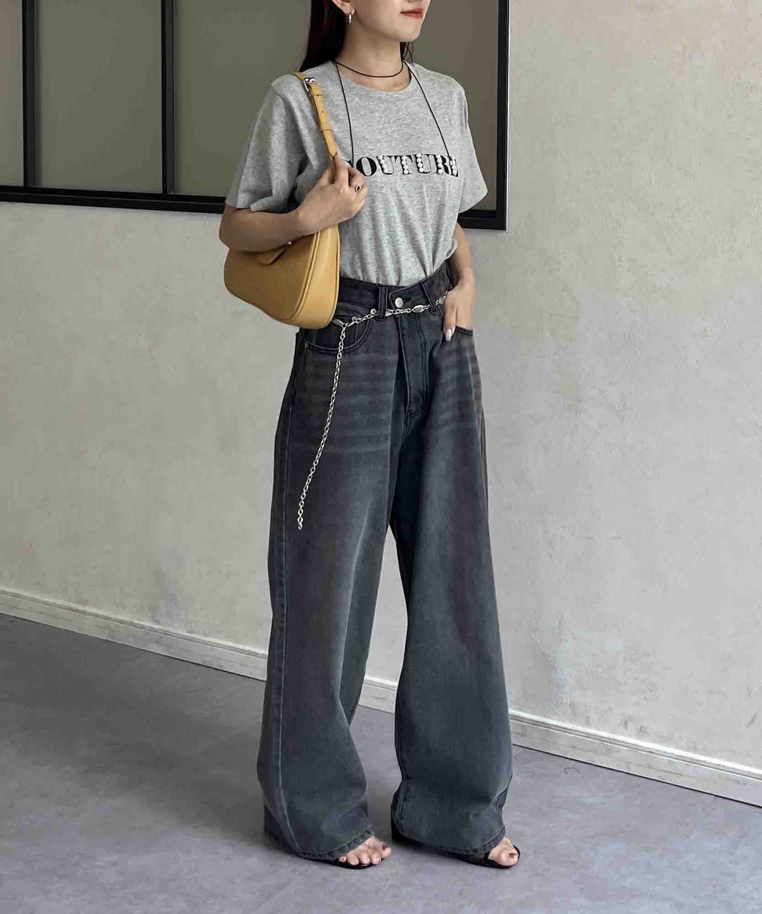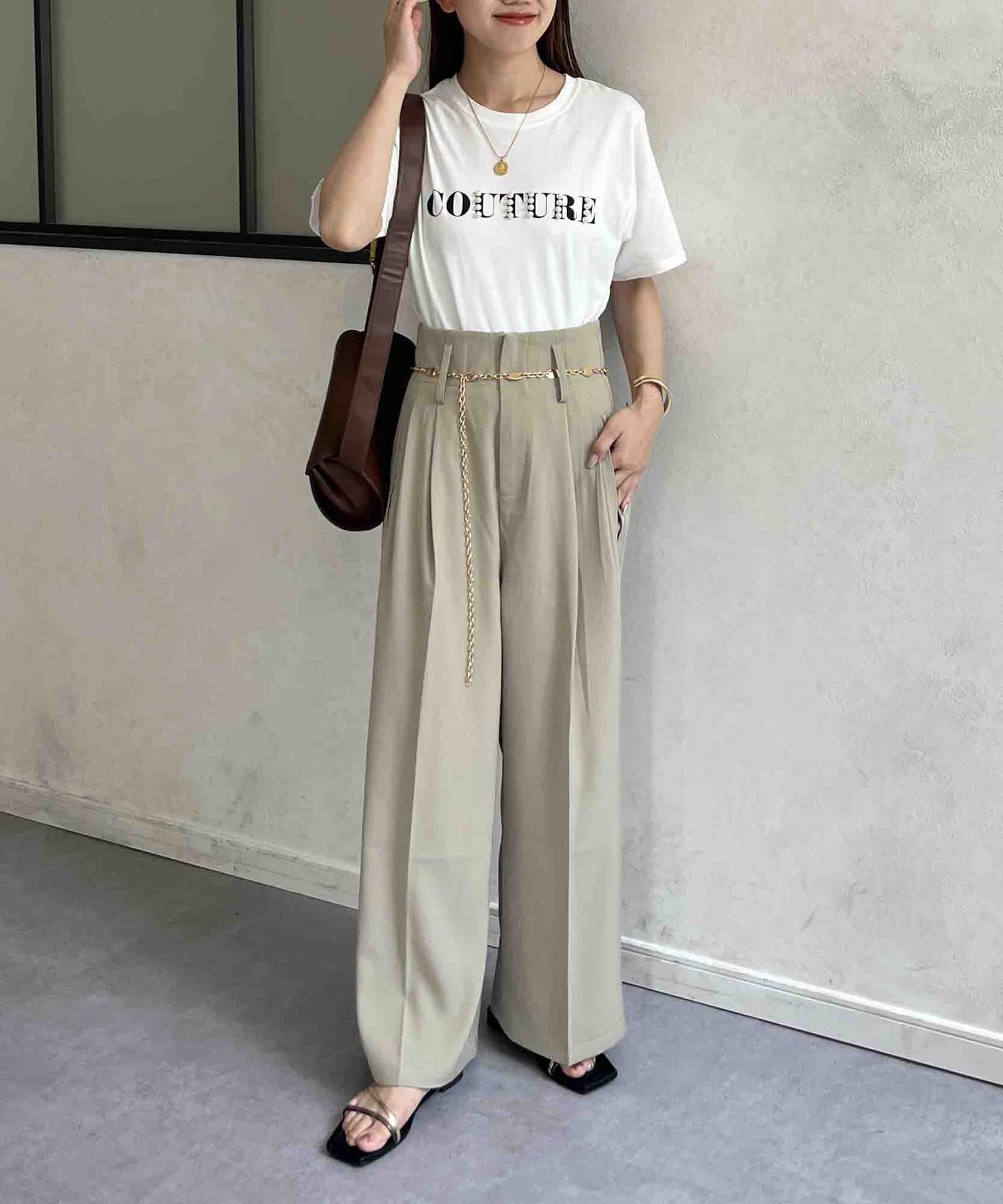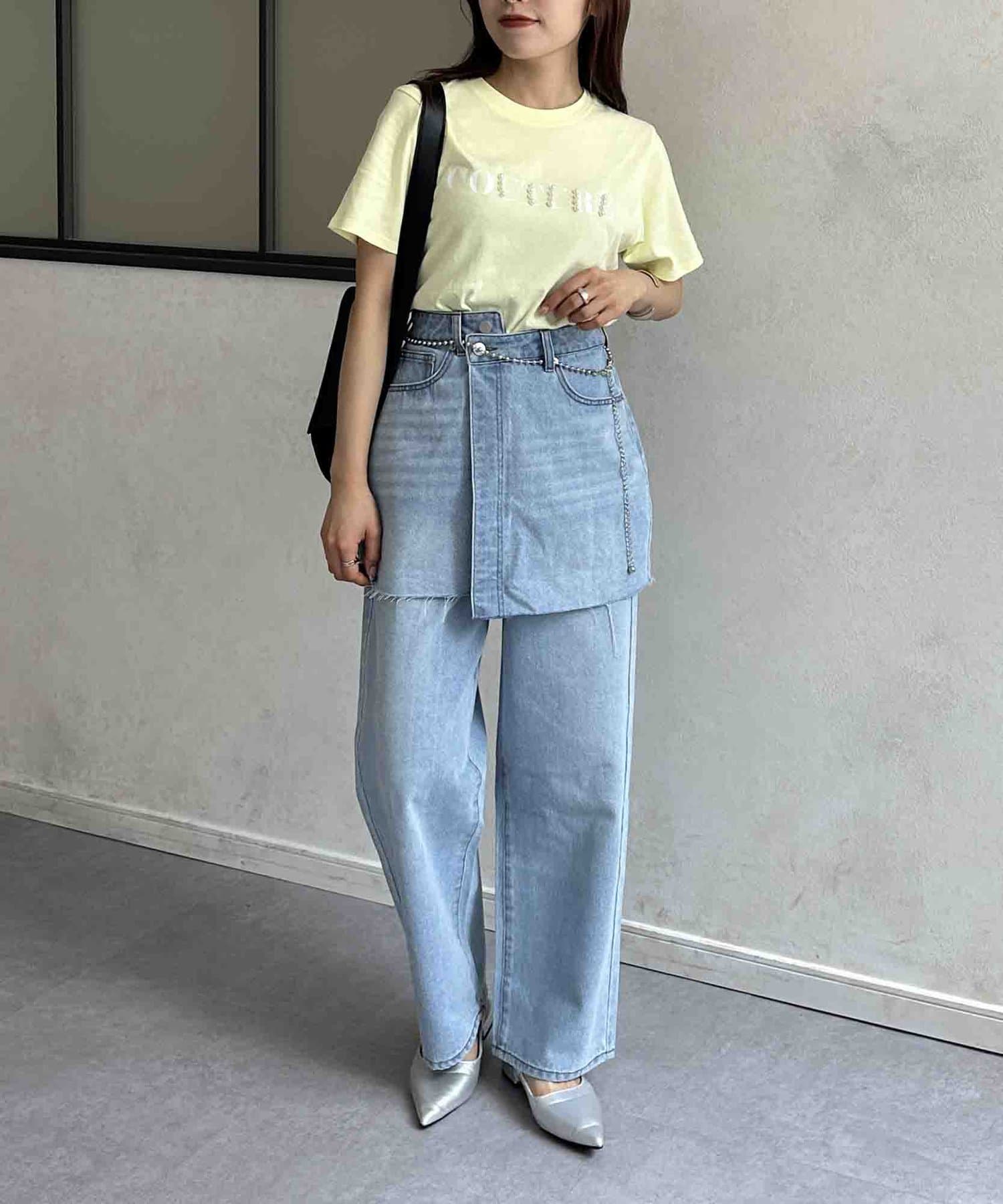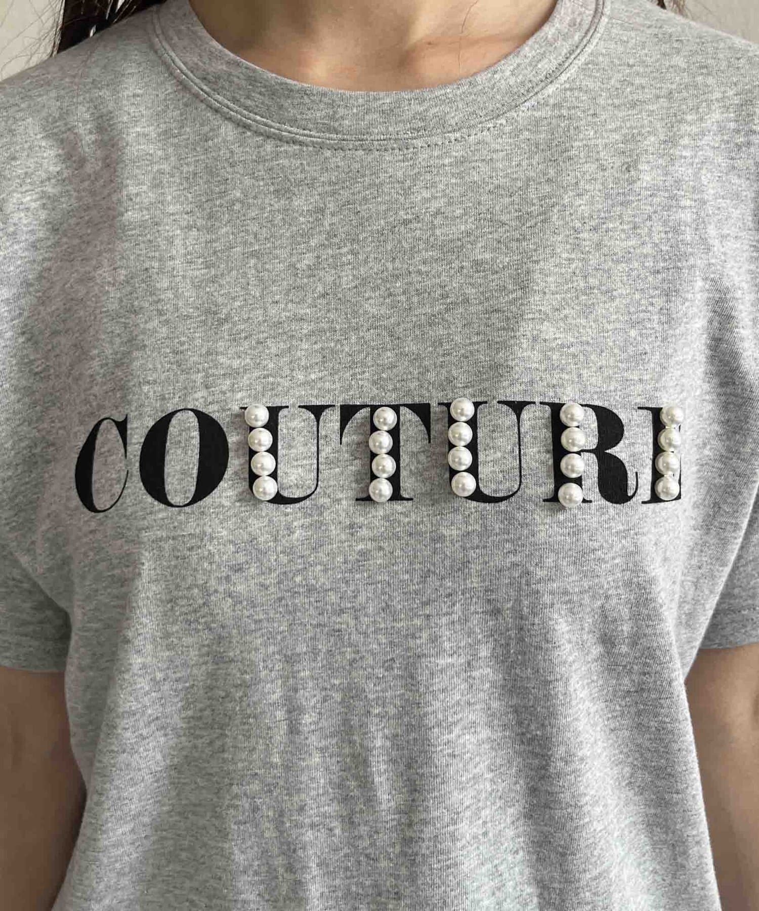 カジュアルなロゴTに華やかなパールをプラス