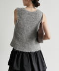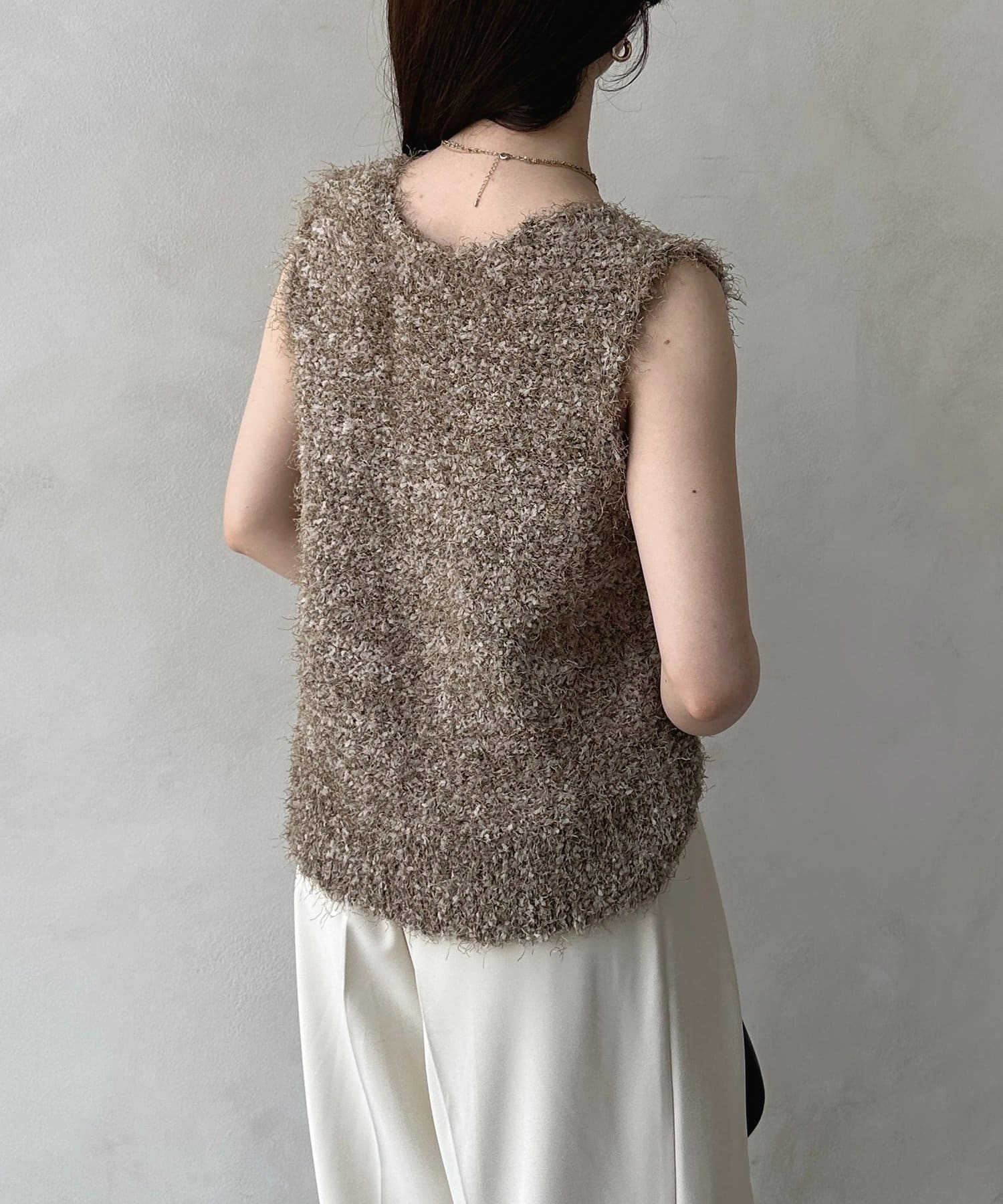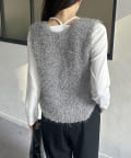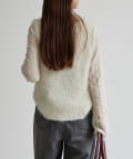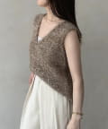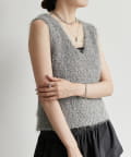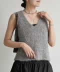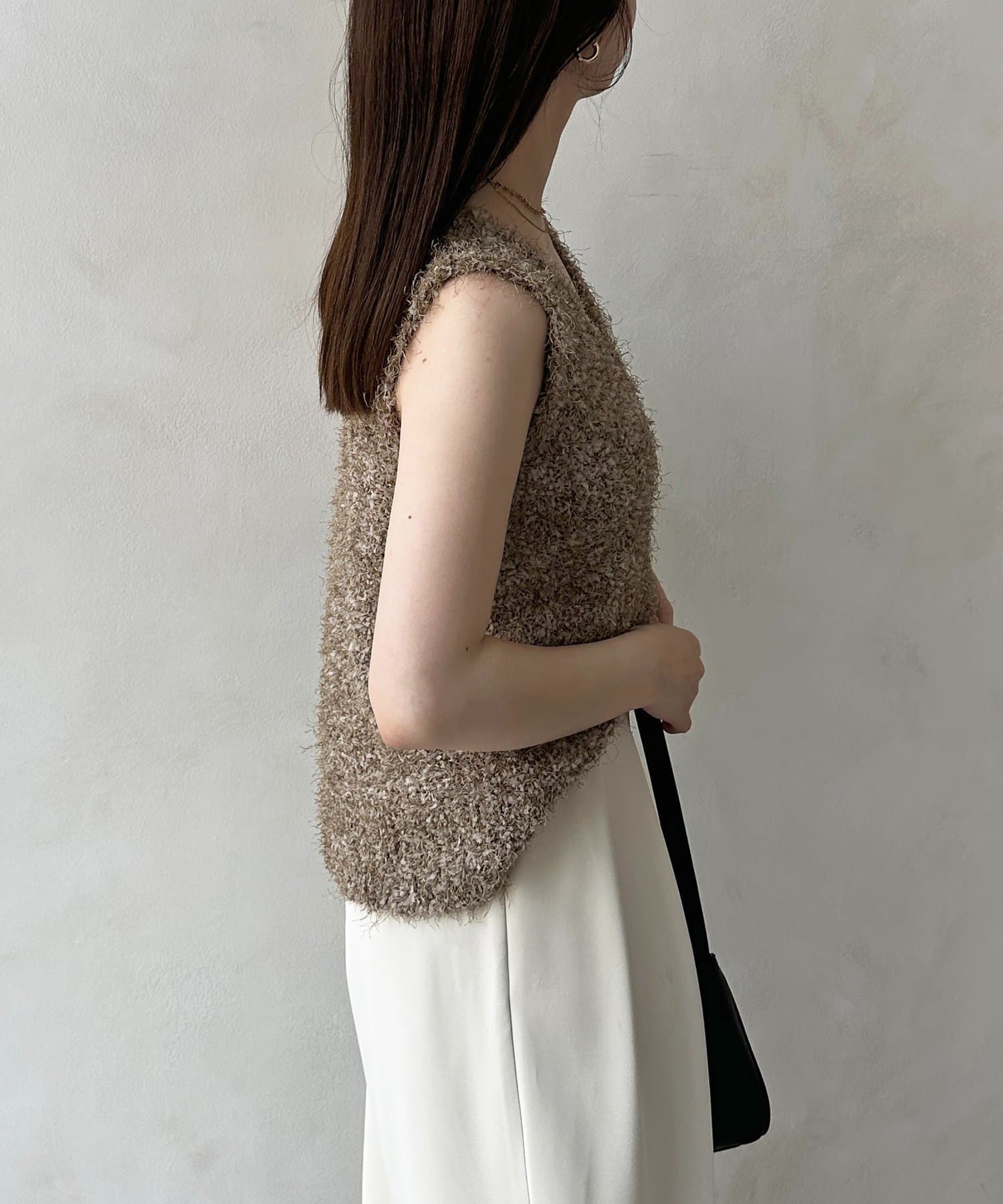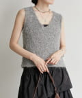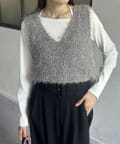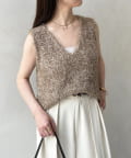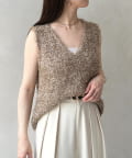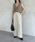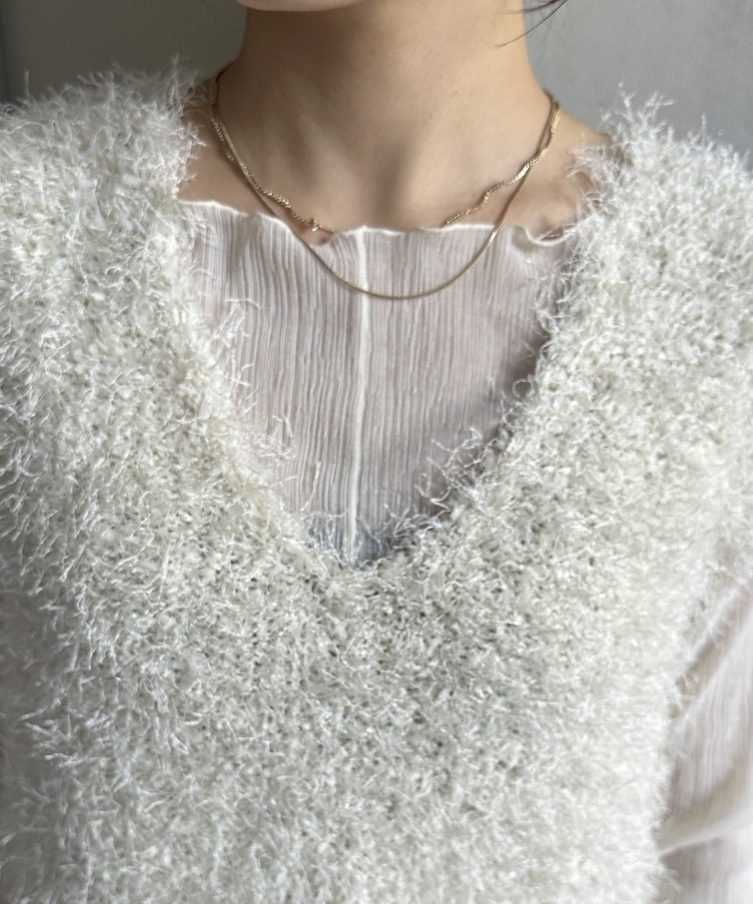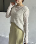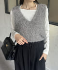 ・深く開いたVネックで顔周りがすっきりとした印象に
