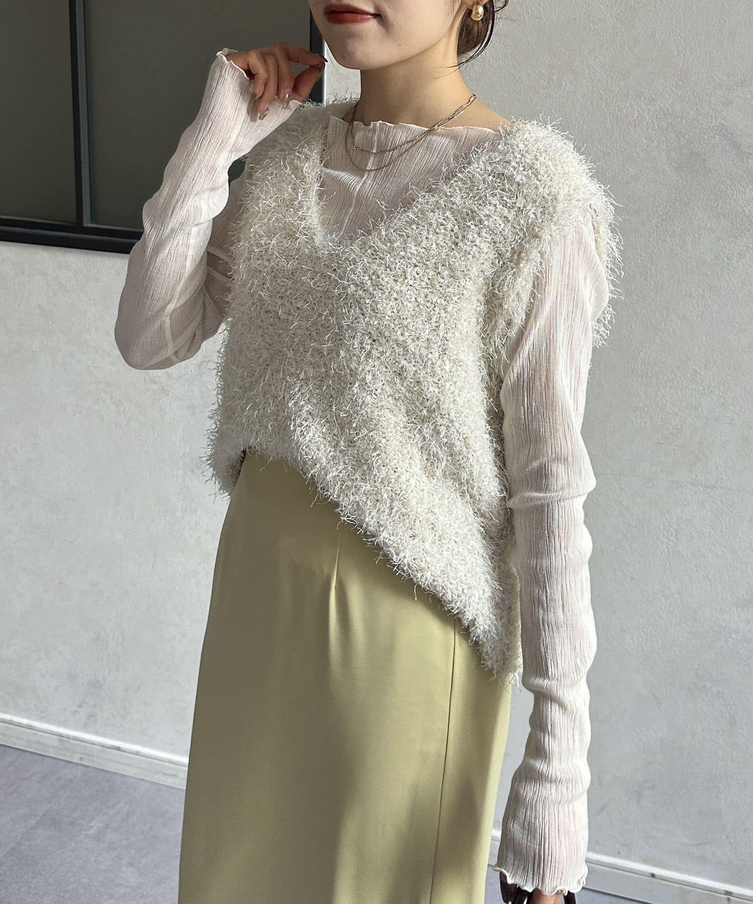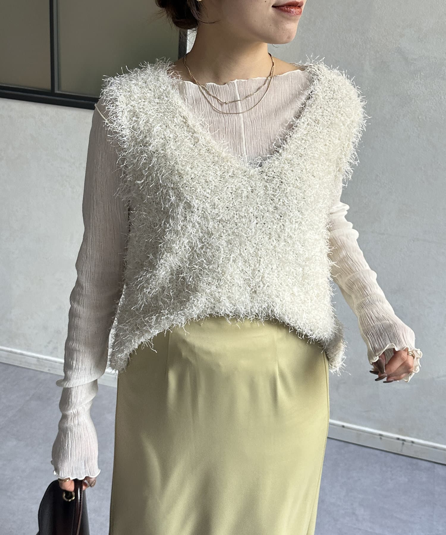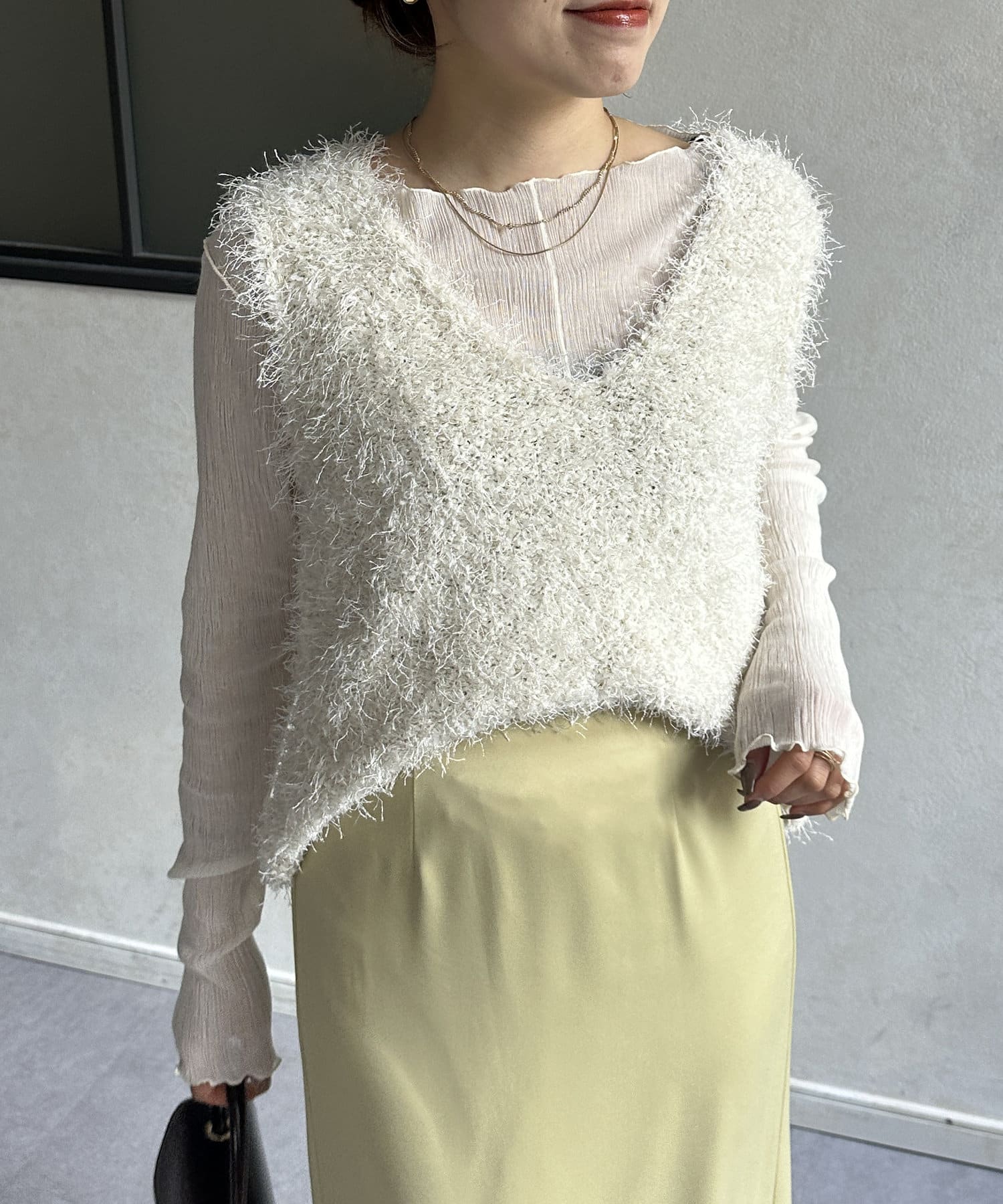 ・シアートップスやニットをレイヤードするだけでこなれ感のある印象に◎