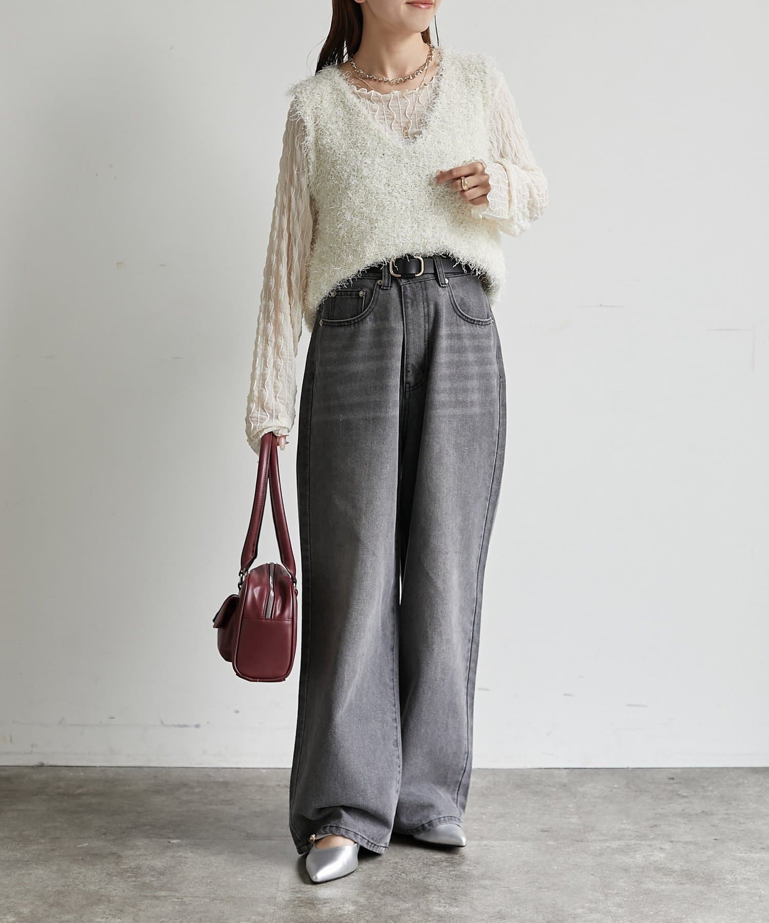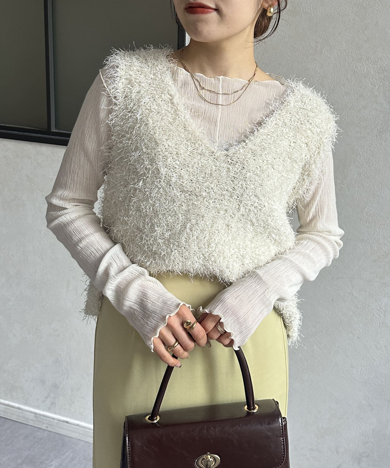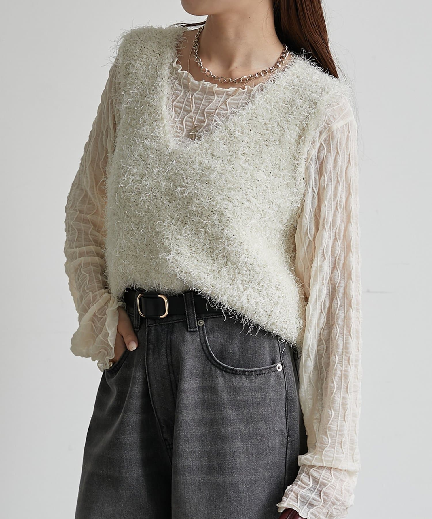 ・シアートップスやニットをレイヤードするだけでこなれ感のある印象に◎