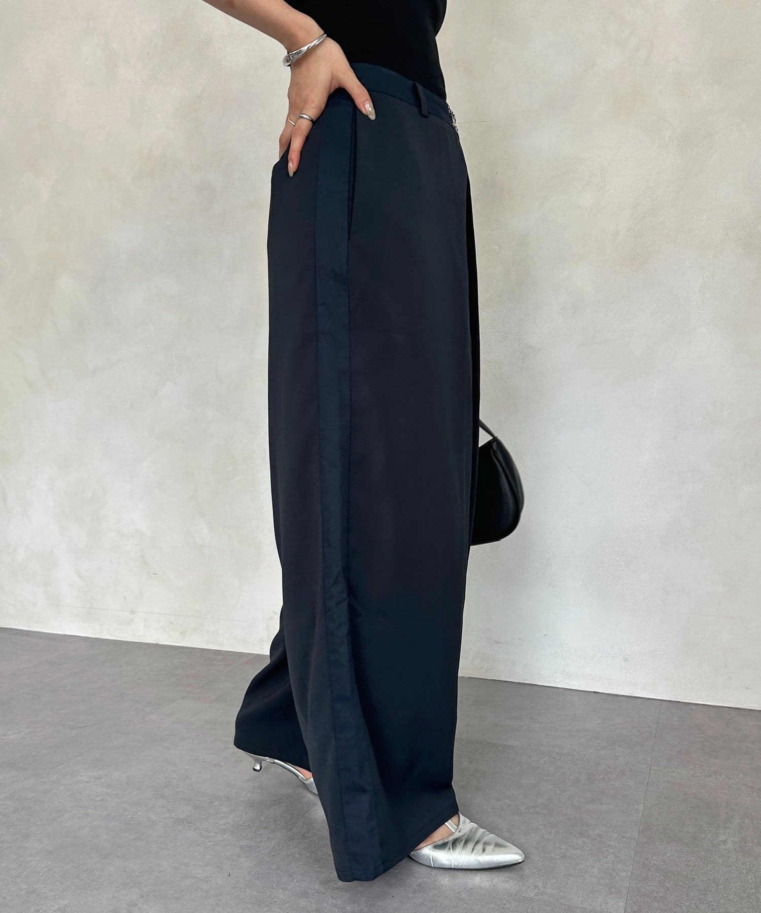 バイカラーラインが目を惹く、きれいめカジュアルパンツ