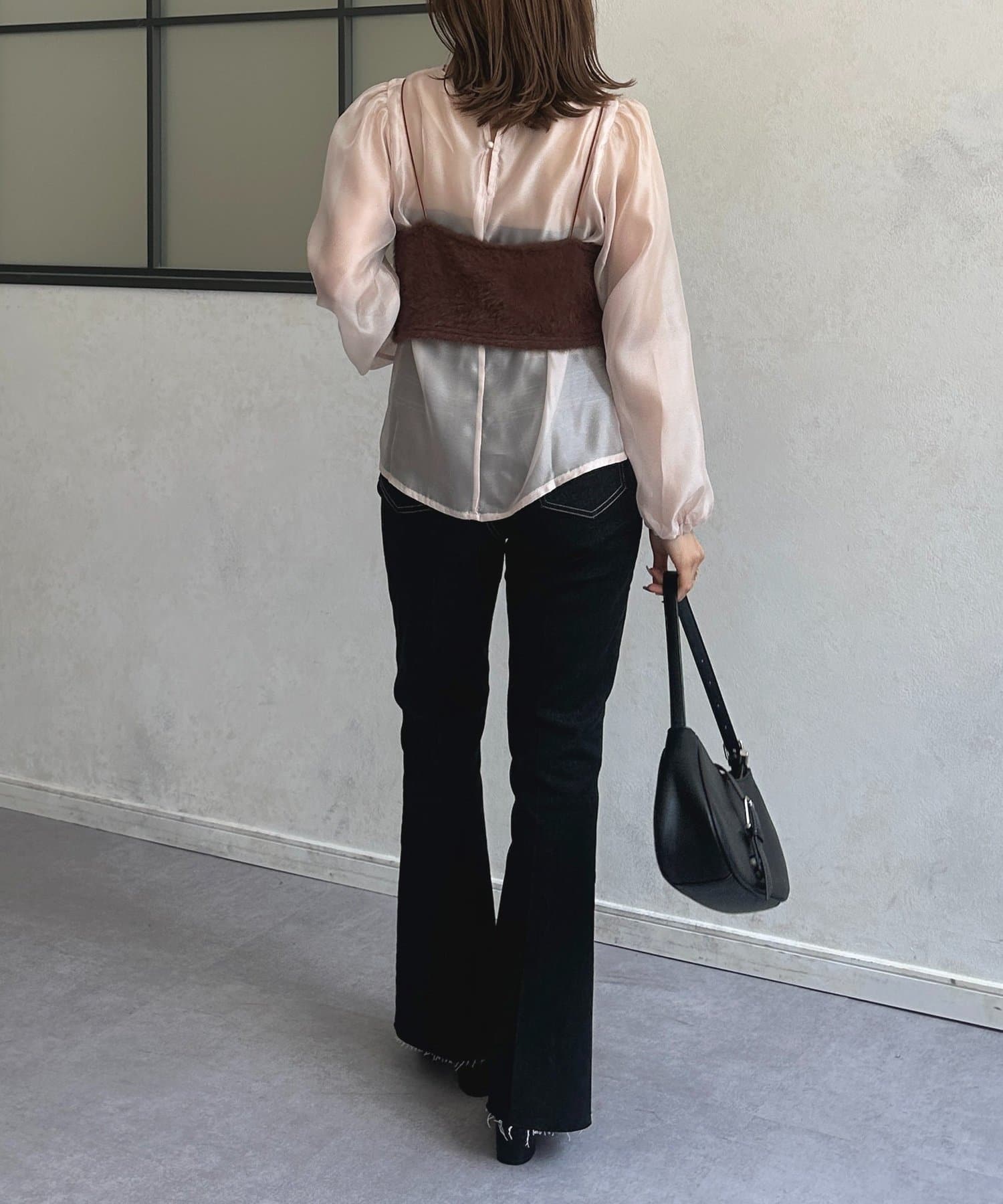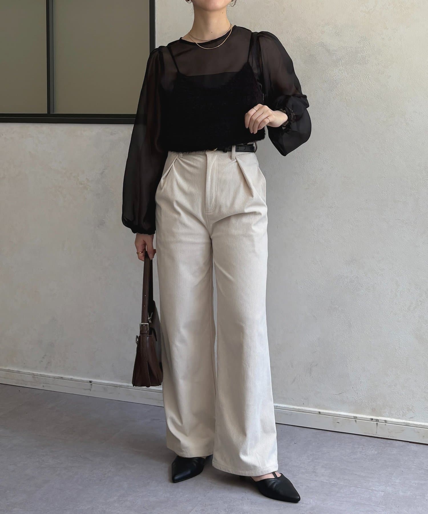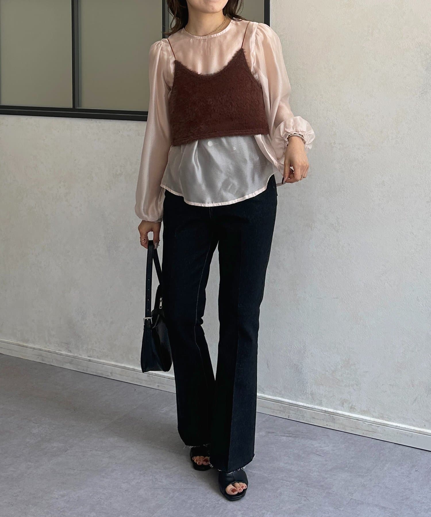 #シアーブラウス #ビスチェ #シャギー #秋コーデ #きれいめ #カジュアル