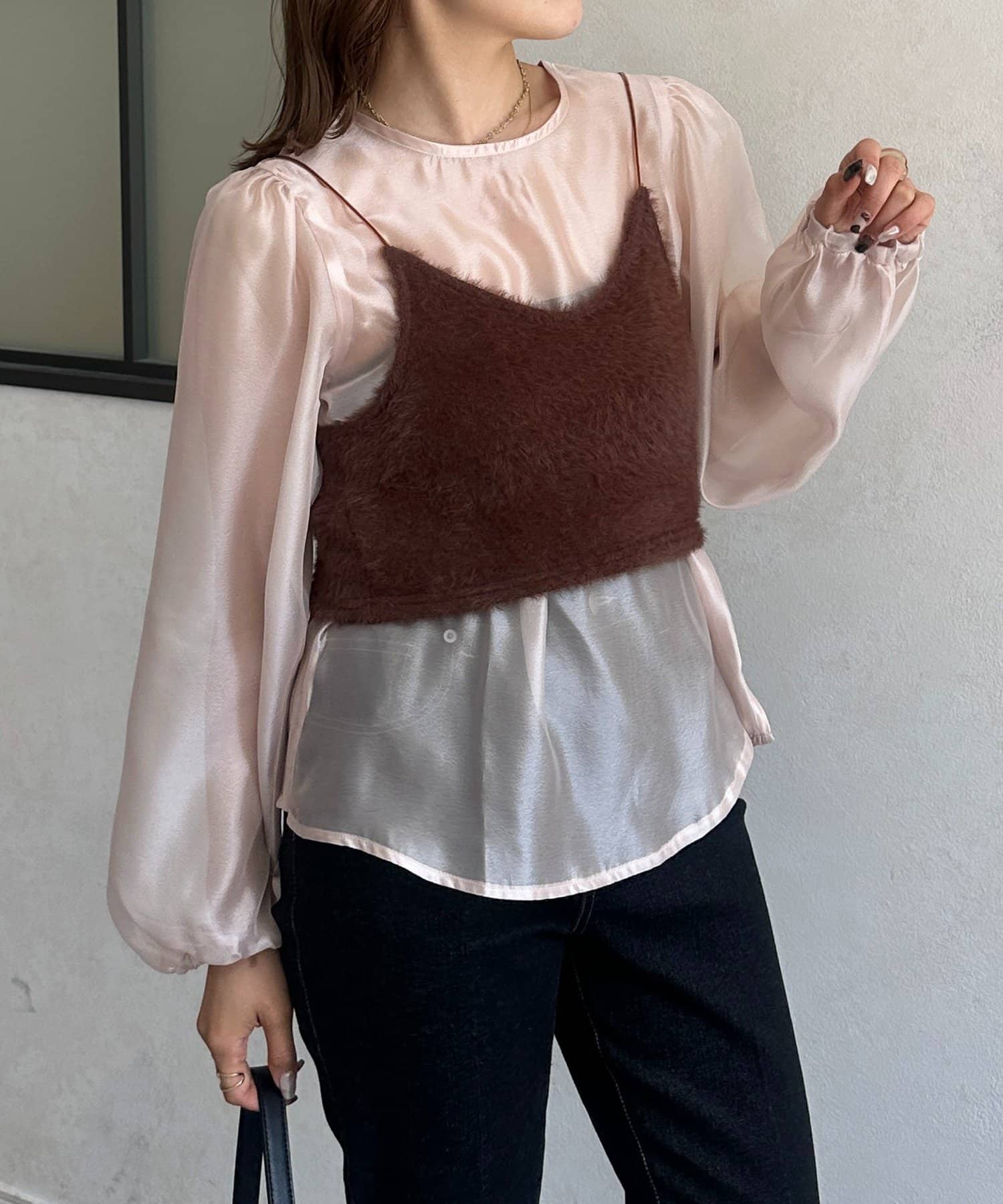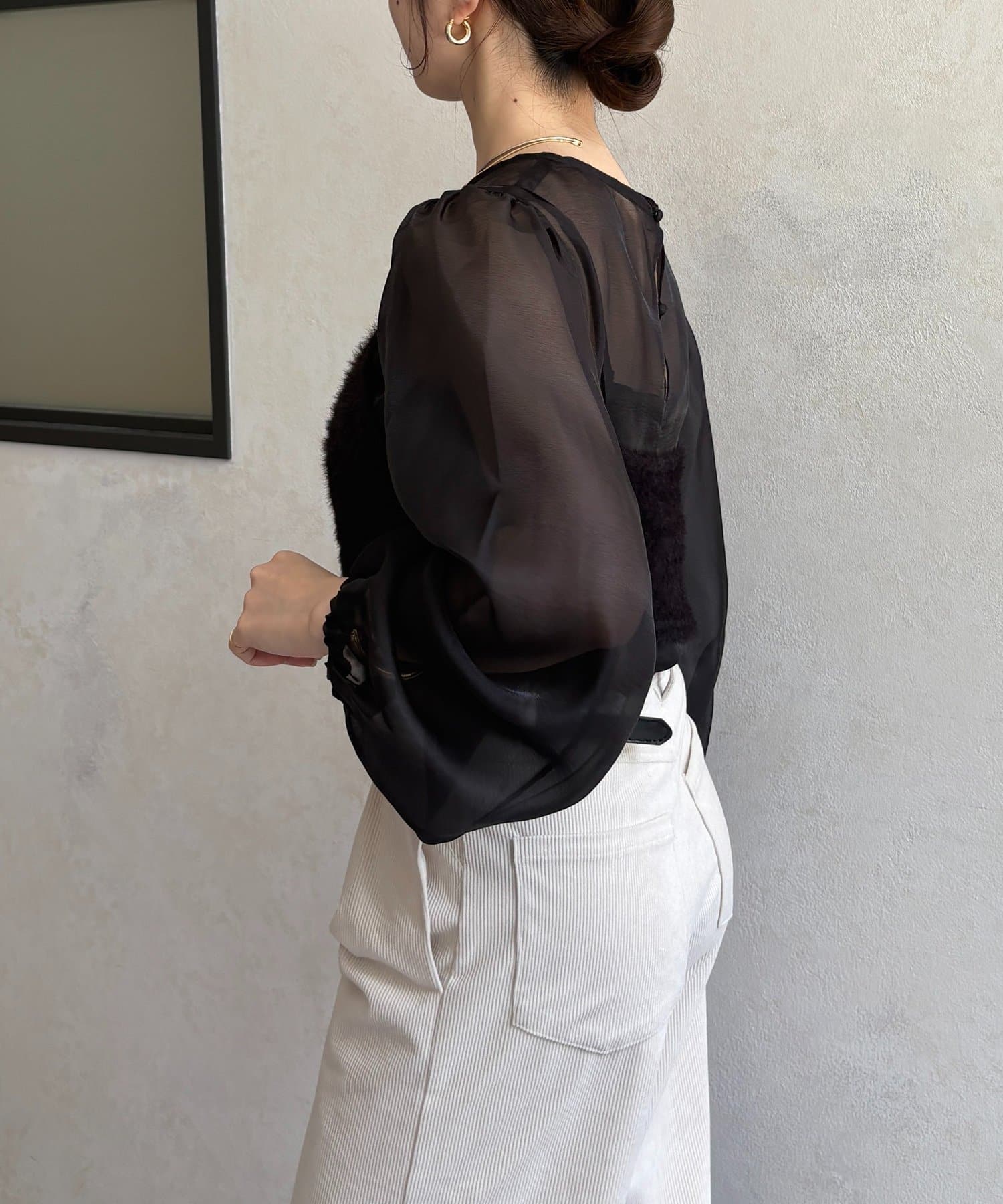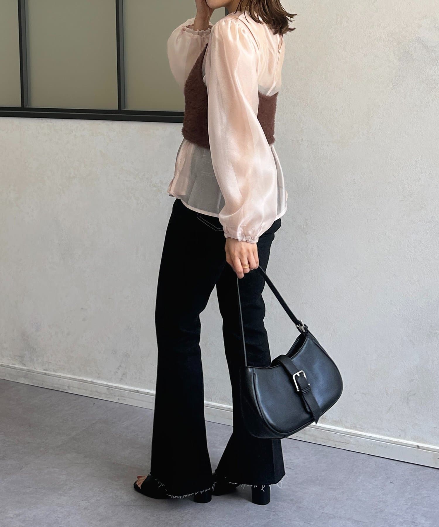 #シアーブラウス #ビスチェ #シャギー #秋コーデ #きれいめ #カジュアル