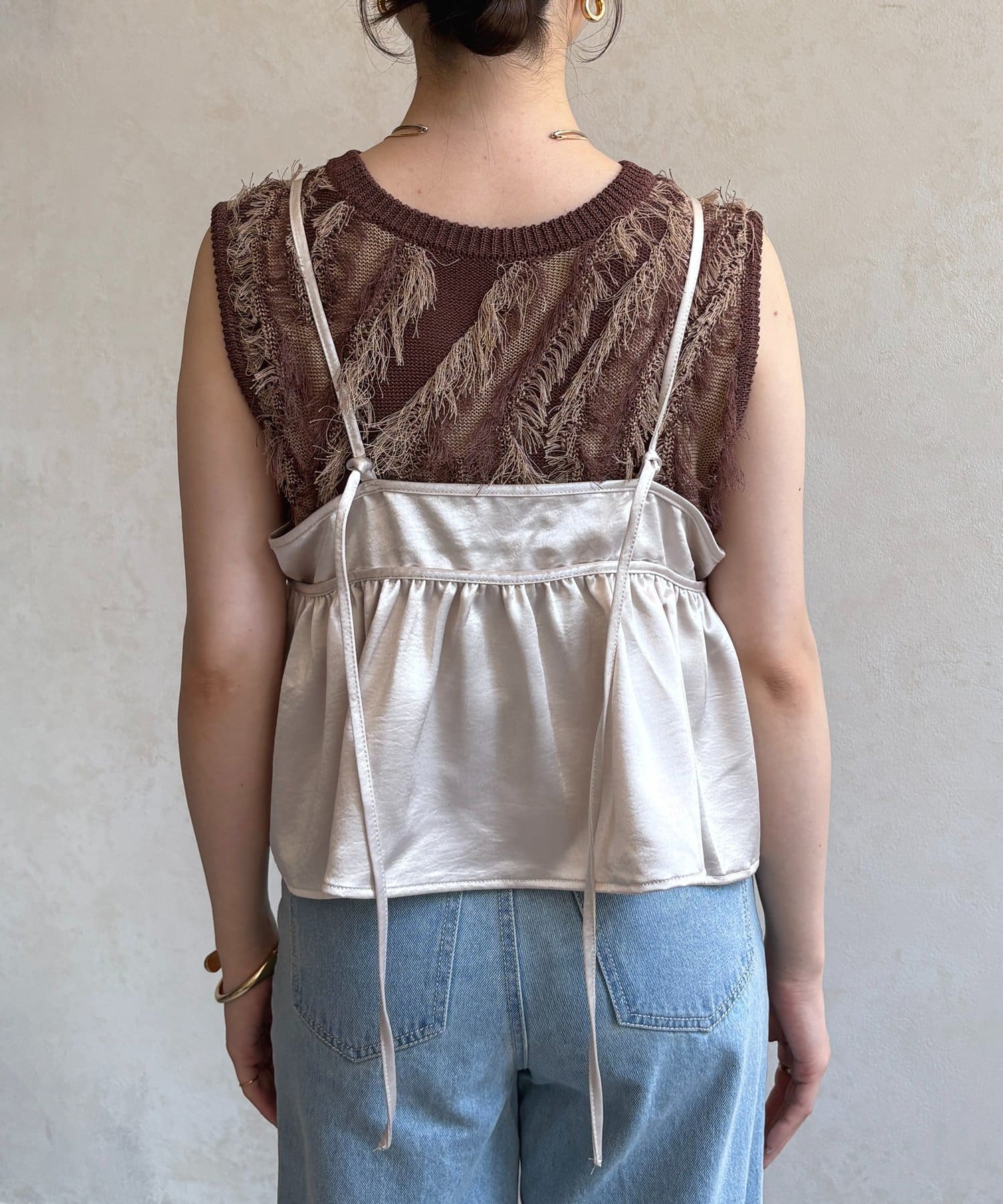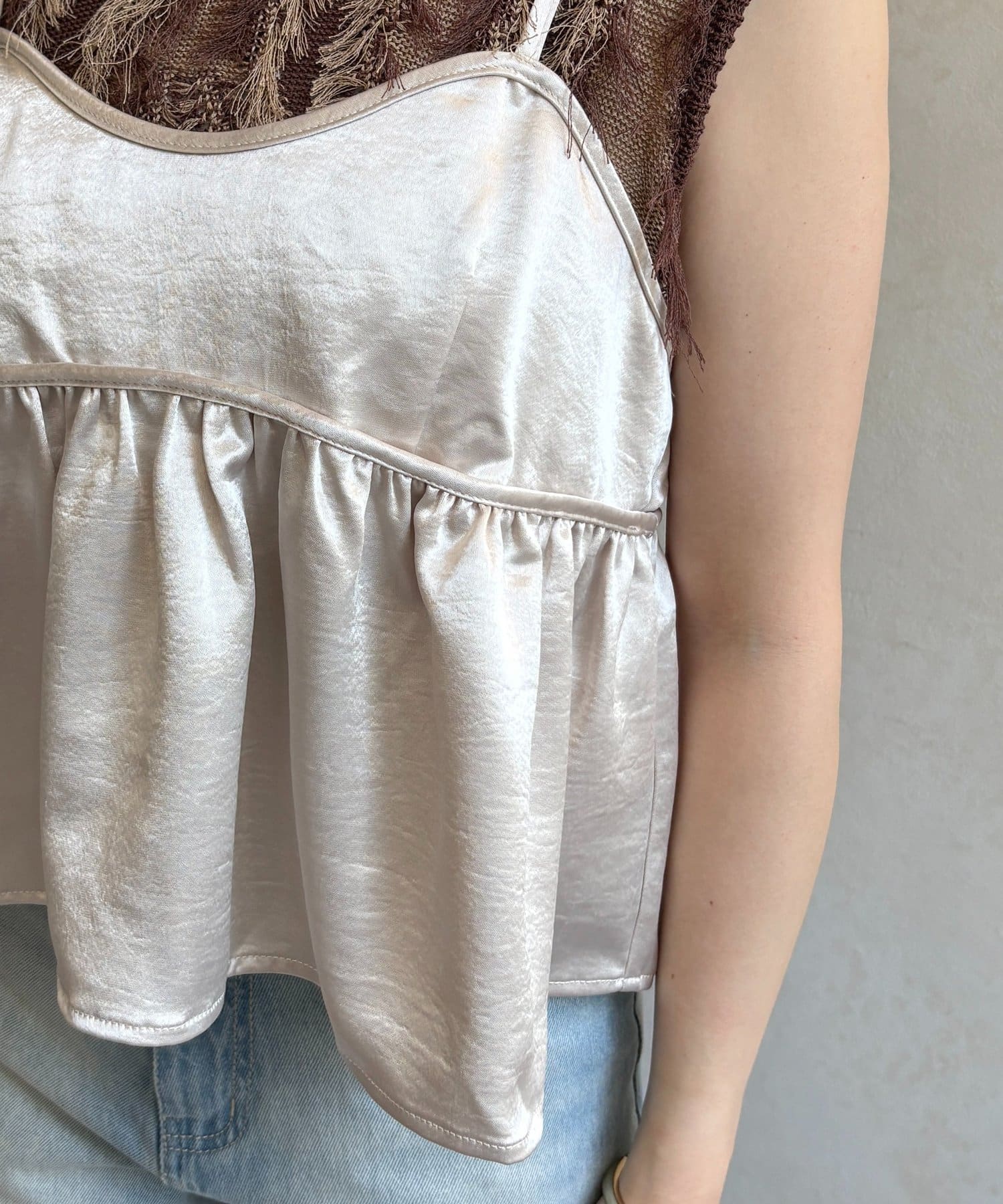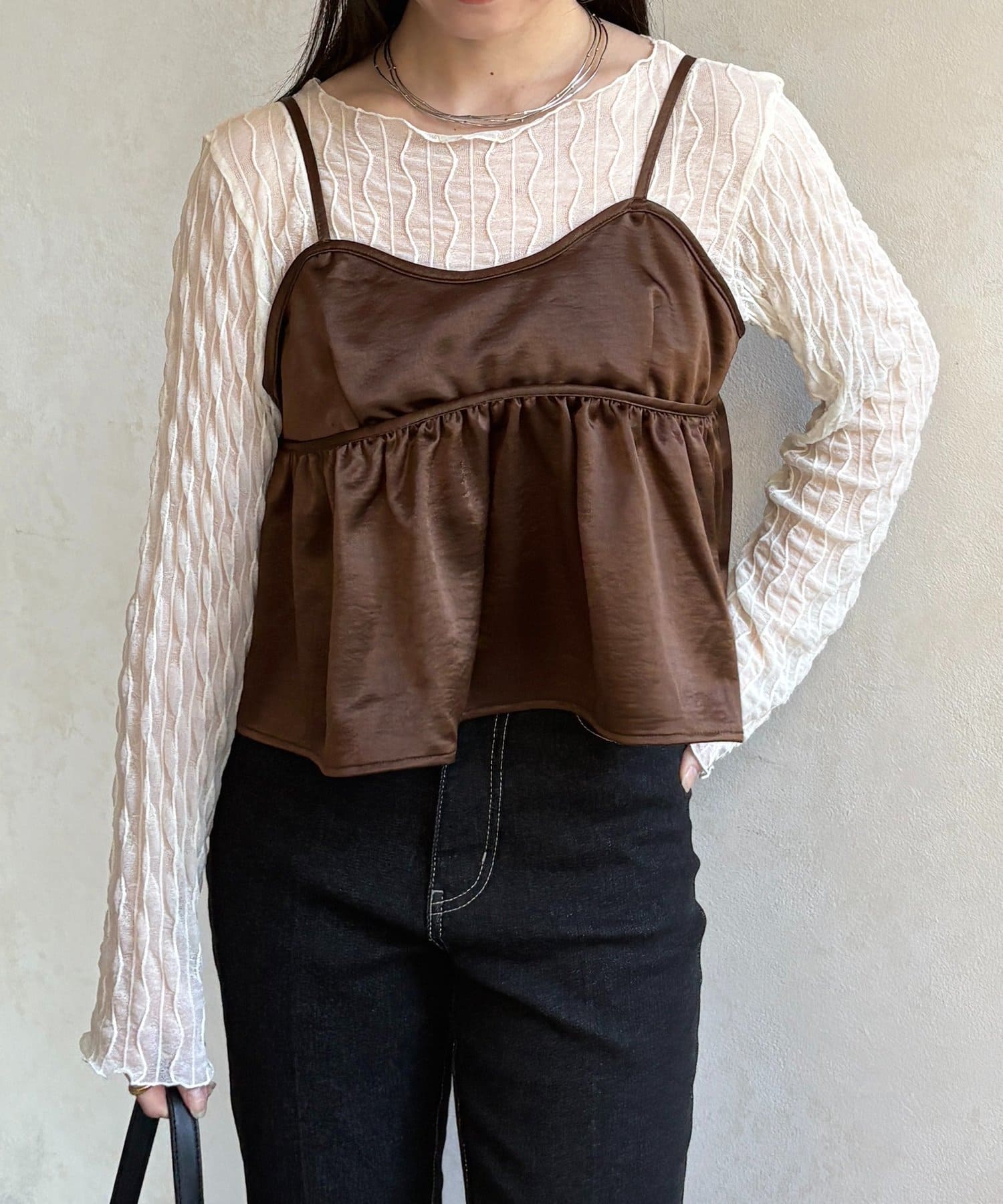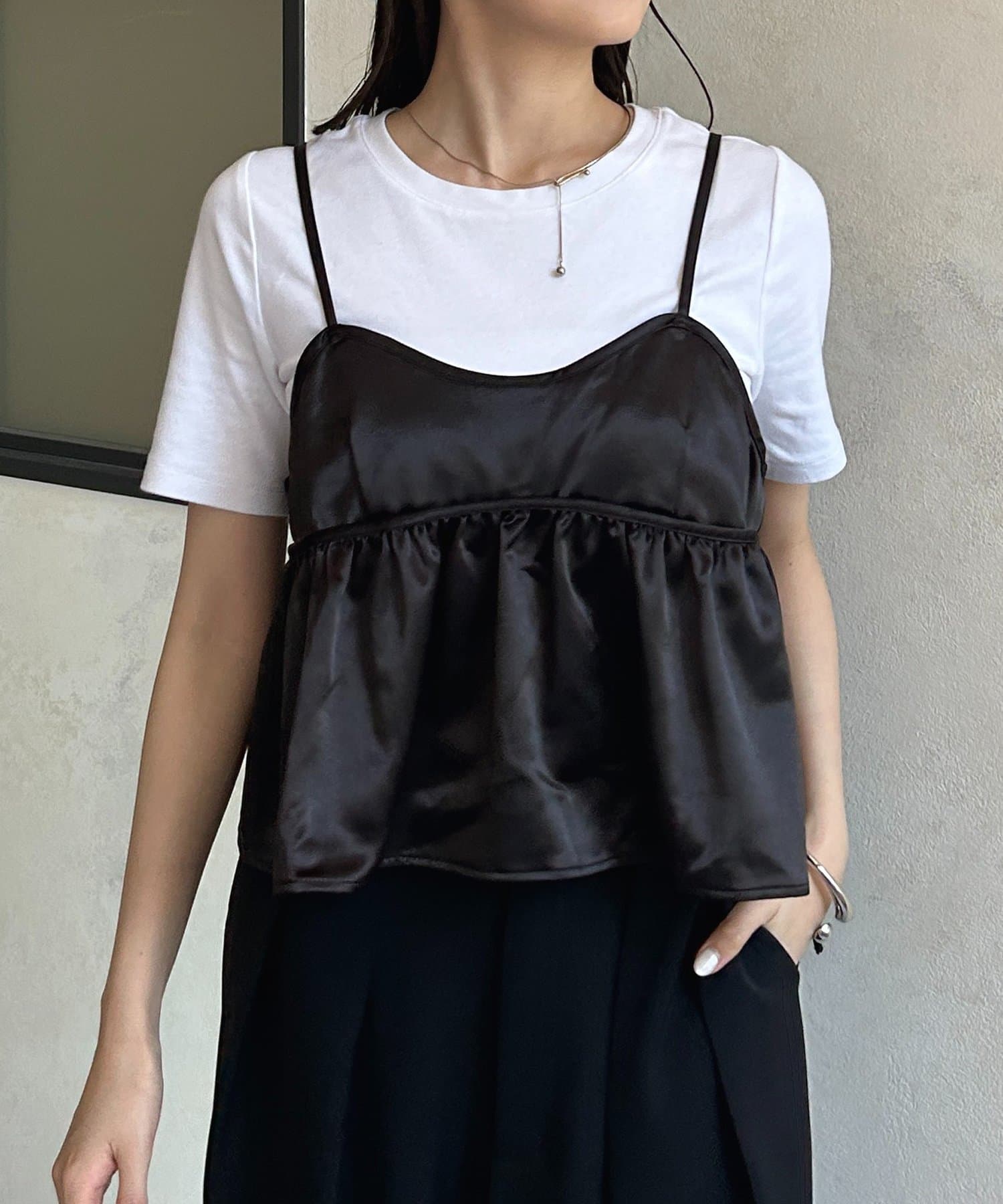 #サテンキャミ #キャミソール #ギャザー #レイヤード #きれいめ