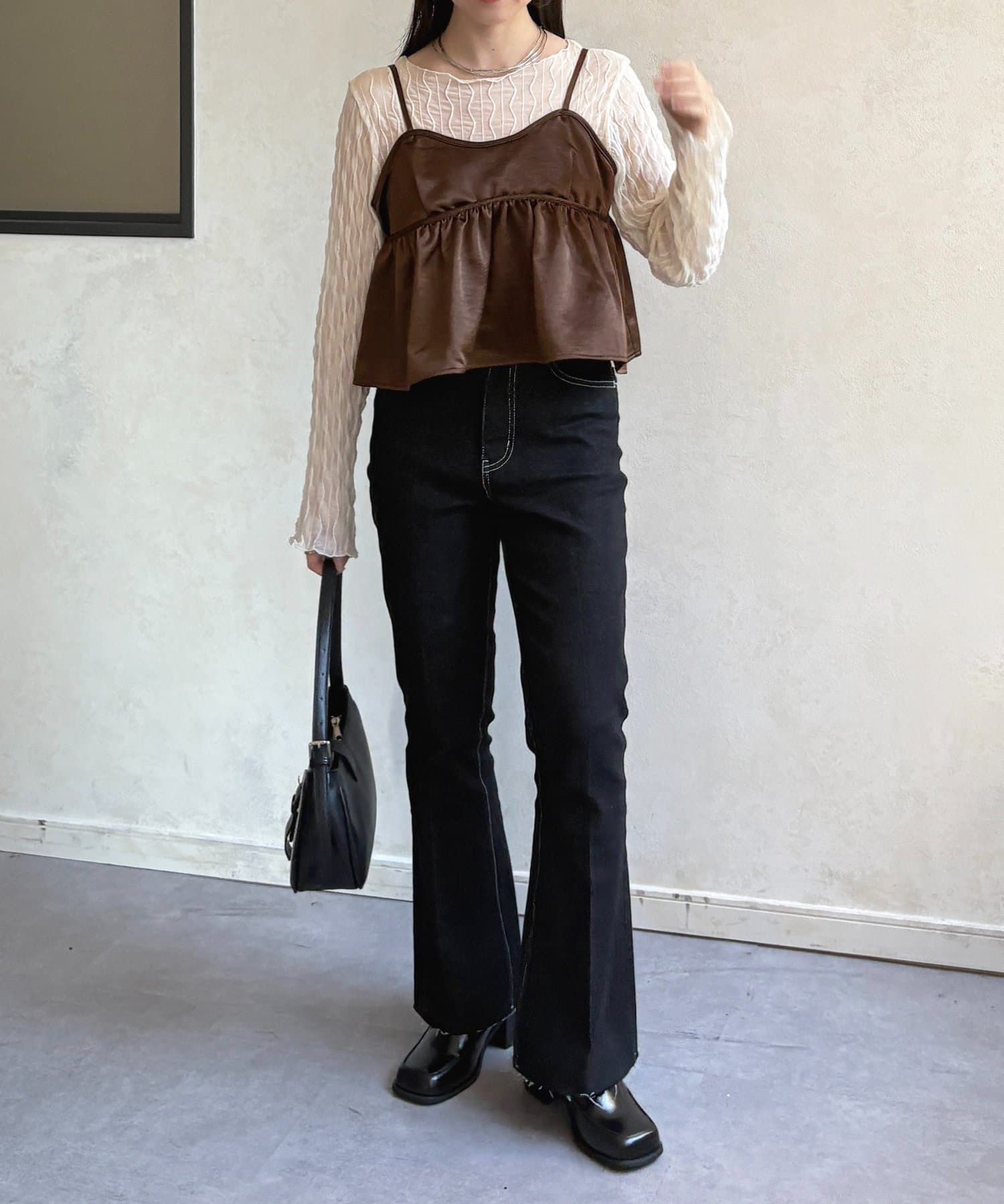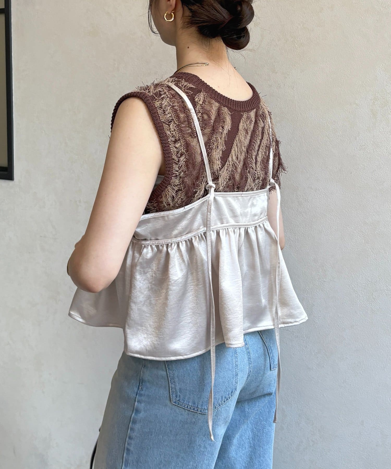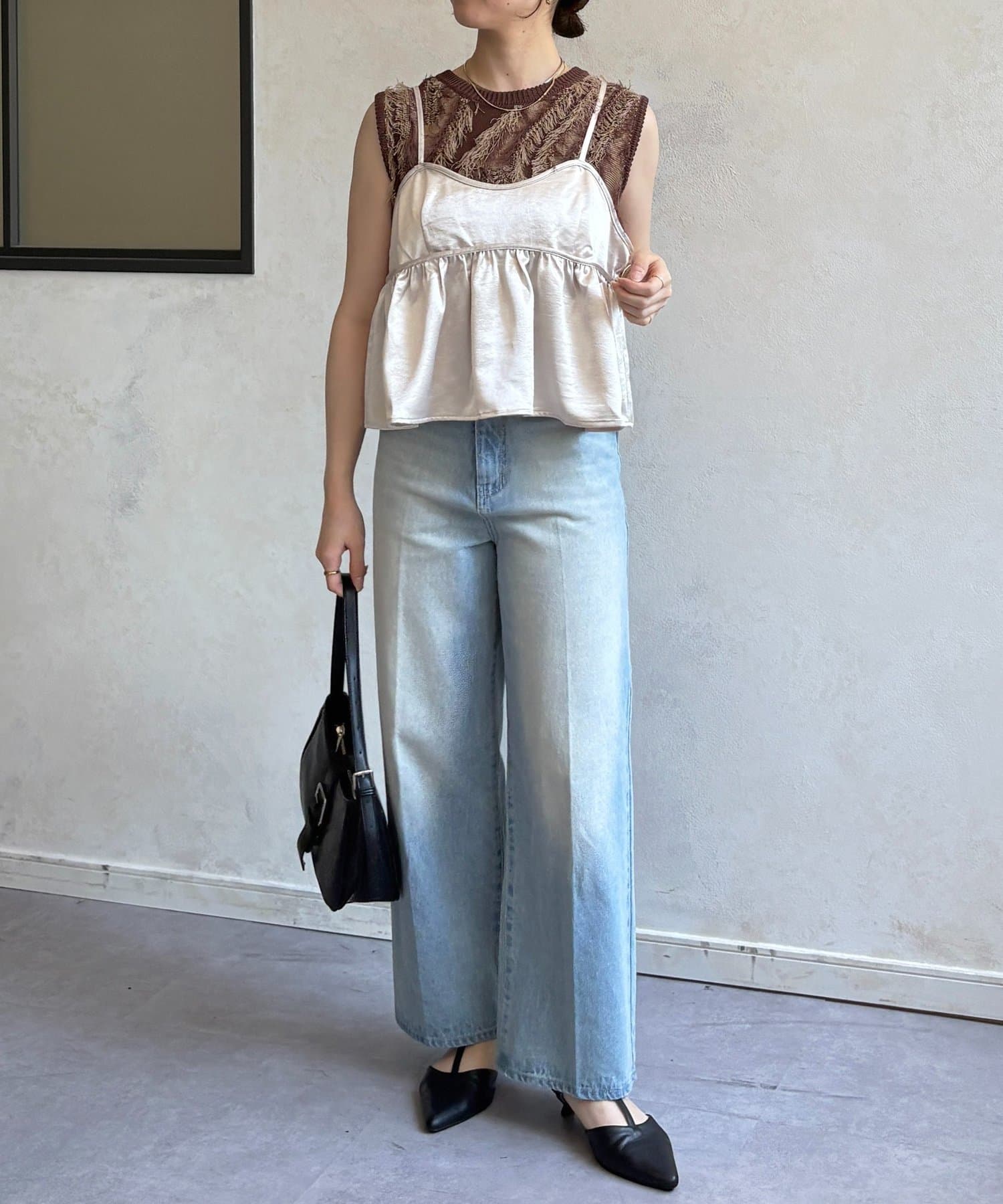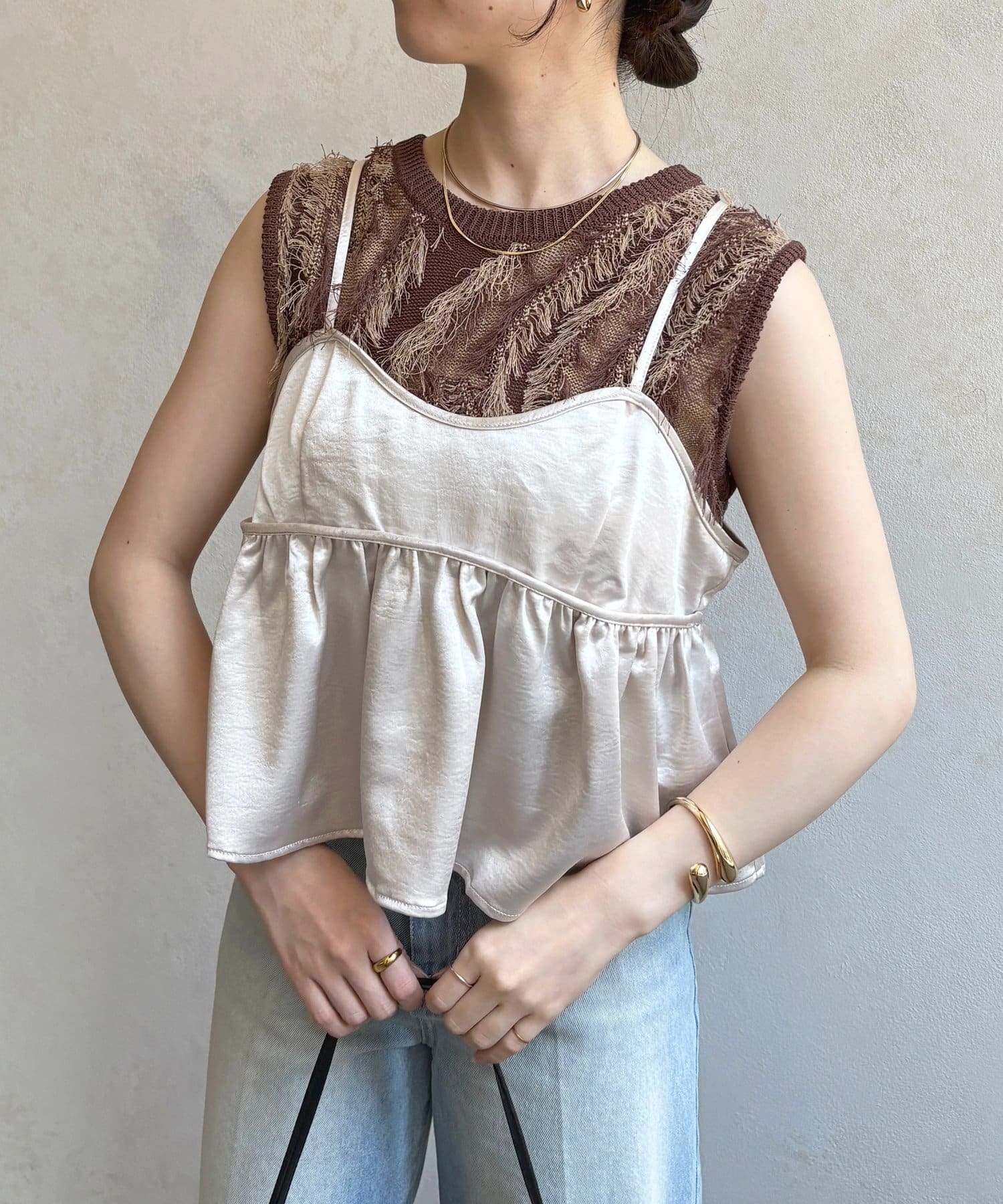 #サテンキャミ #キャミソール #ギャザー #レイヤード #きれいめ