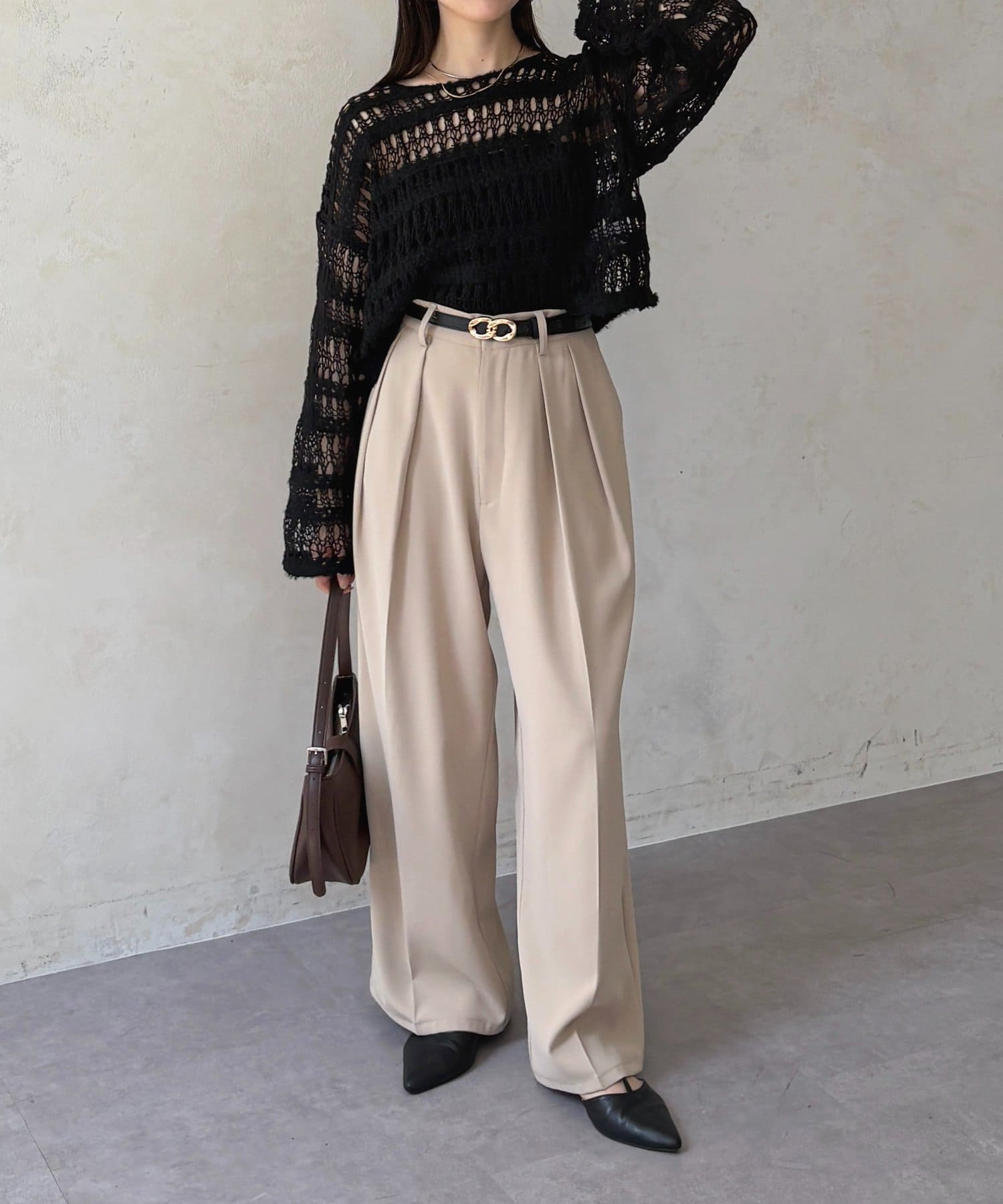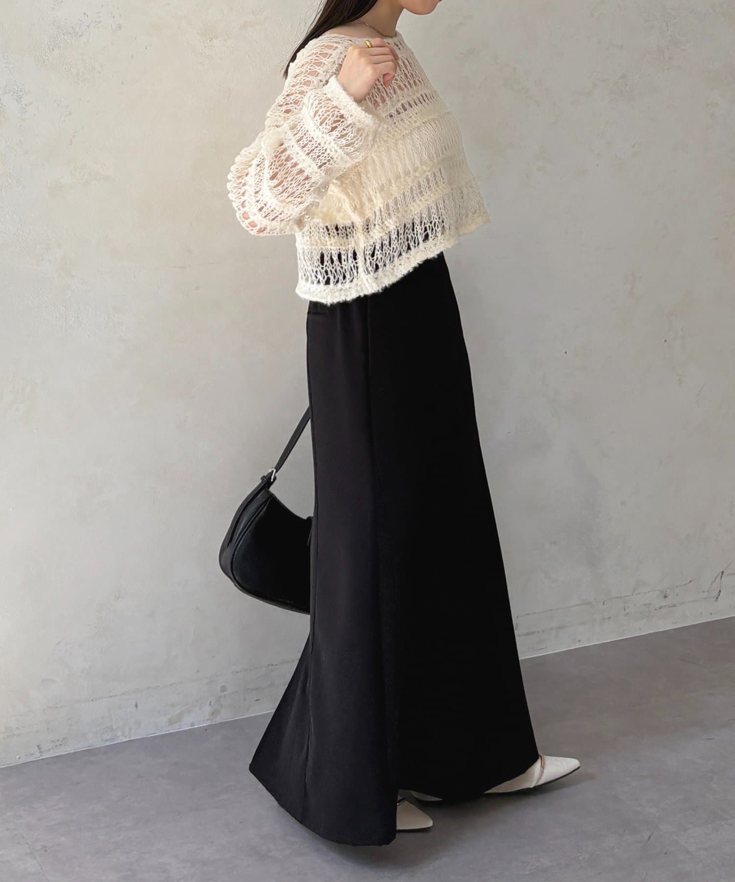 ・短めの丈なので、ハイウエストのパンツやスカート、ワイドパンツとの合わせが