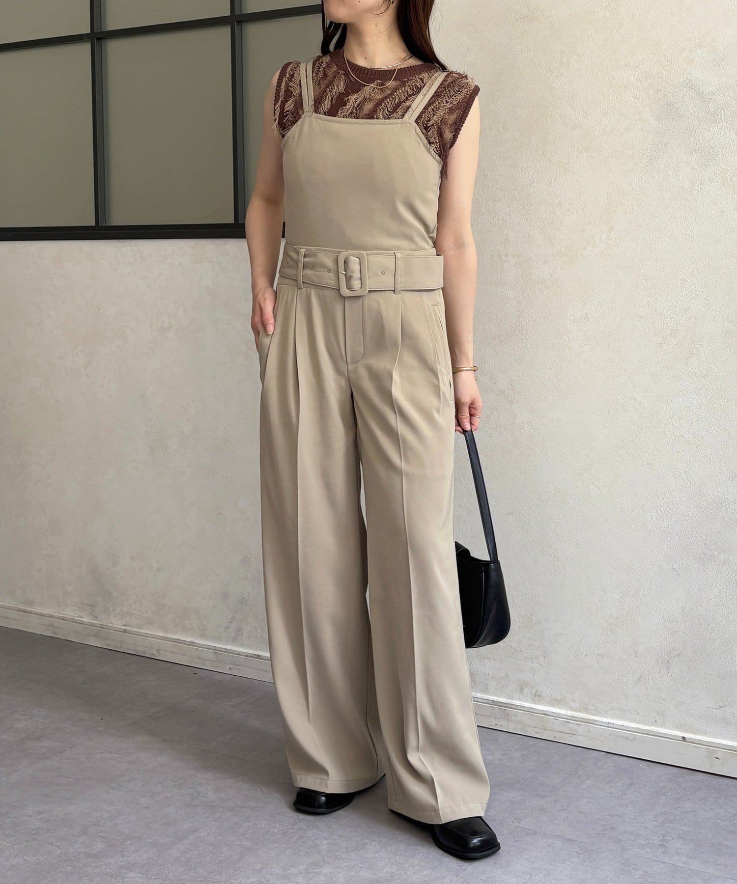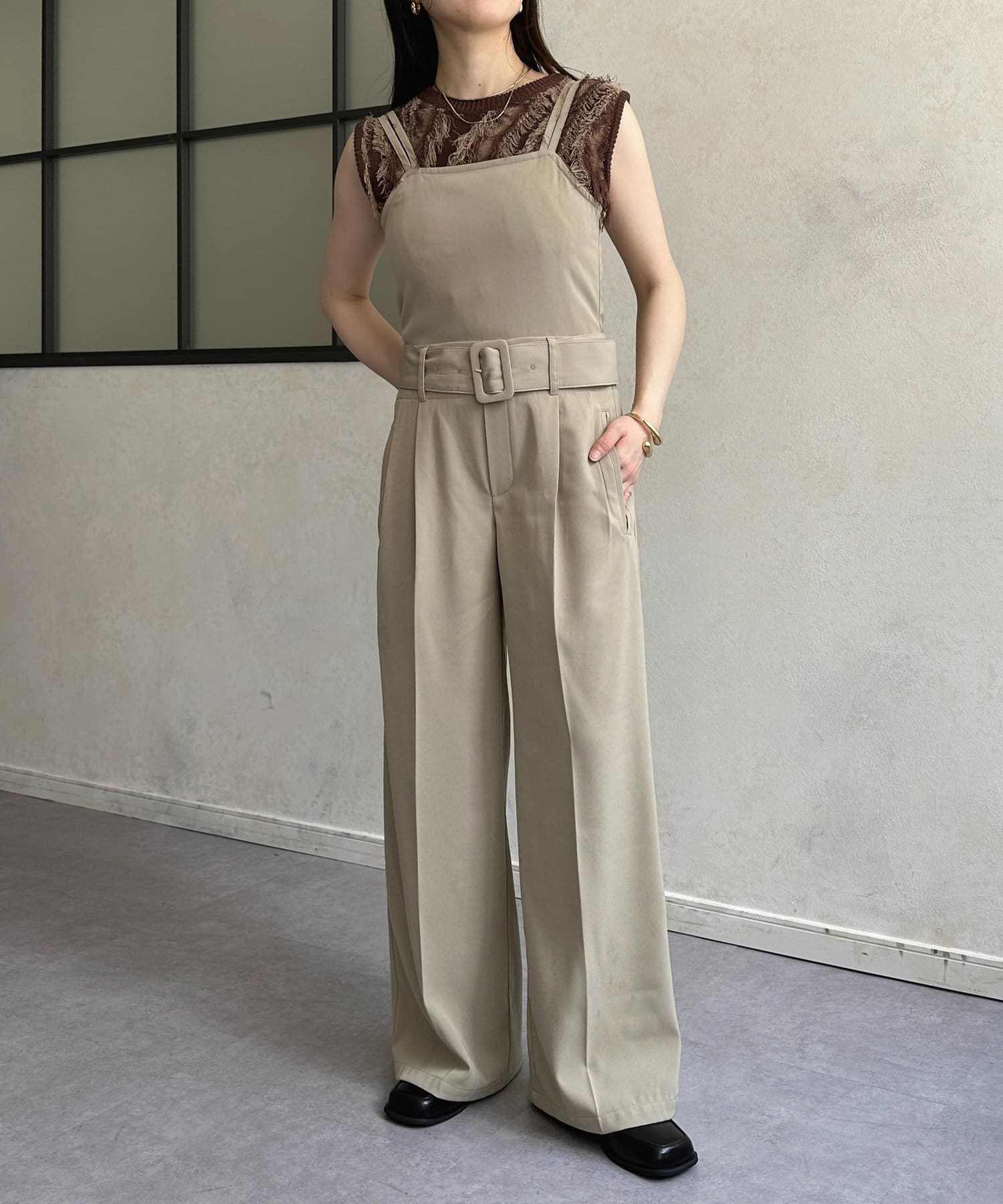 ・高めのウエスト位置とベルトで脚長効果抜群◎
