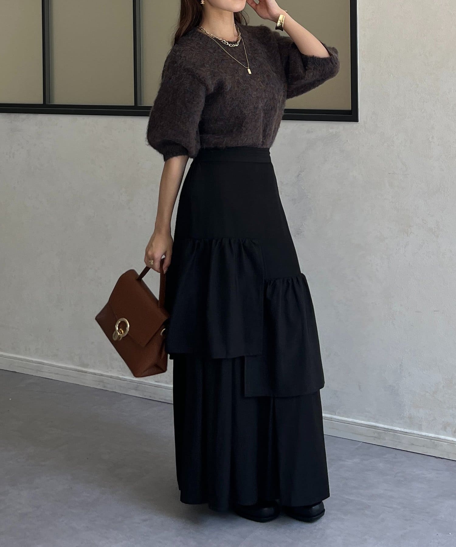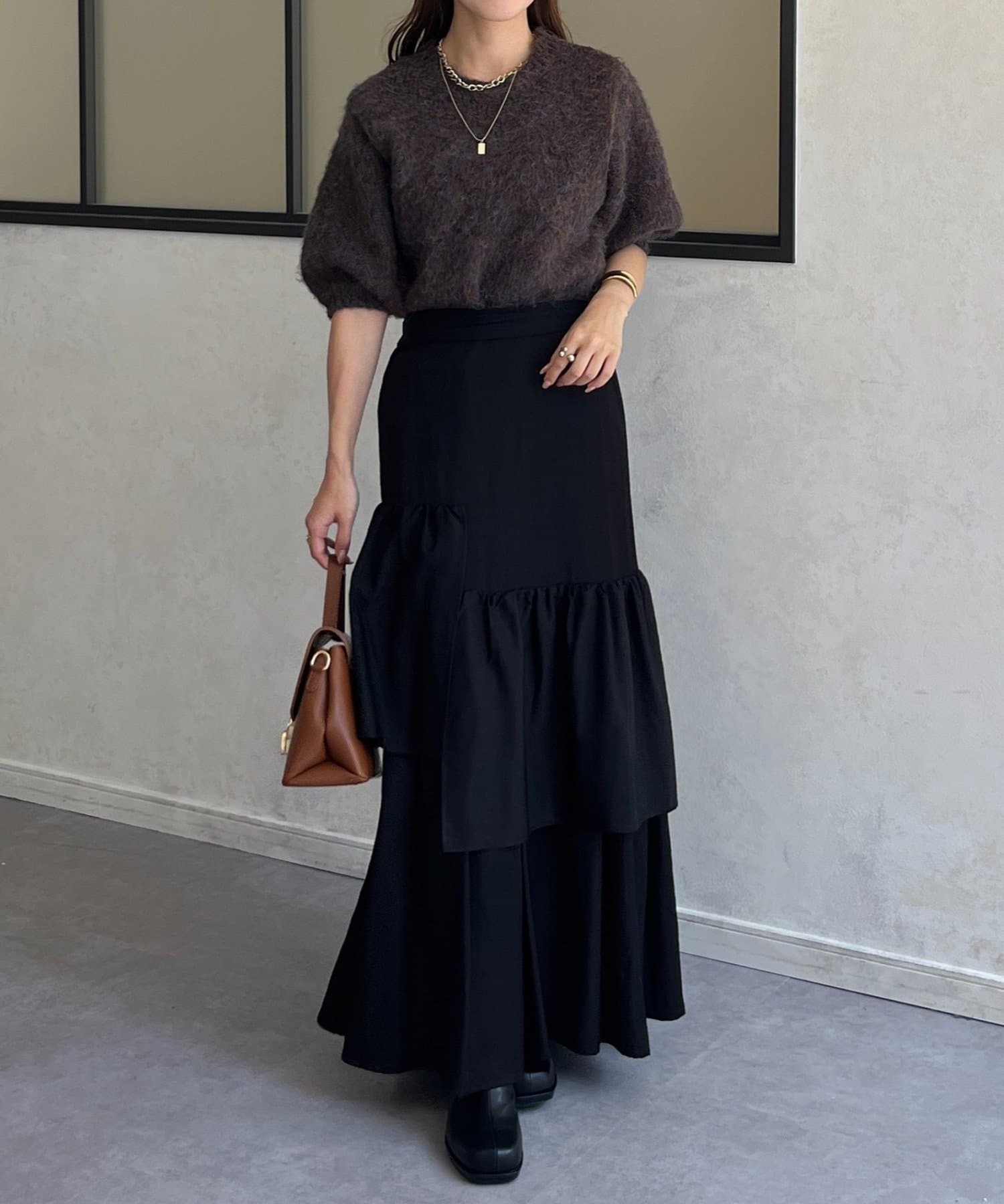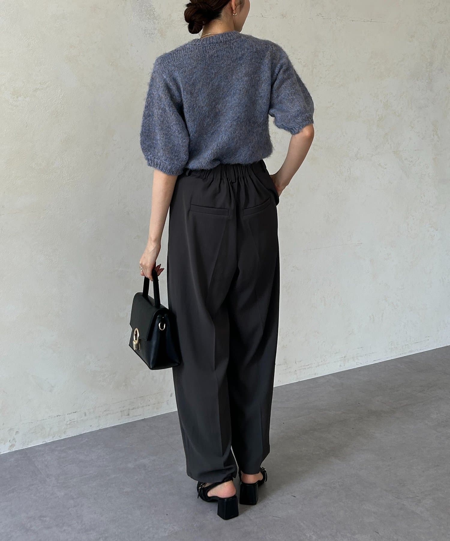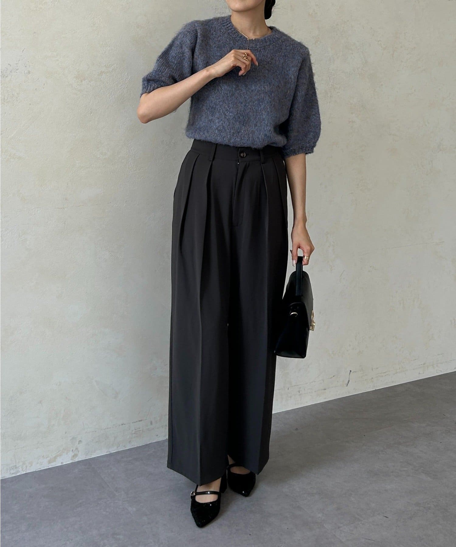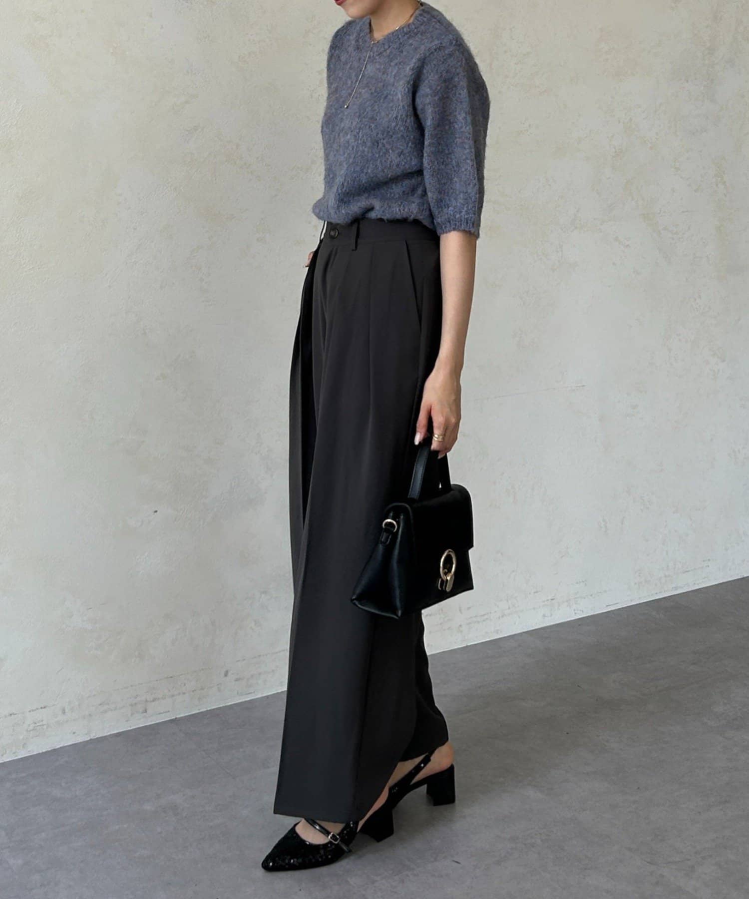 ・デザイン性のあるトップスには、タックパンツやスラックスと合わせて、